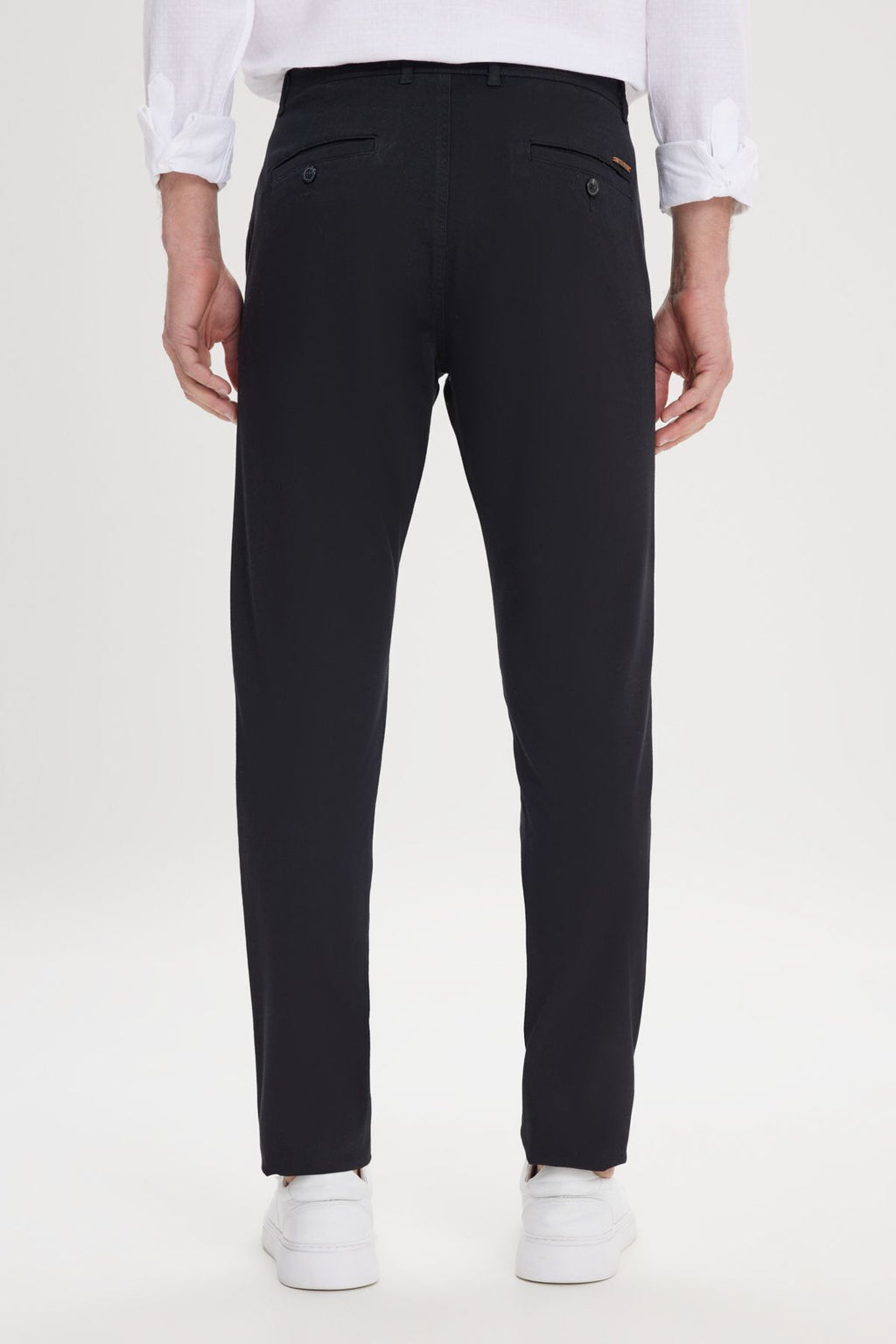 Men's black canvas slim fit narrow cut side mobile chino pants