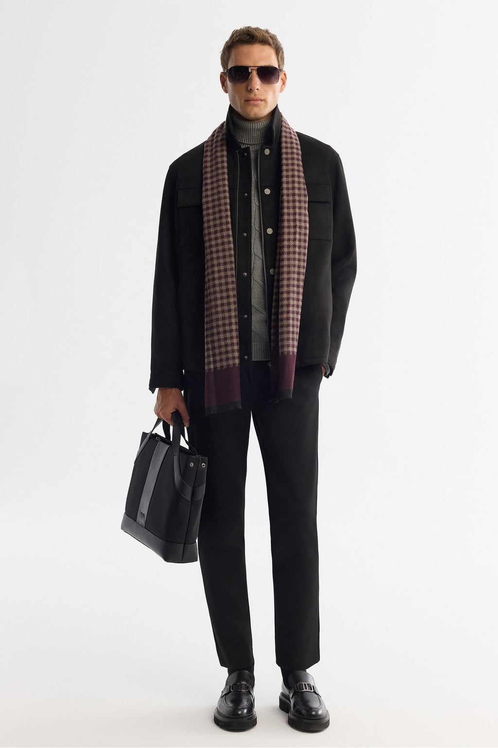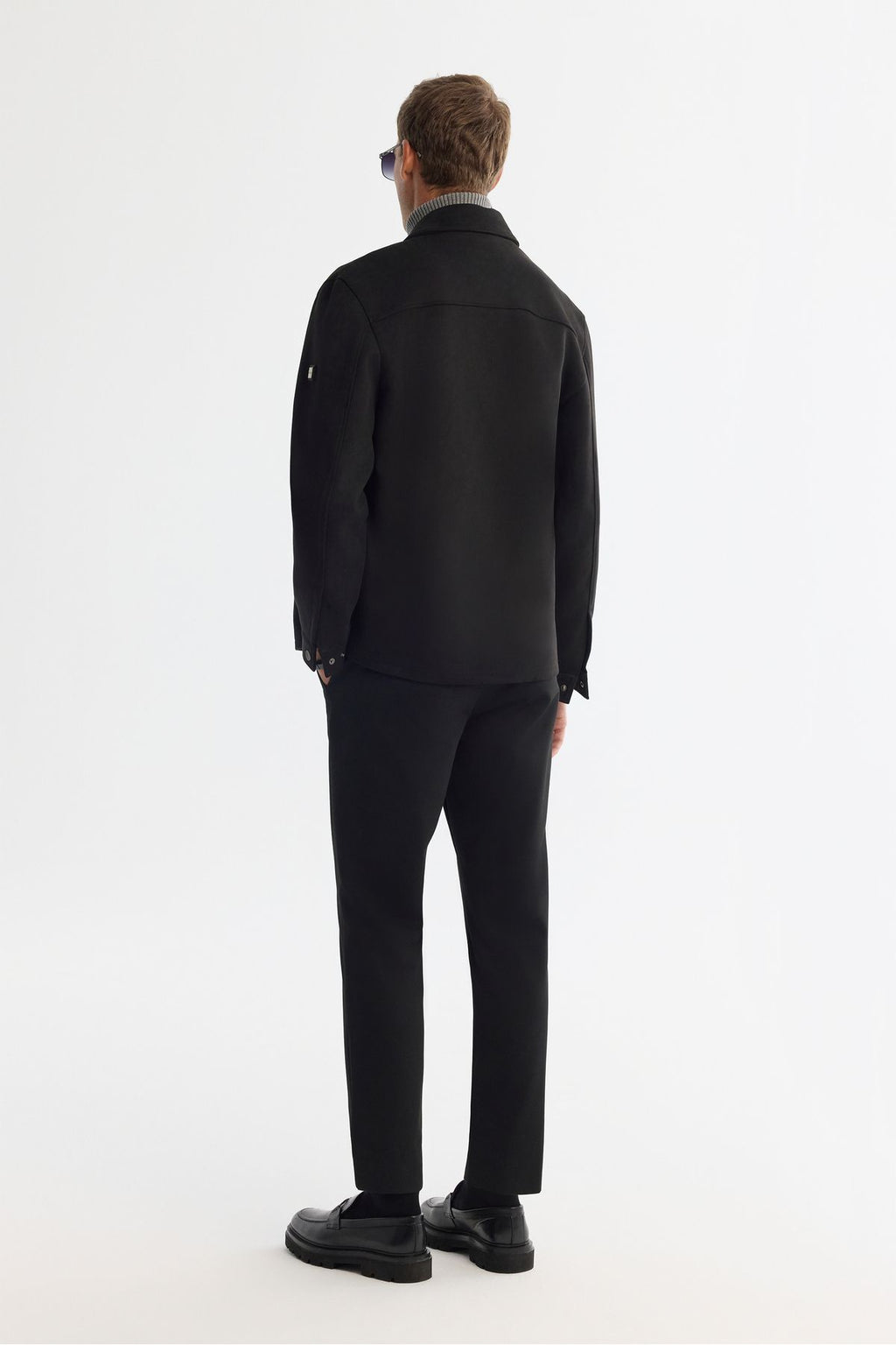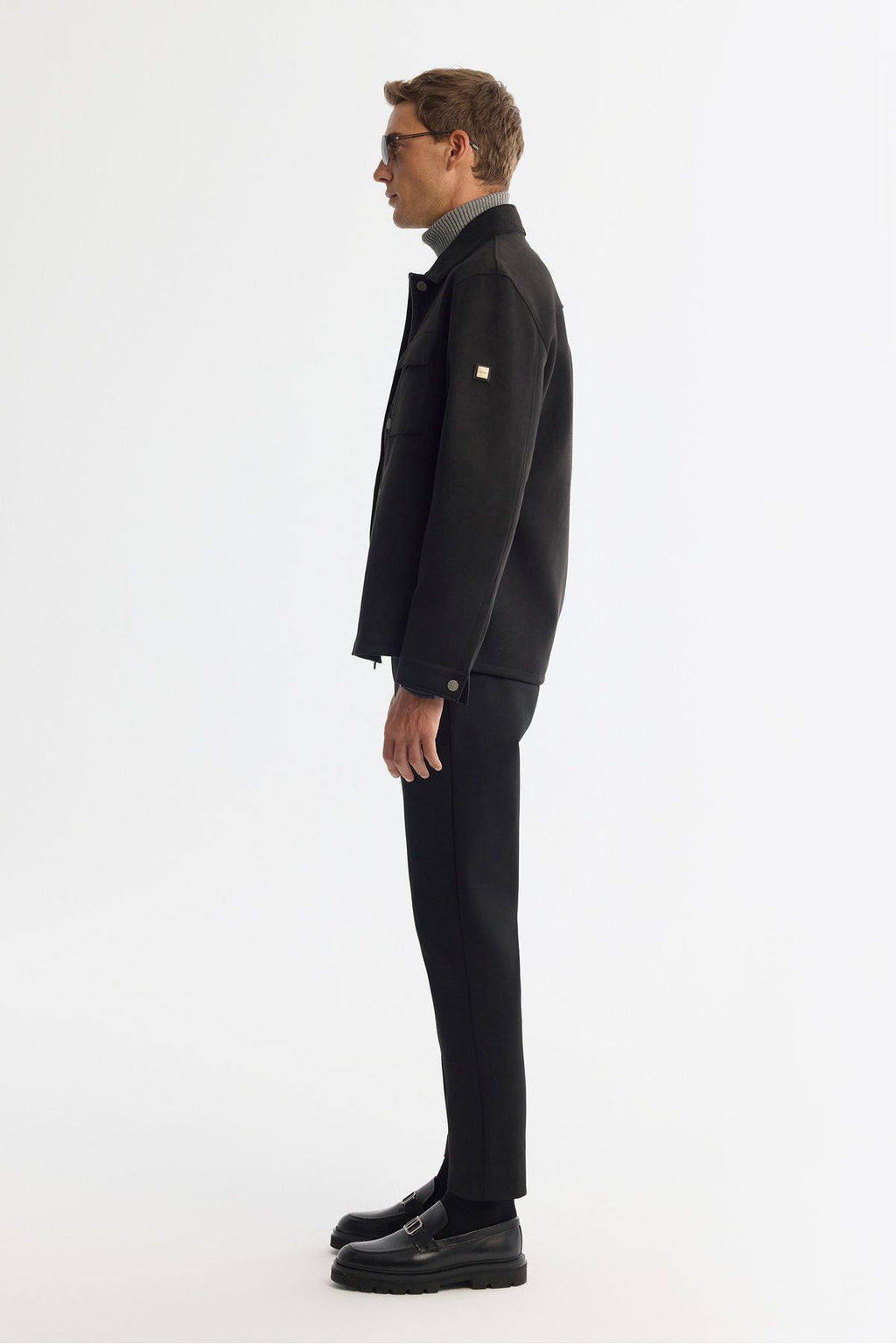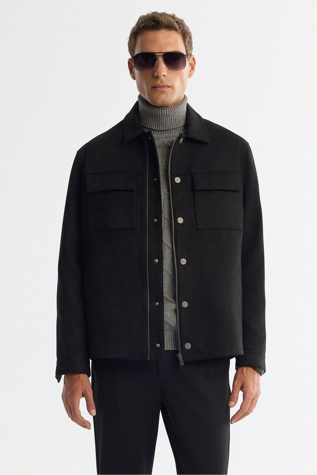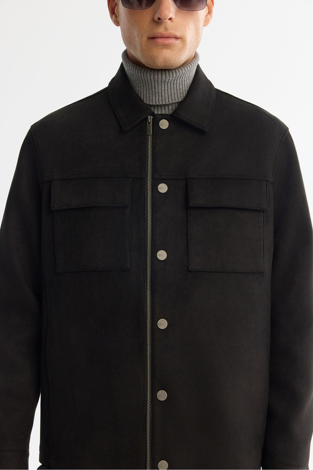 Men's black classic collar front zipper and snap closure Ince Mont A42y6077