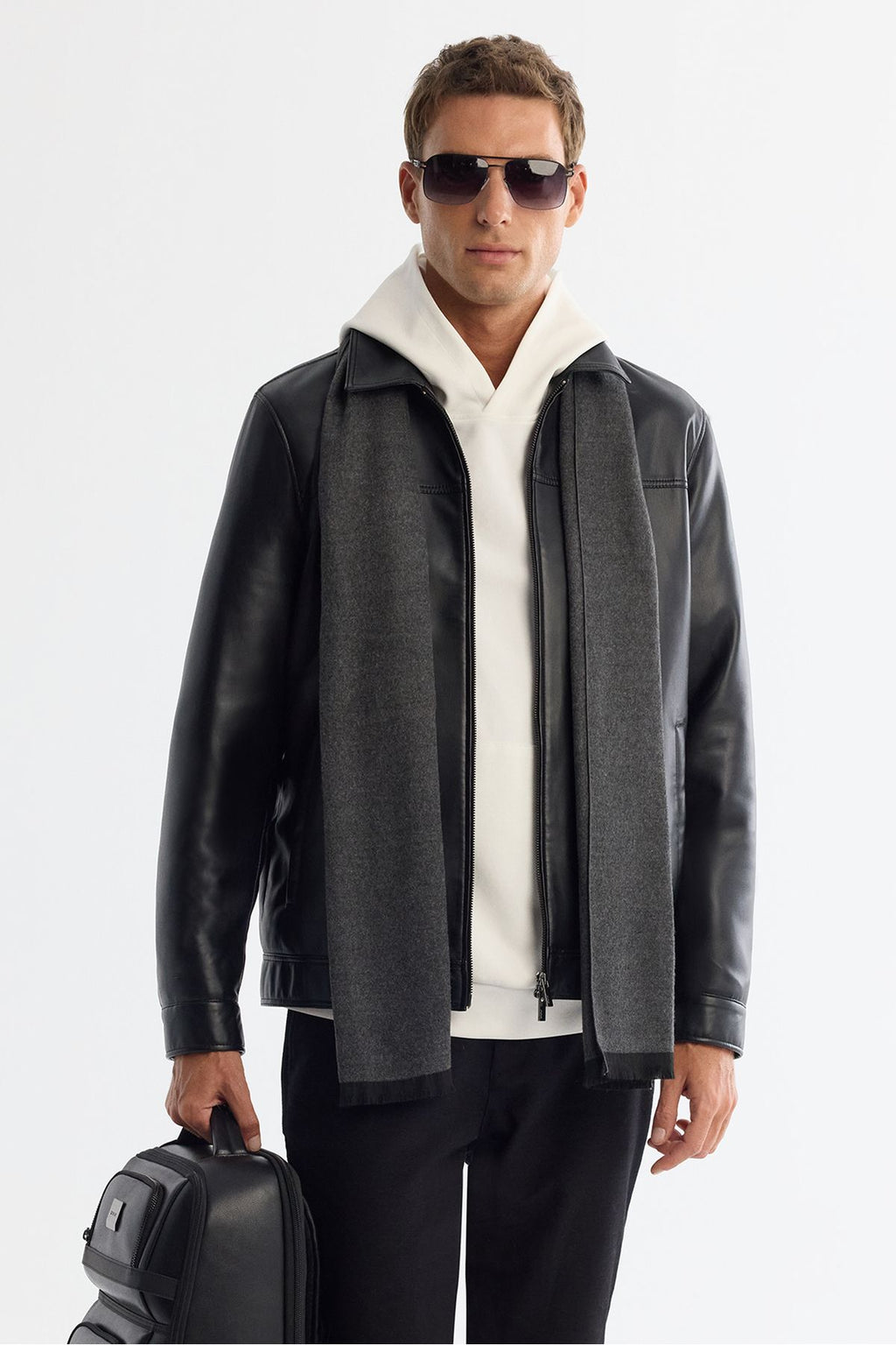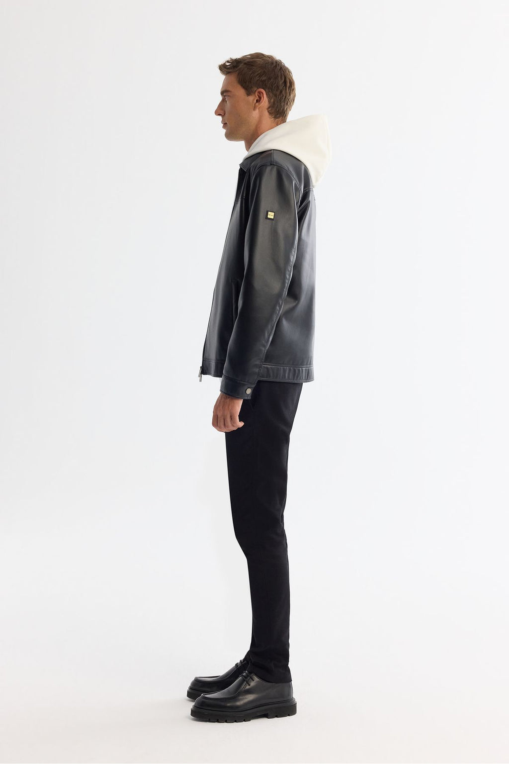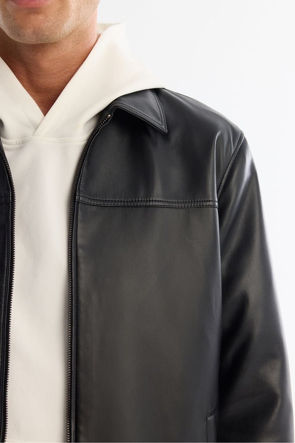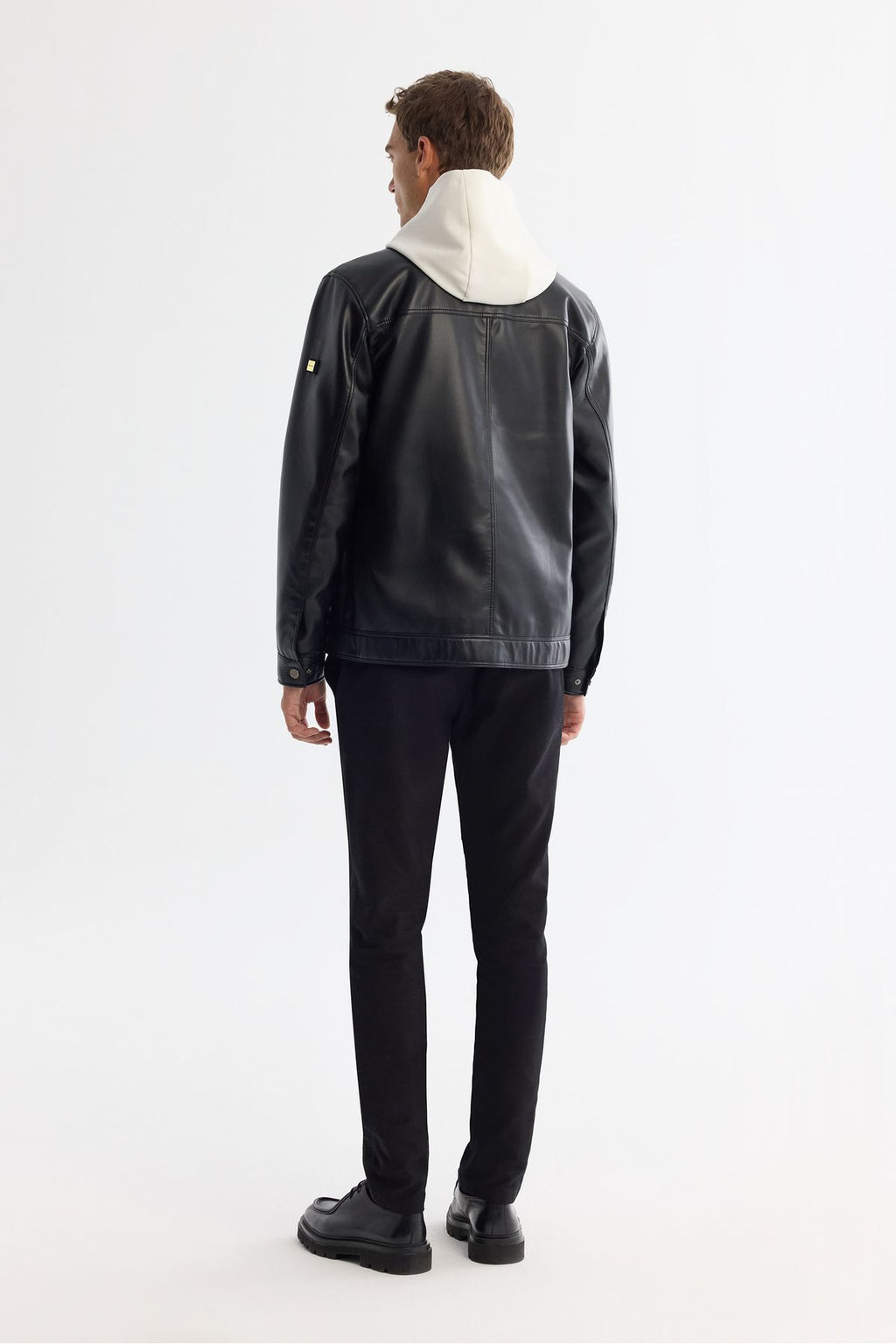 Men's black classic collar pocket leather -looking Mont A42y6024