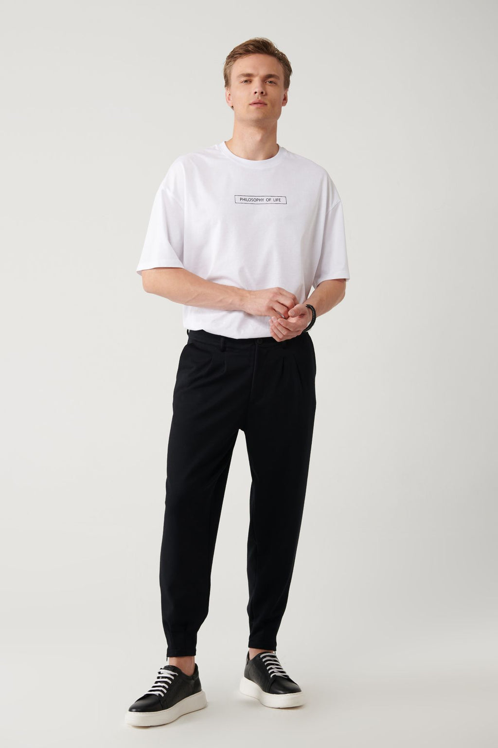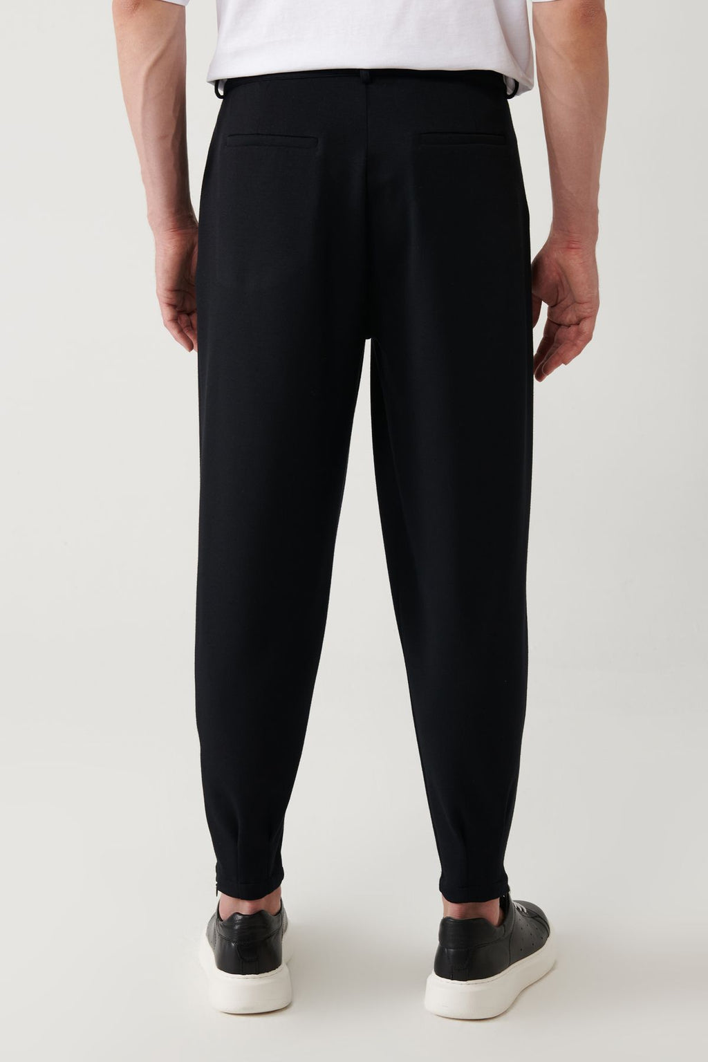 Men's Black Classic Lumbar Pleated Knitting Pants A41y3075