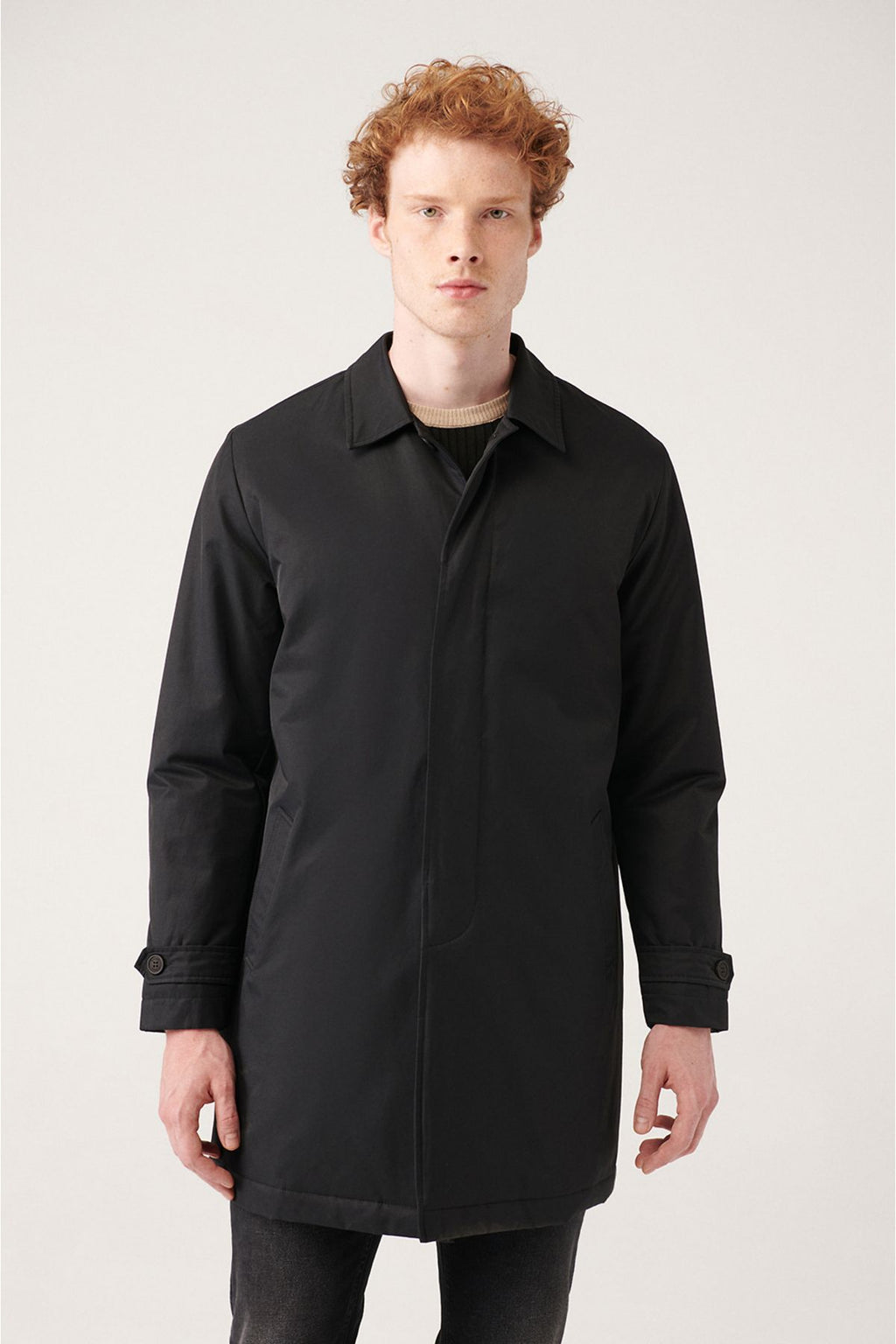 Men's Black Classic Neck Capticone Water Professor Trench coat A31y6000