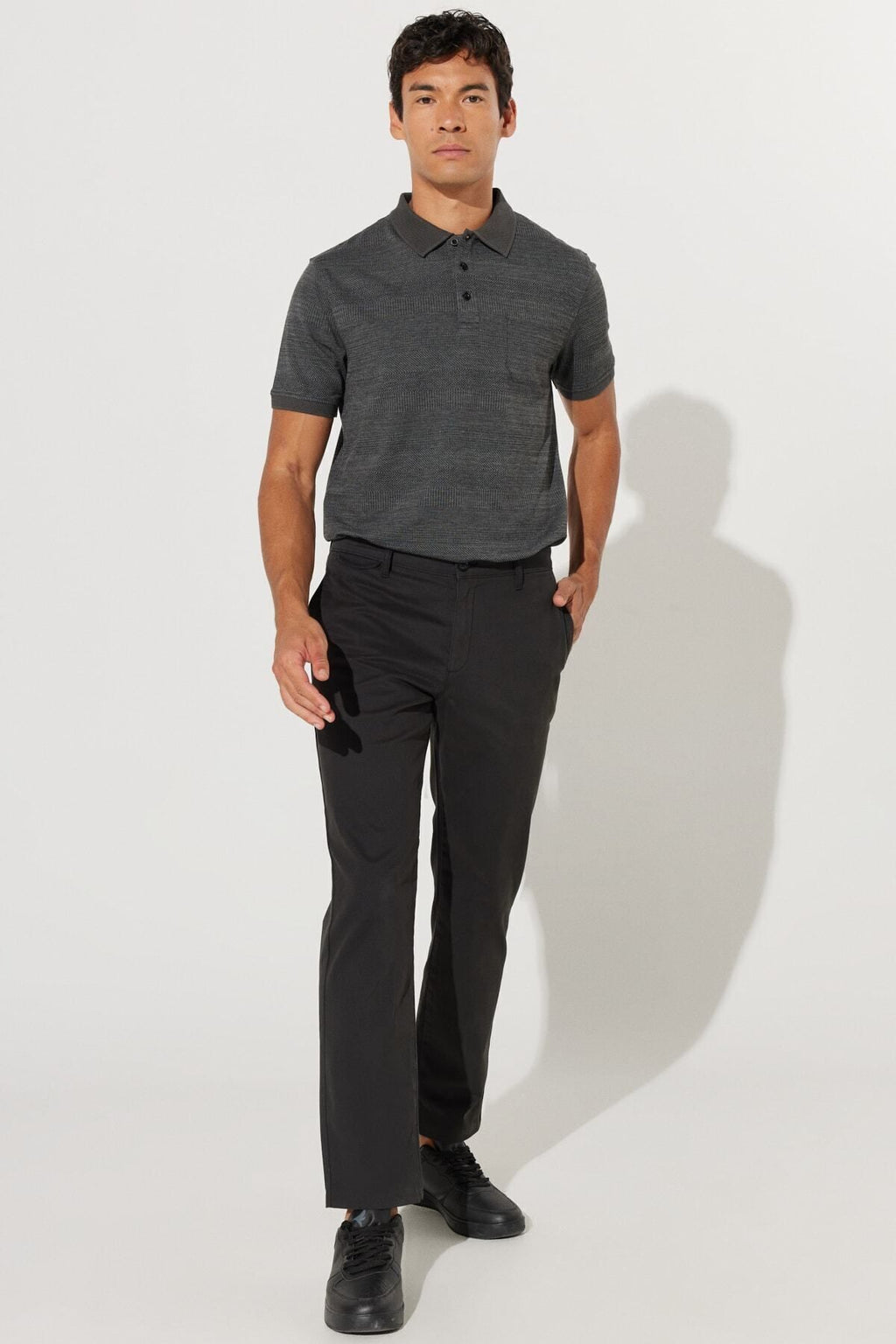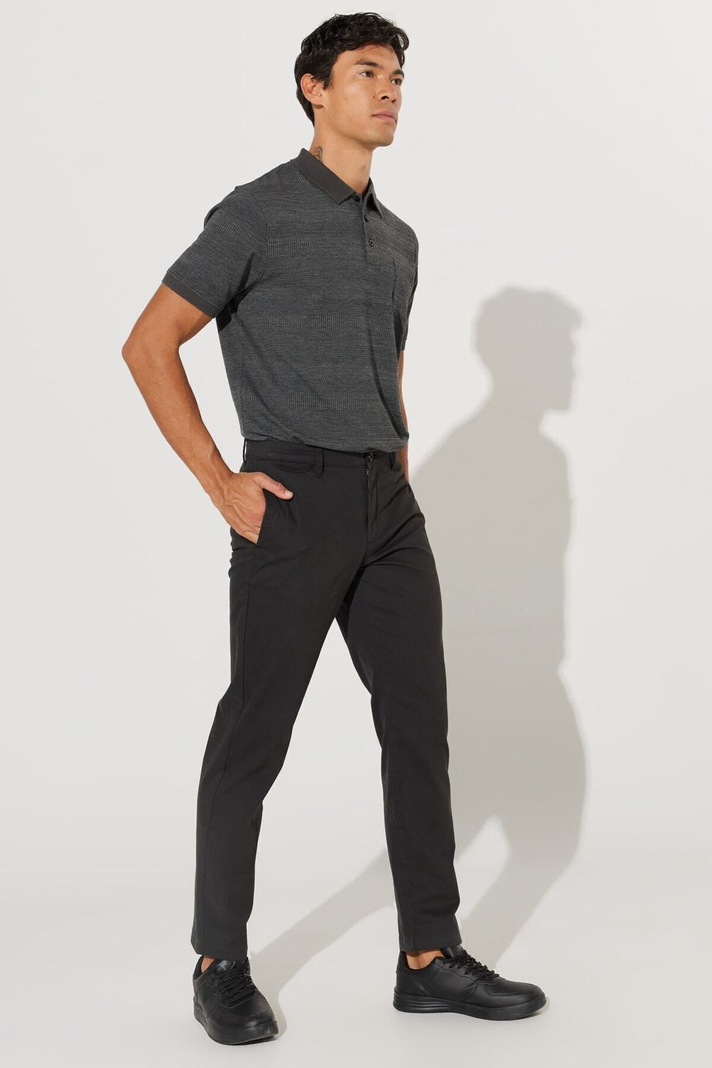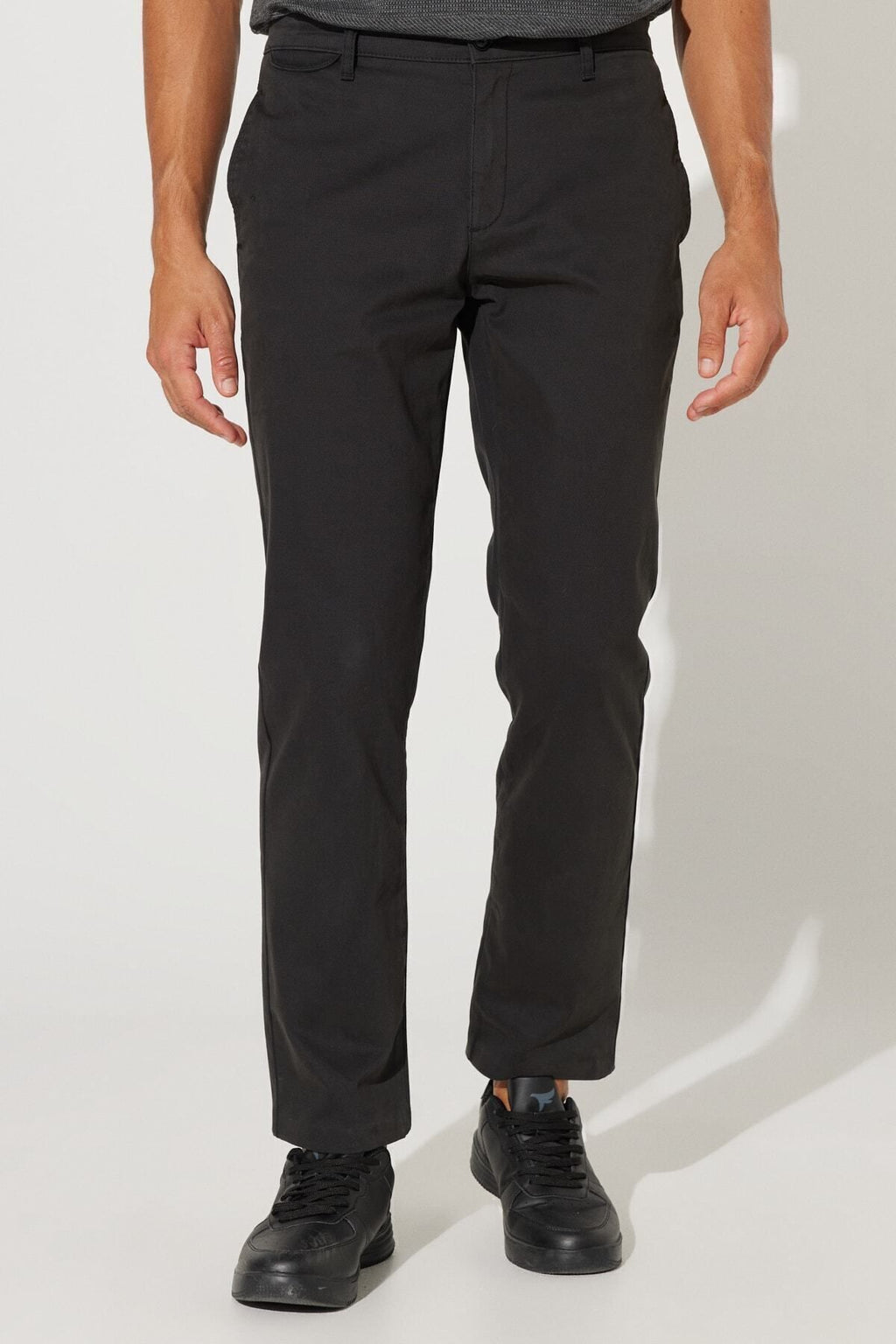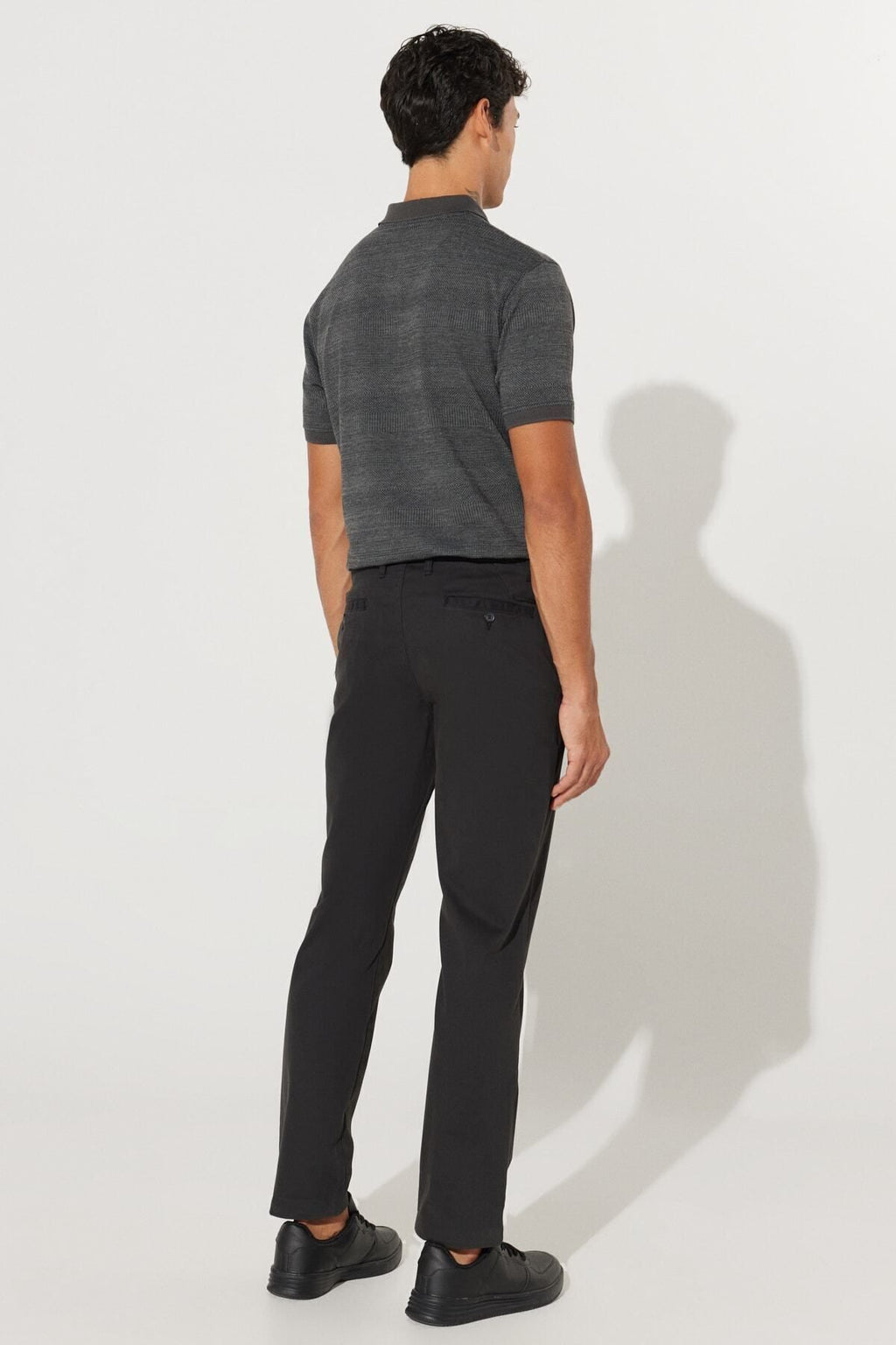 Men's black comfort fit comfortable cut cotton diagonal patterned flexible pants