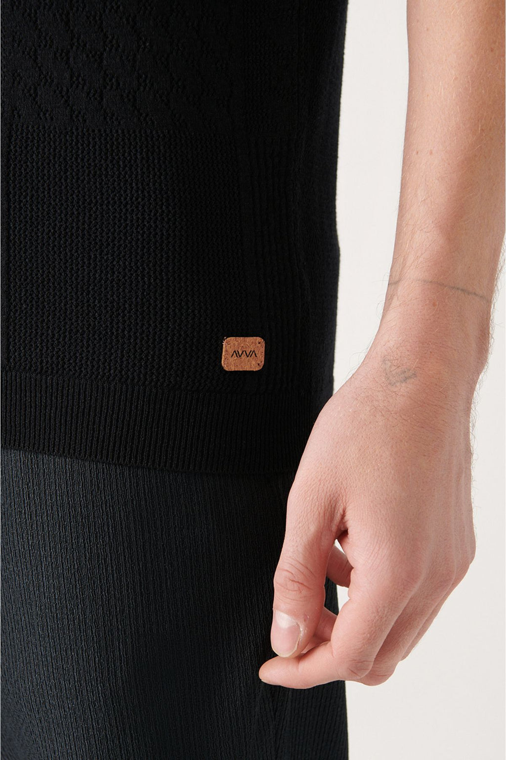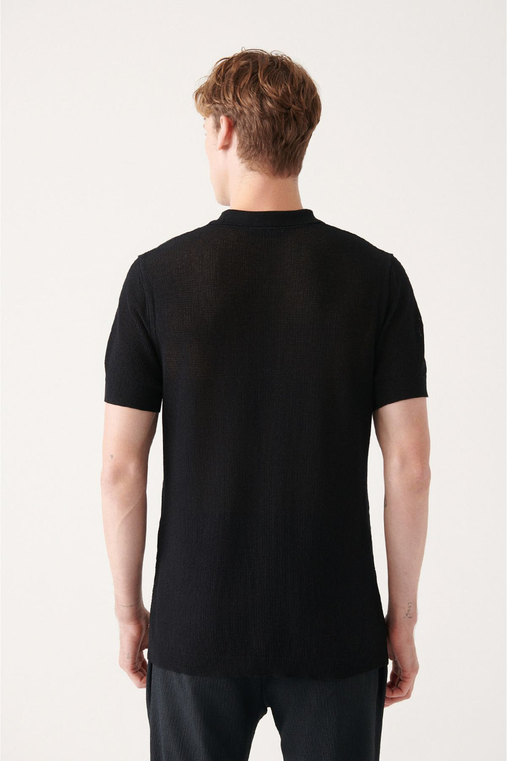 Men's Black Cotton Outpain Patterned Polo Yaka Triko T-Shirt A31Y5031