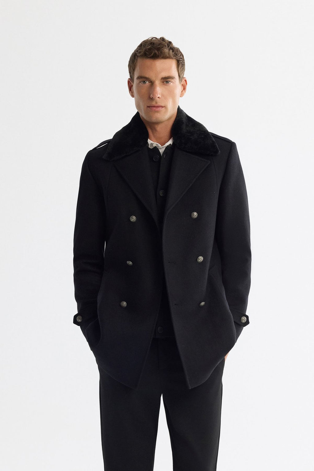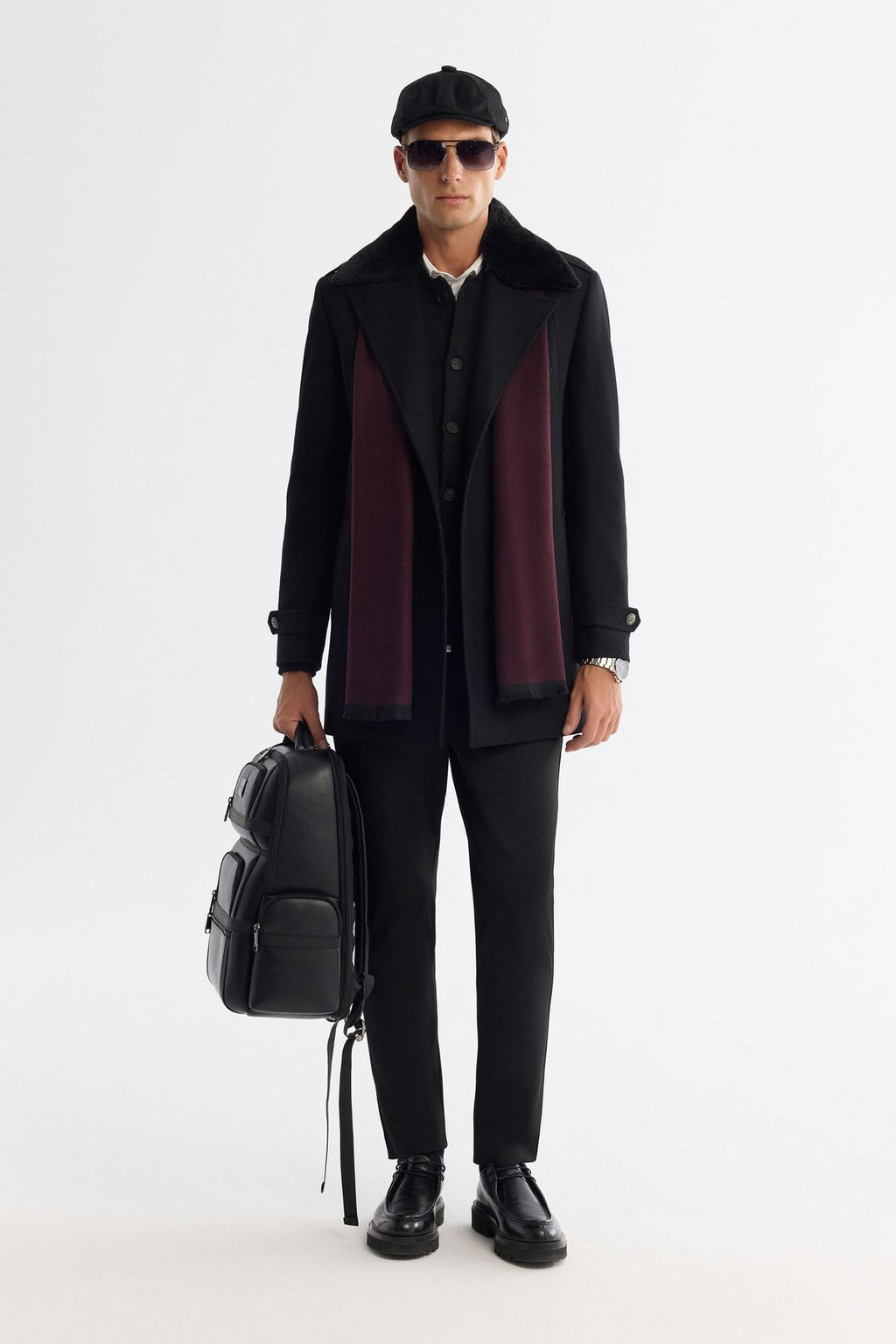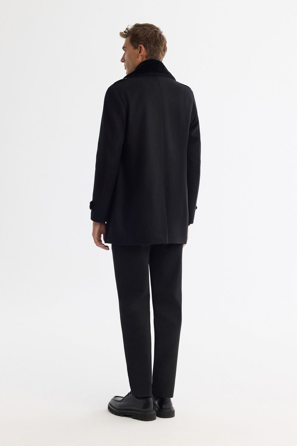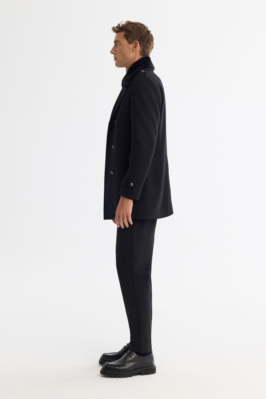 Men's black cruiser closing woolen collar Removable furred stamp coat a42y6099
