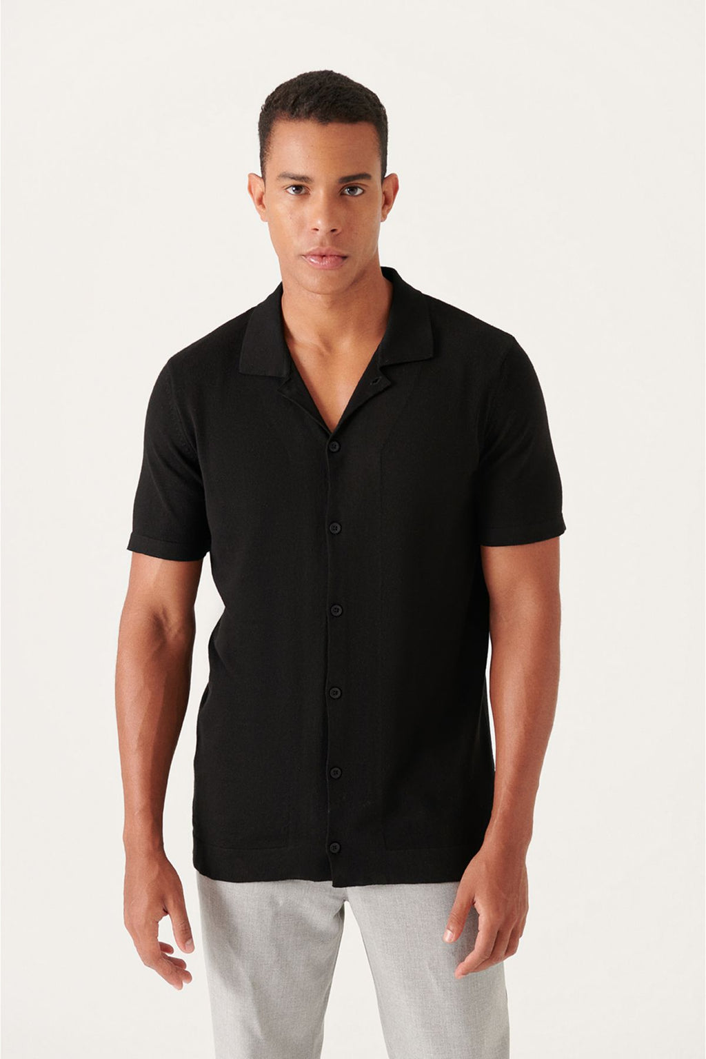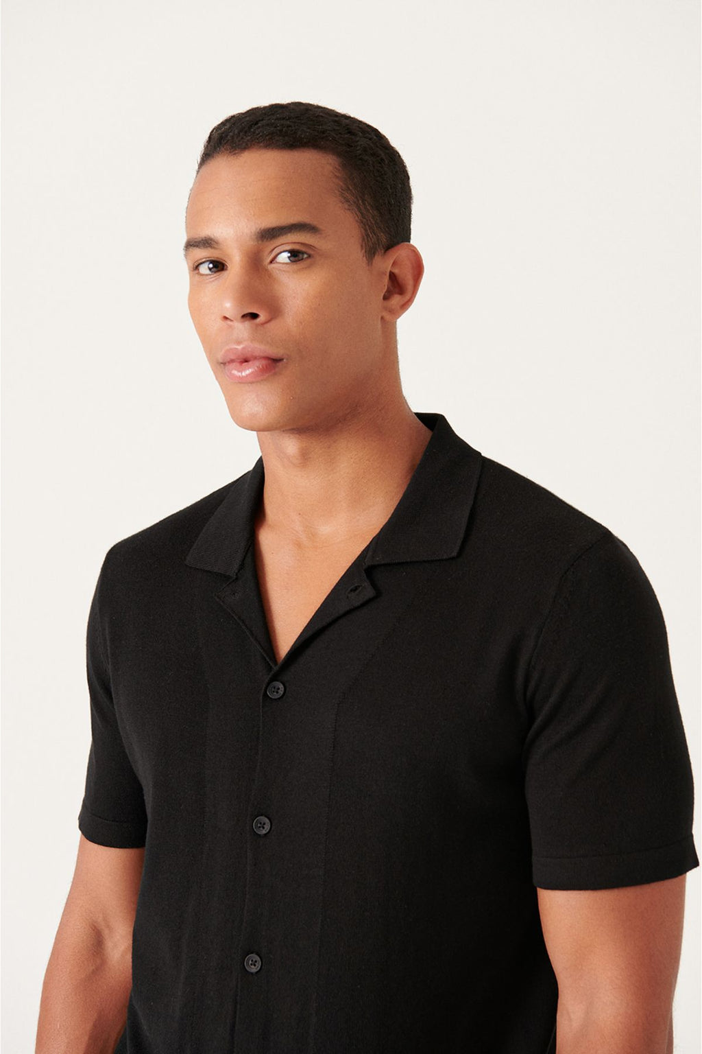 Men's Black Cuban Cuba Yaka button knitwear T-shirt B005008