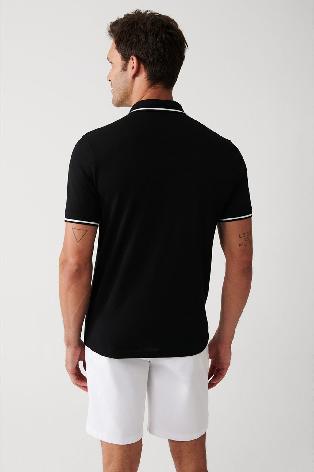 Men's black curved collar with 2 buttoned polo collar t-shirt E001031