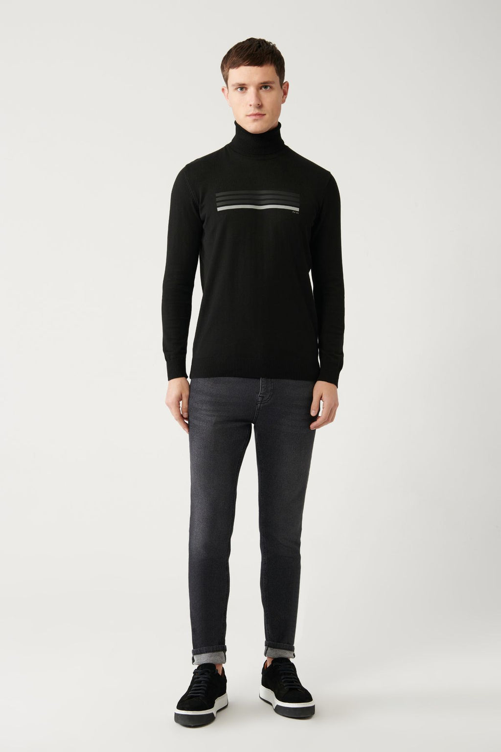 Men's black fisherman collar cotton knitwear sweater A32y5144