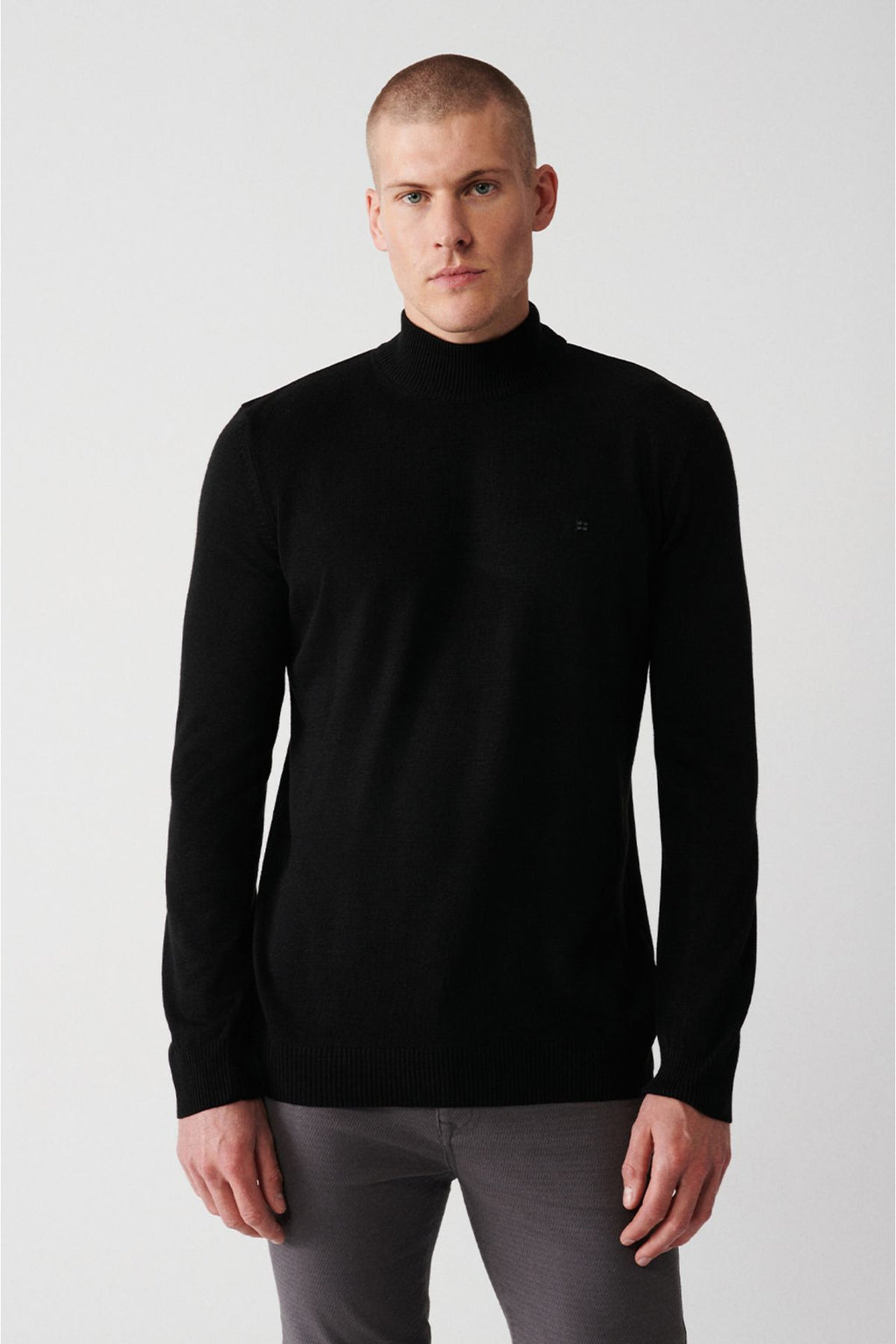 Men's black half -fisherman collar -free knitwear sweater E005001