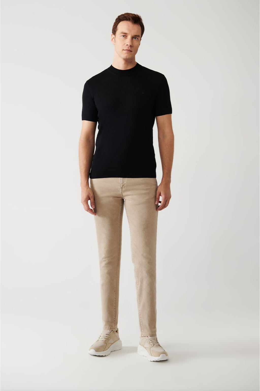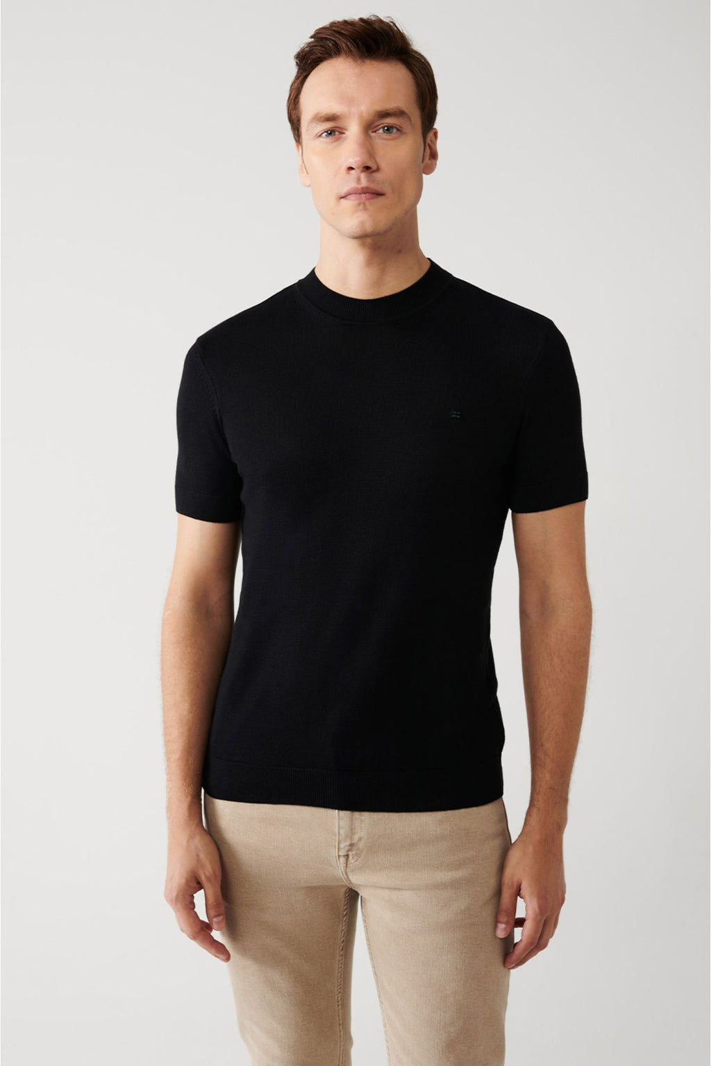 Men's black half fisherman collar short sleeve knitwear t-shirt B005025