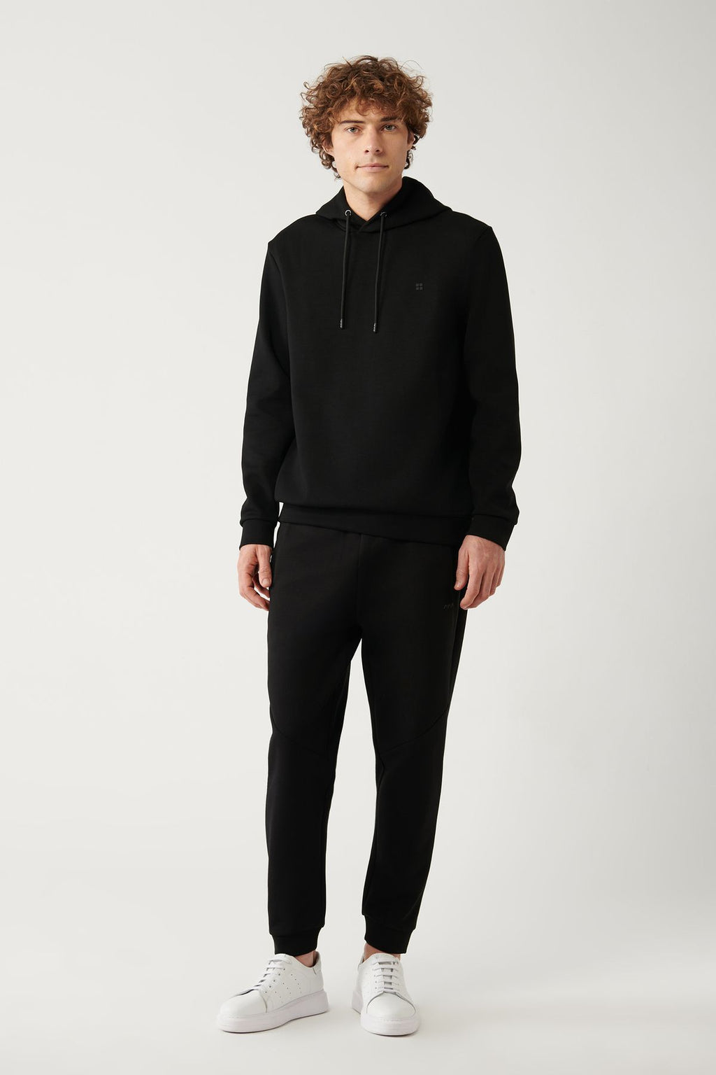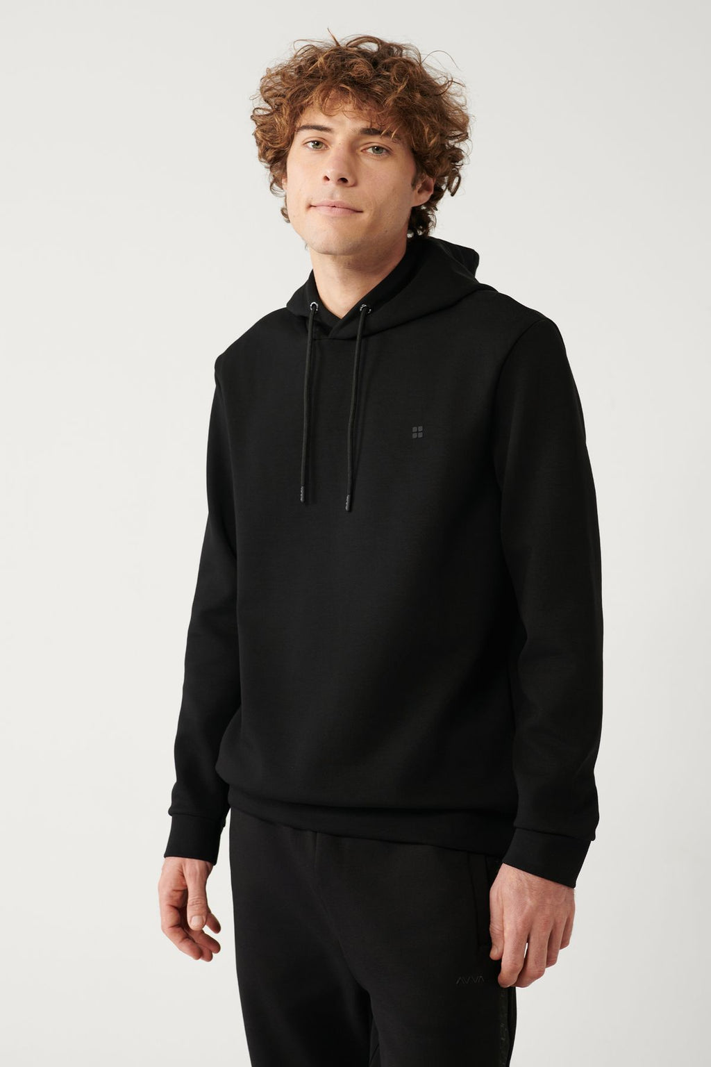 Men's black hooded flexible soft tissue Interlok fabric Sweatshirt B001101