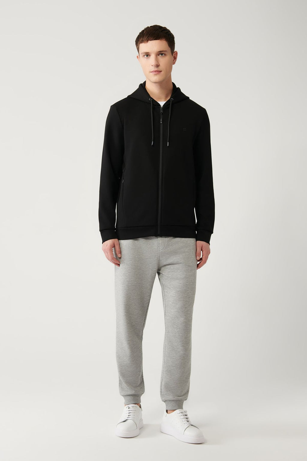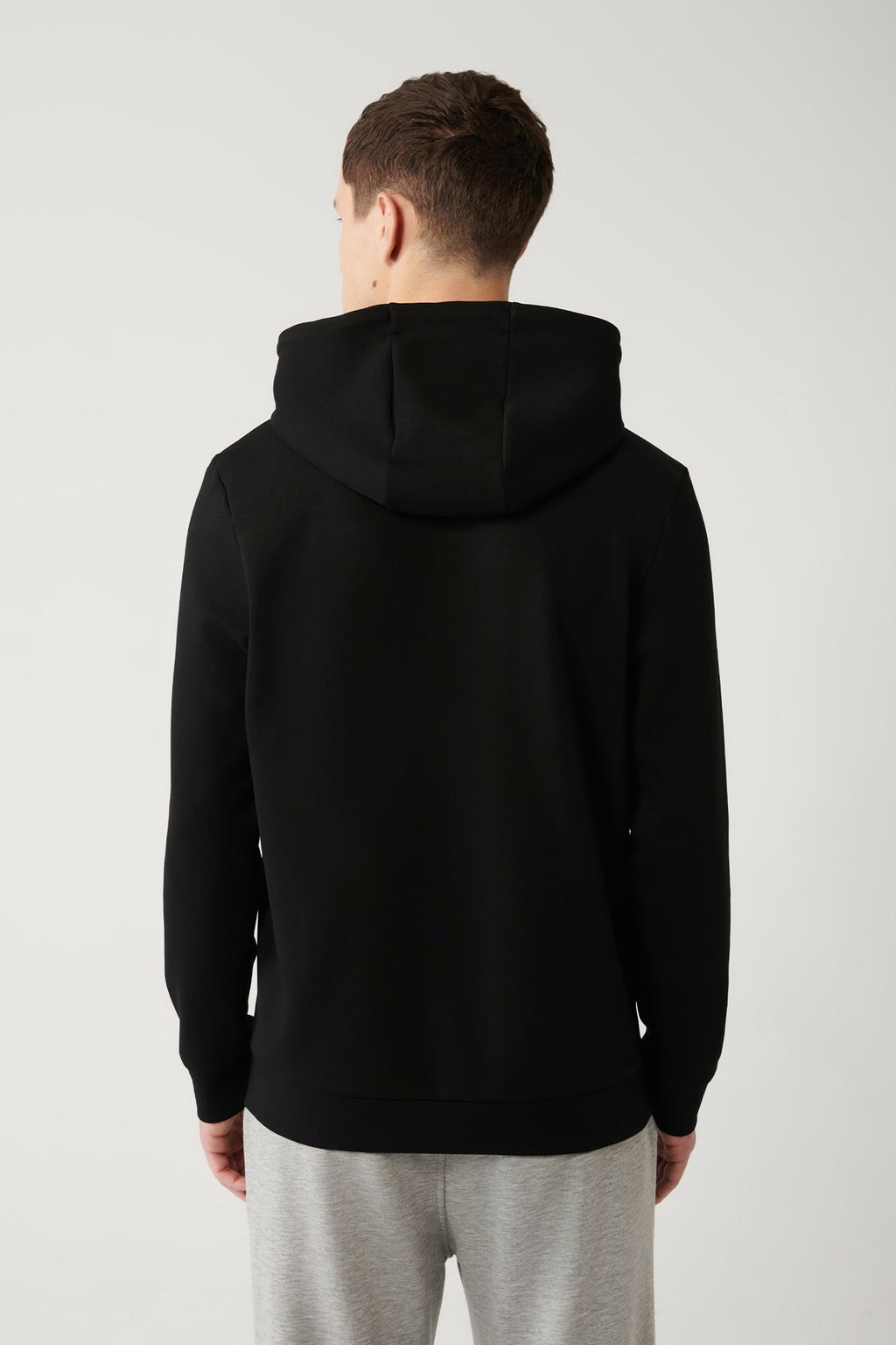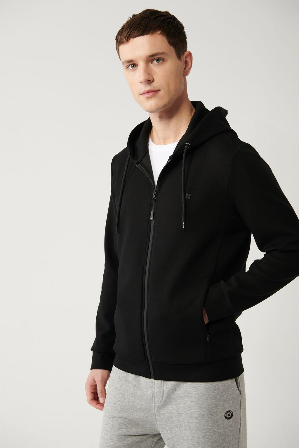 Men's black hooded Interlok Fabric Zipper Sweatshirt B001102