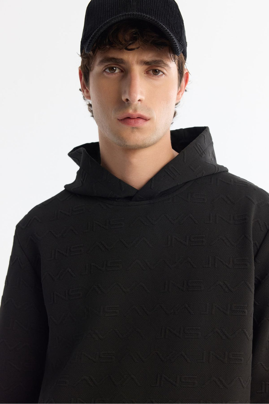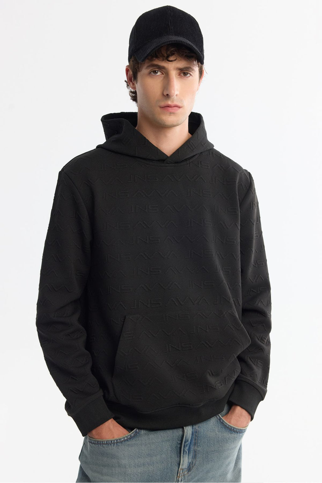 Men's black hooded printed sweatshirt A42y1332