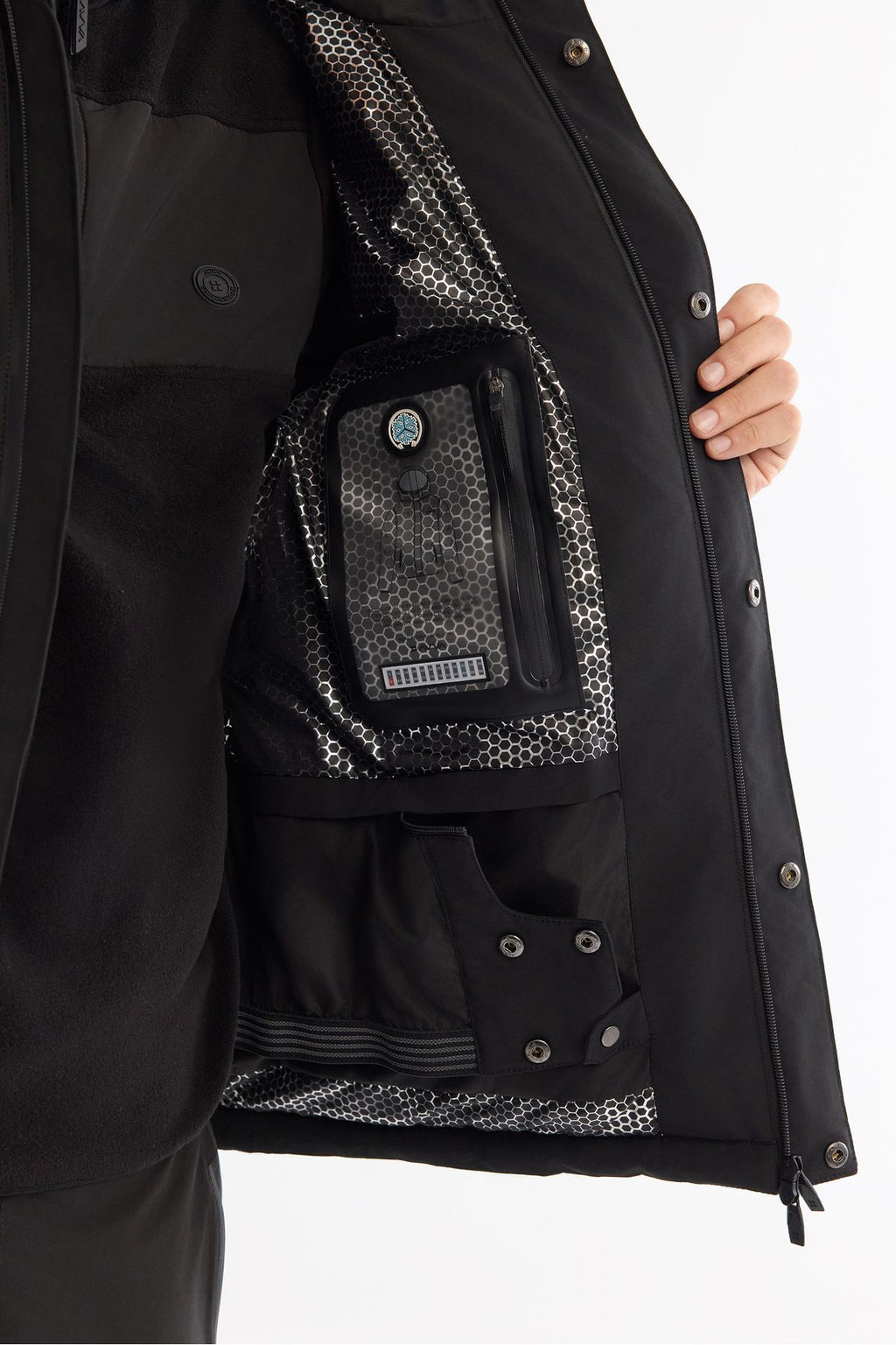 Men's black hooded water repulsion windproof -20 degrees resistant swelling ski coat A42y6159