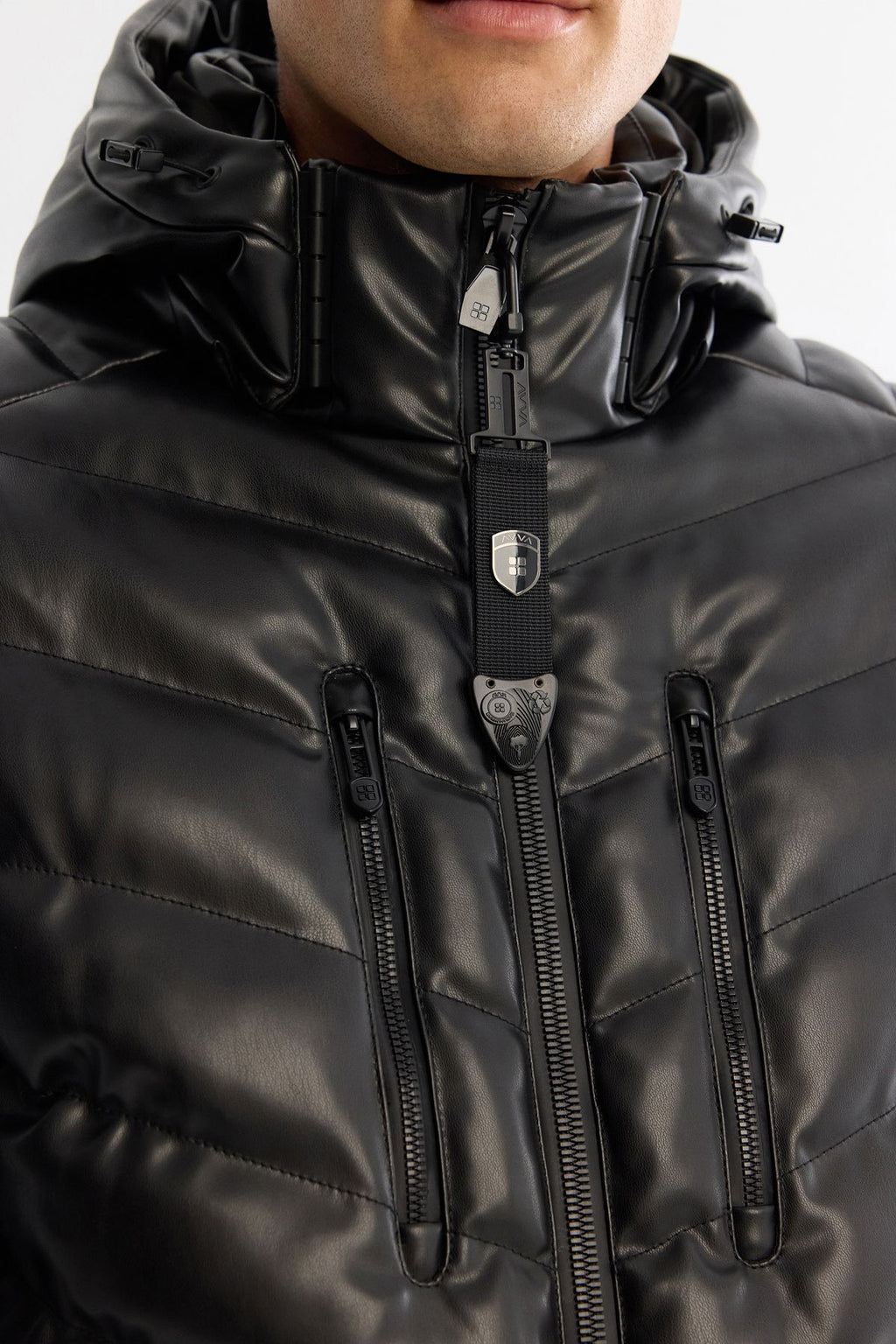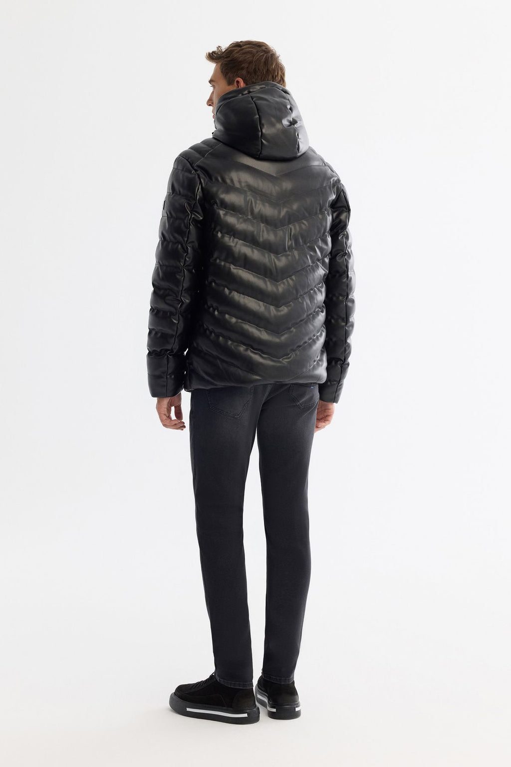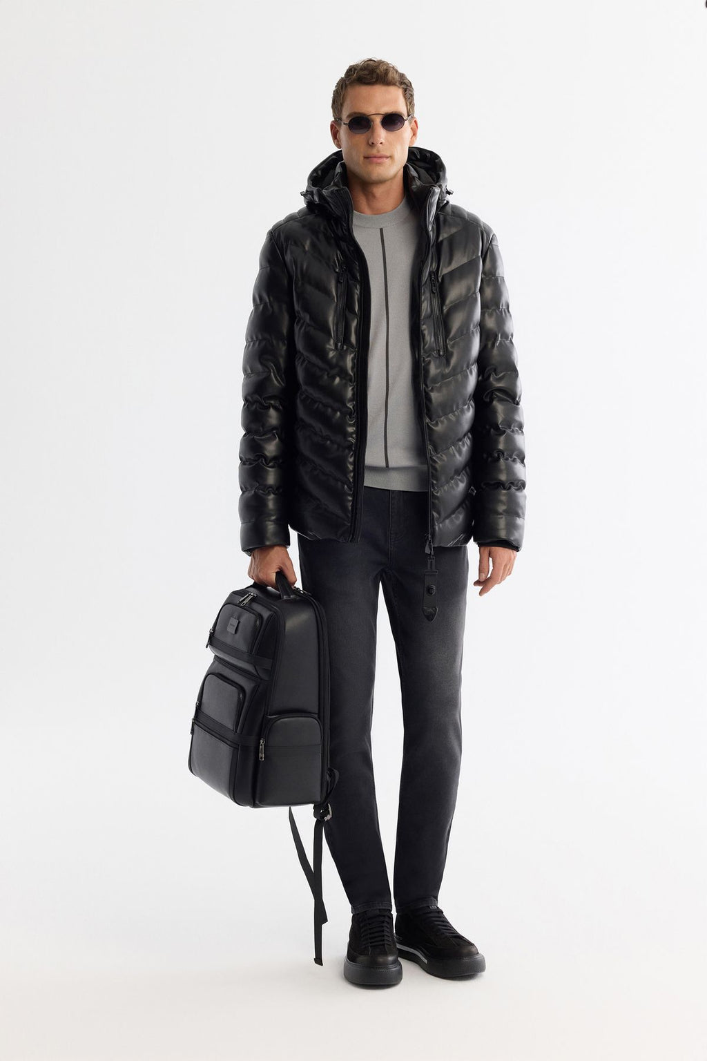 Men's black hooded water repulsive windproof swelling coat A42y6003