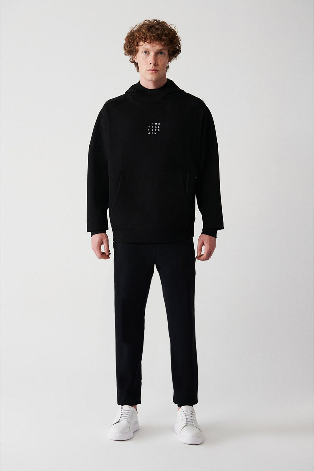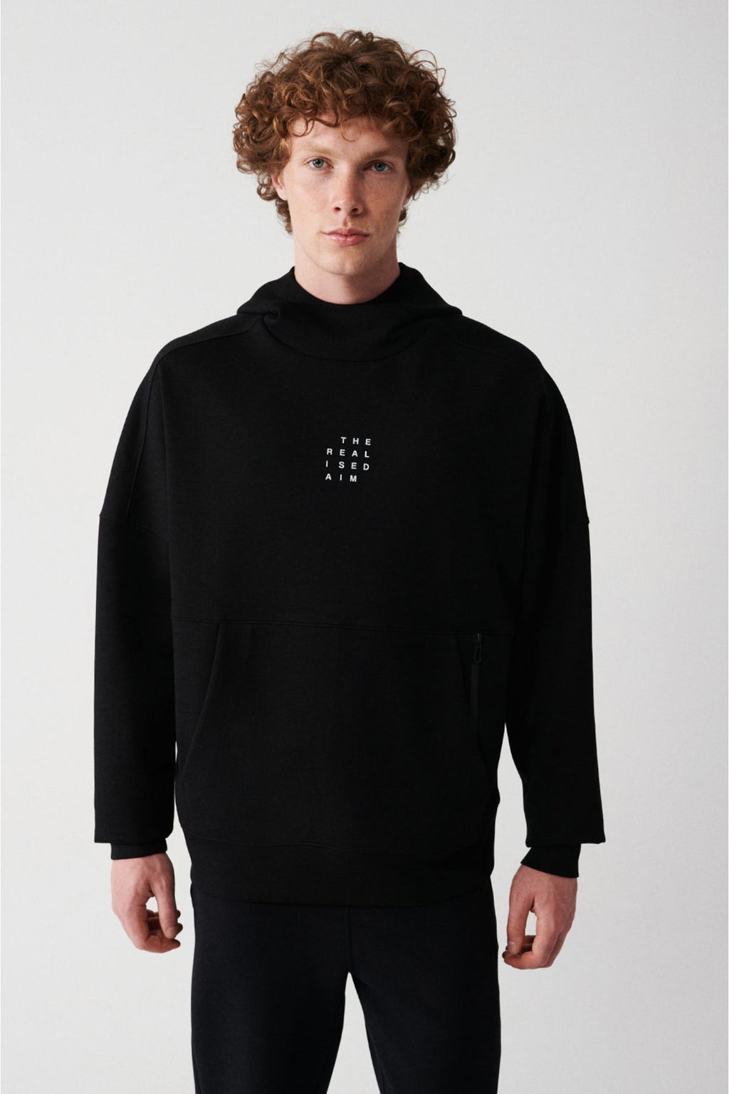 Men's Black Interlok Hooded Kangaroo Pocket Sweatshirt A32Y1280