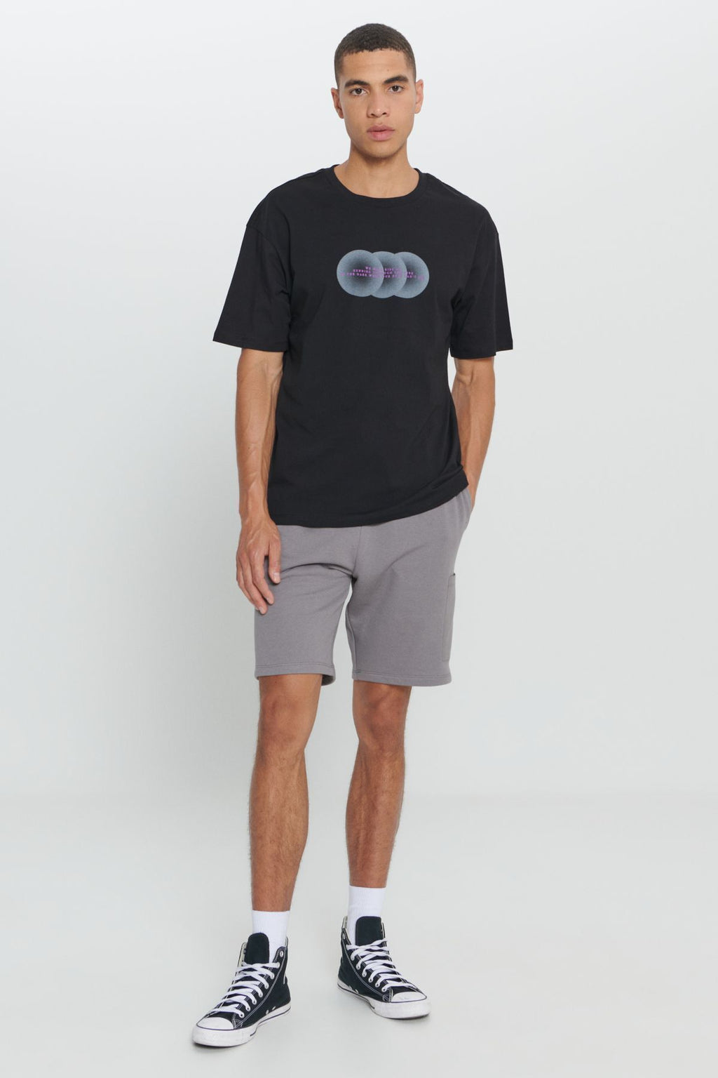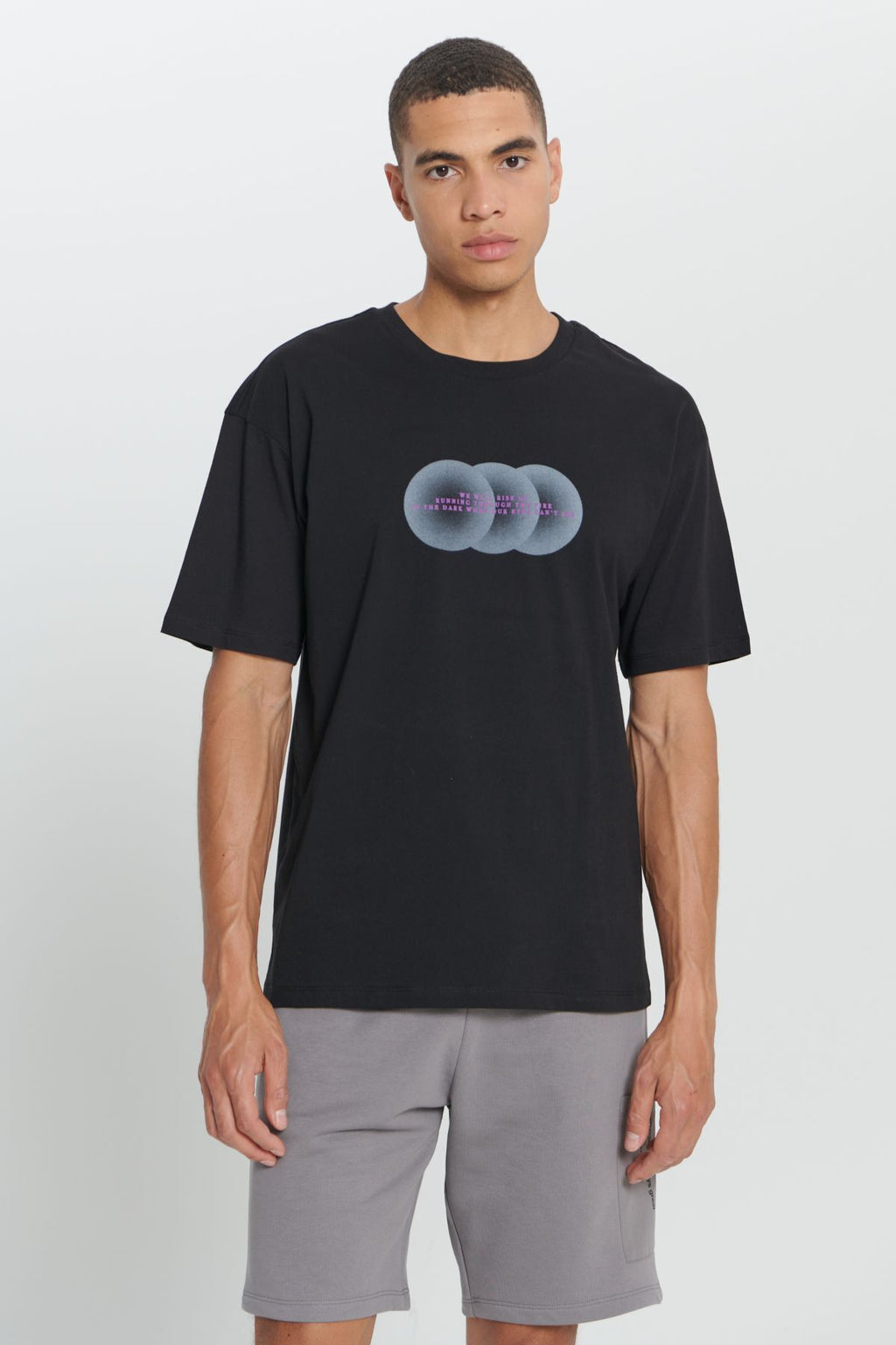 Men's black loose fit abundant cut 100 %cotton printed bike collar t -shirt