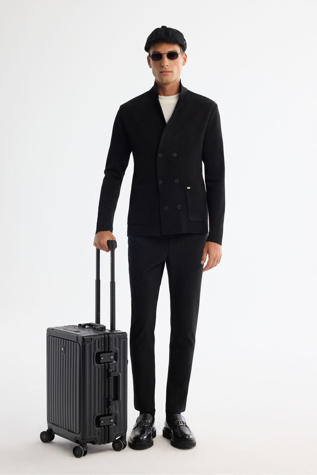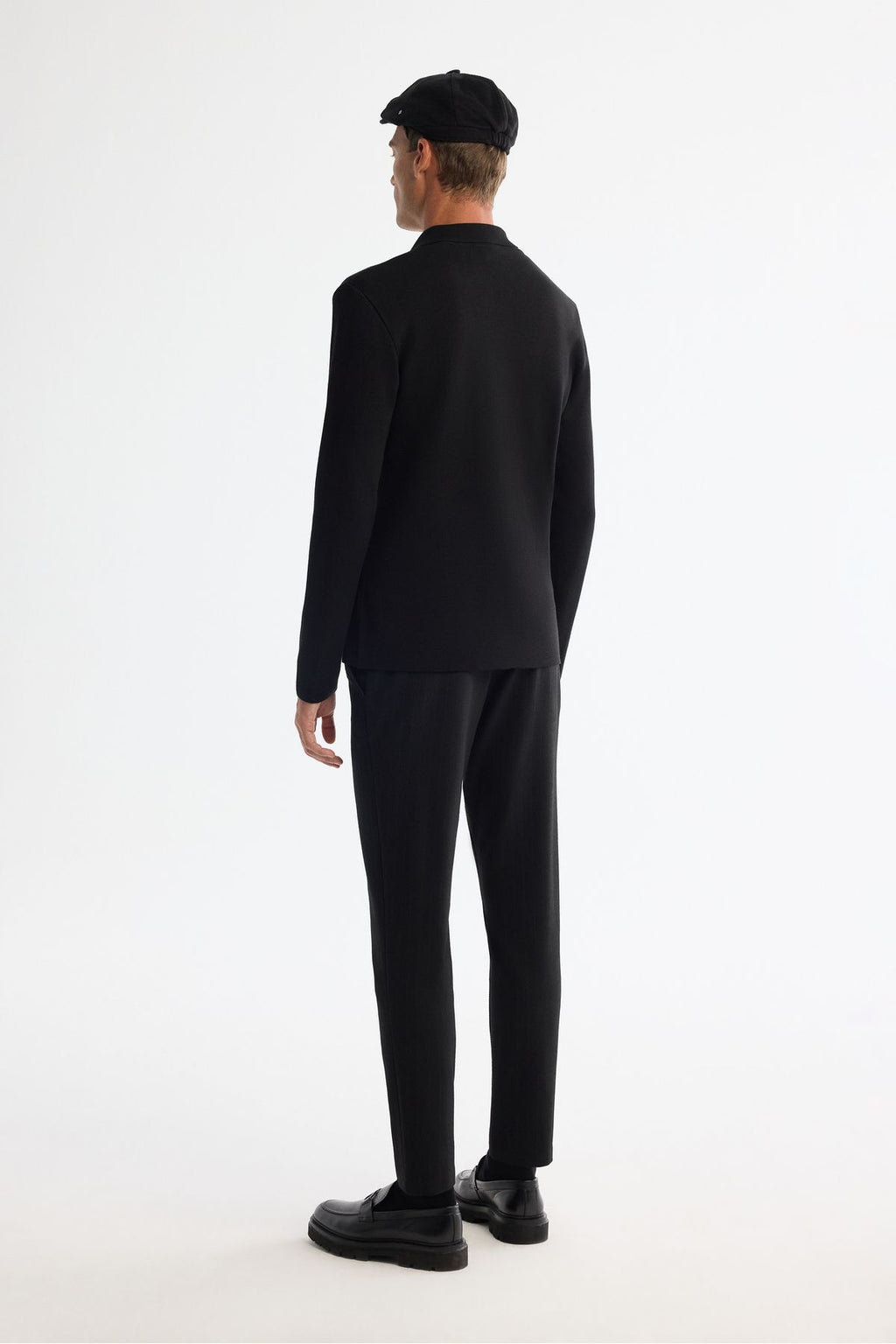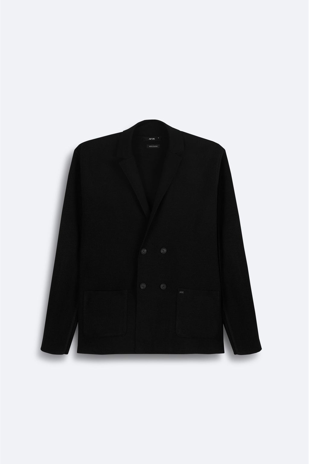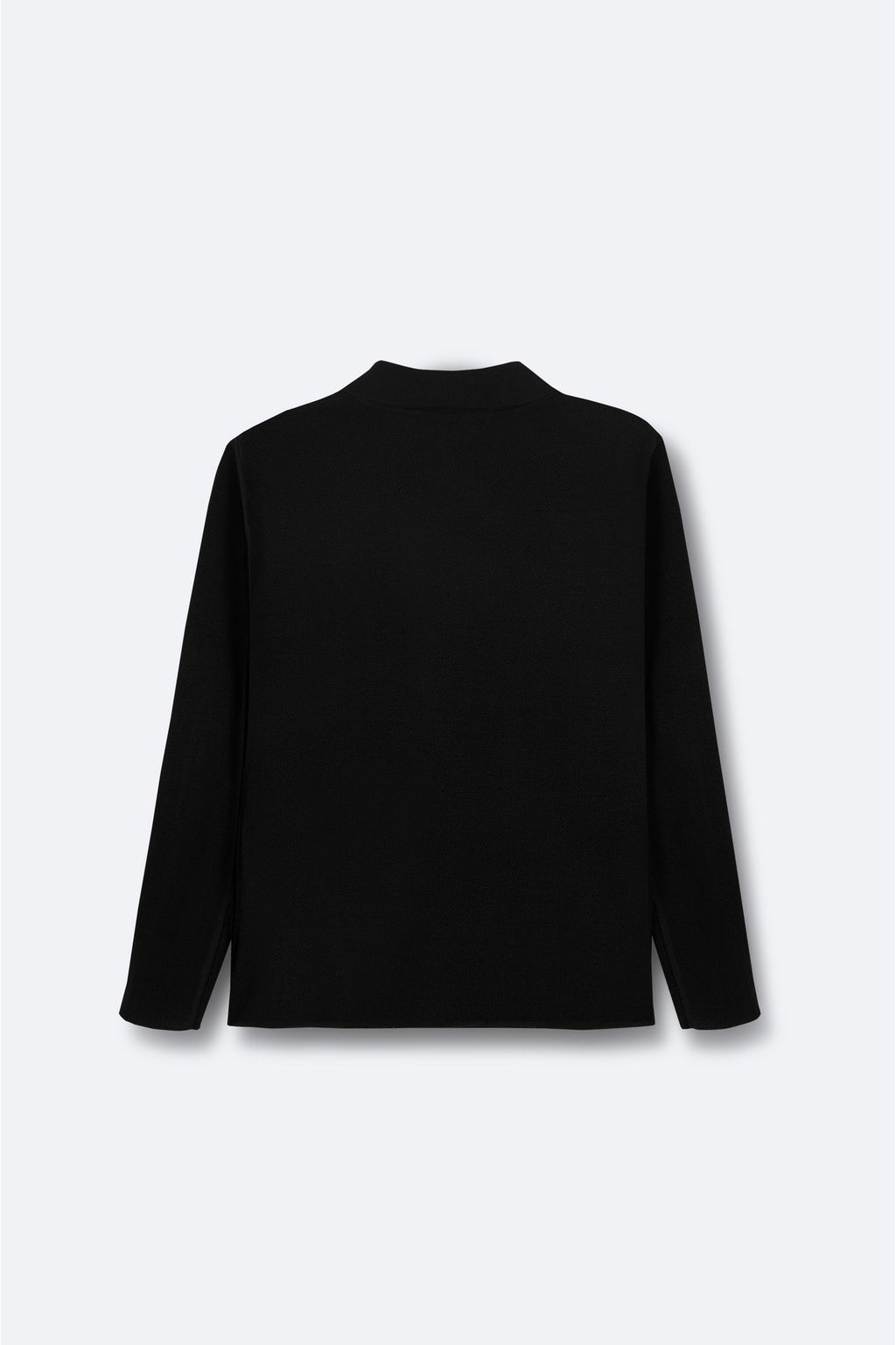 Men's black mono collar cruve bag pocket woolen knitwear jacket A42y5153