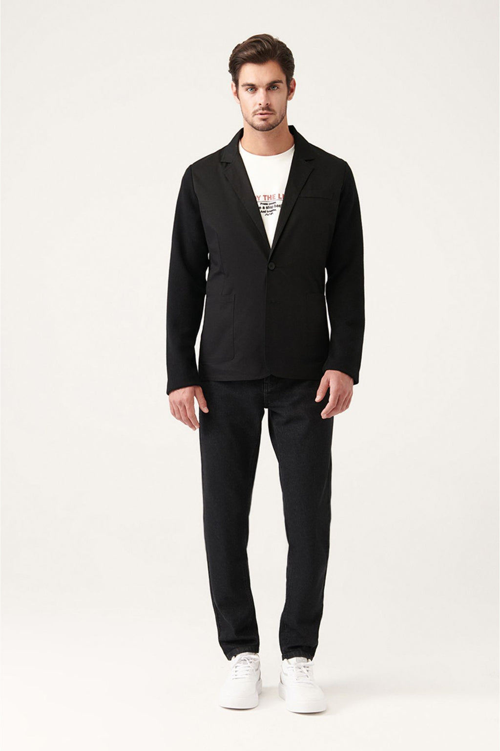 Men's Black Mono Yaka Primary Triko Detailed Jacket A31y4001