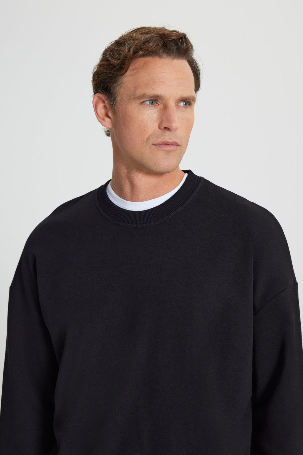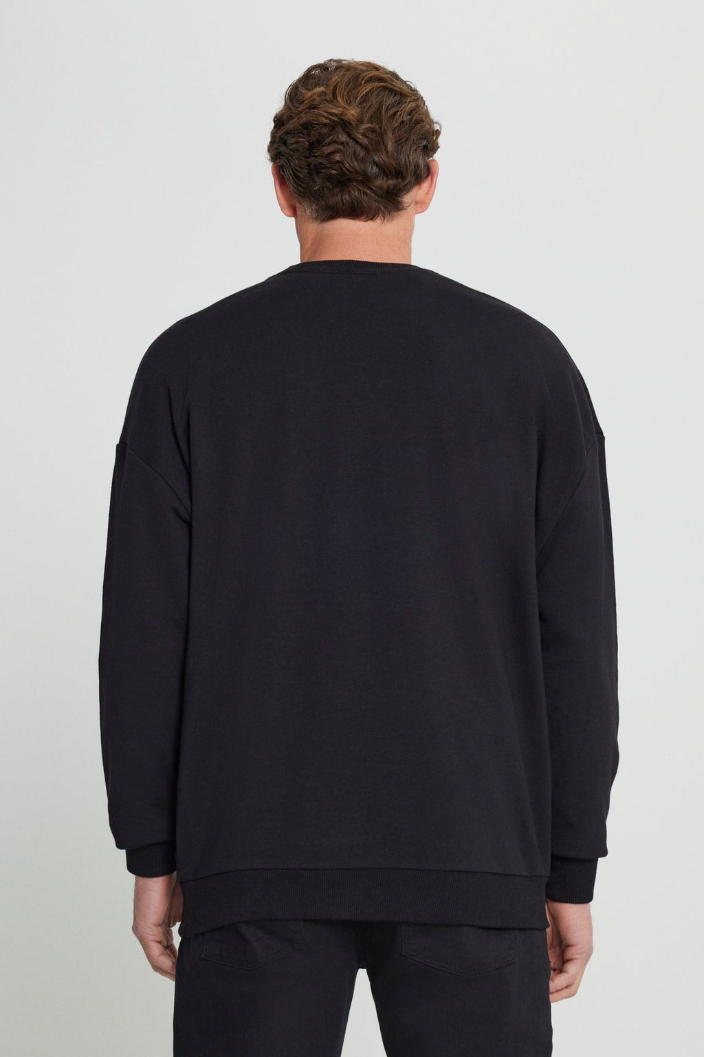 Men's black oversize plenty of cutting 3 IP bicycle collar cotton sweatshirt