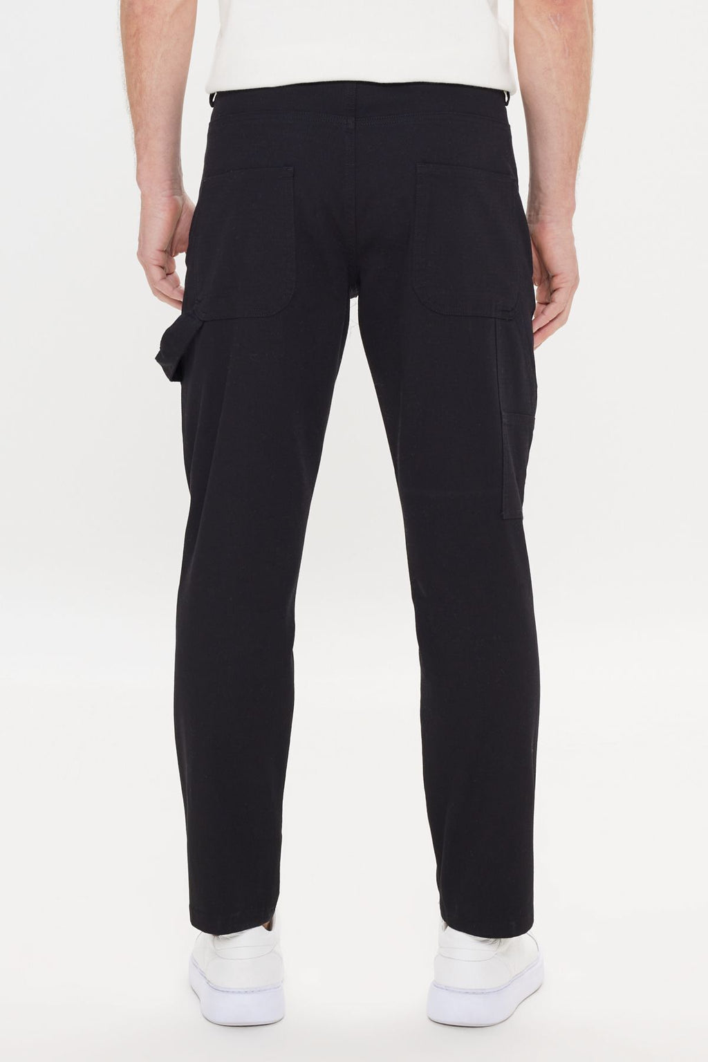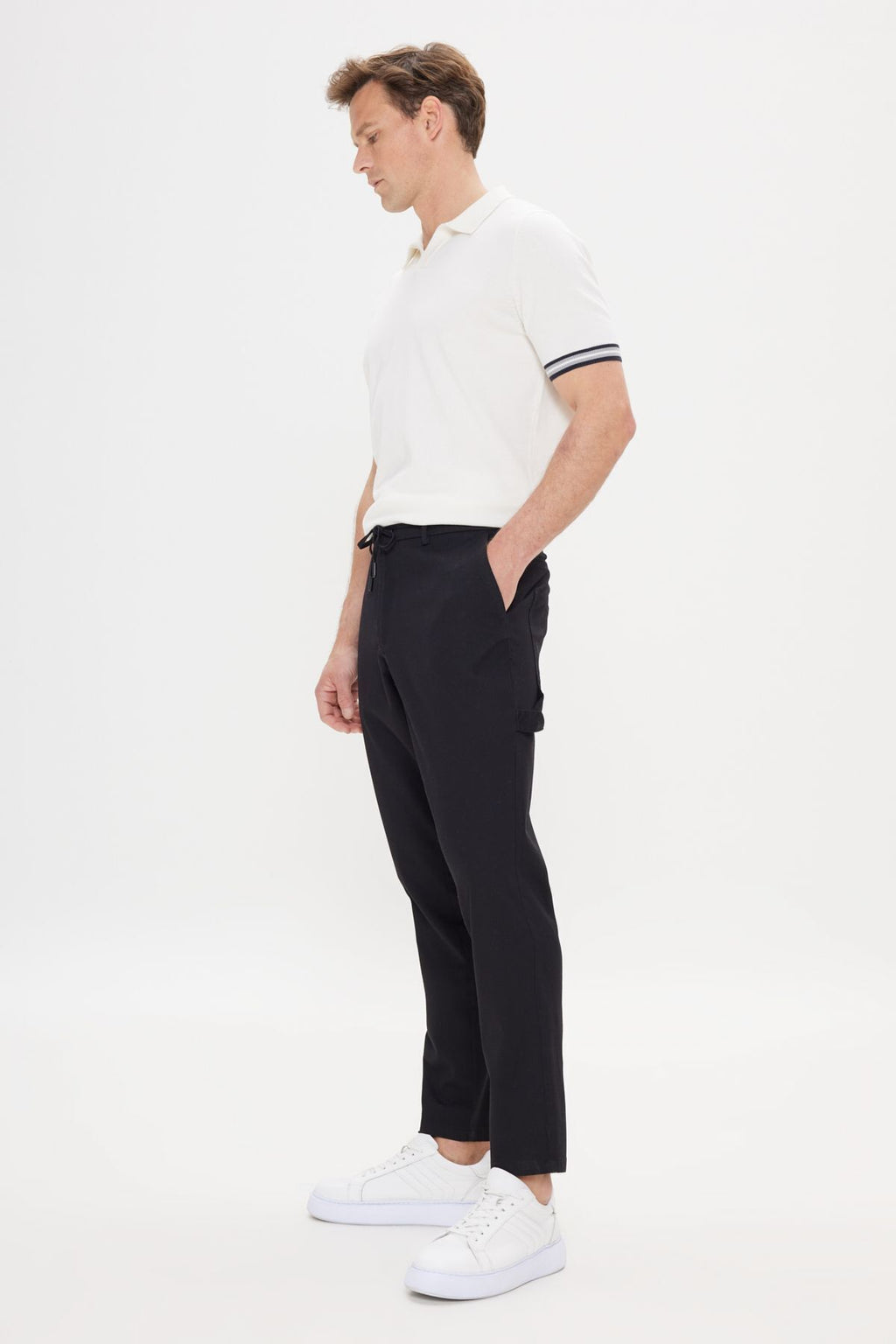 Men's black oversize with plenty of cut waist -tied cotton flexible Achaened side pocket pants