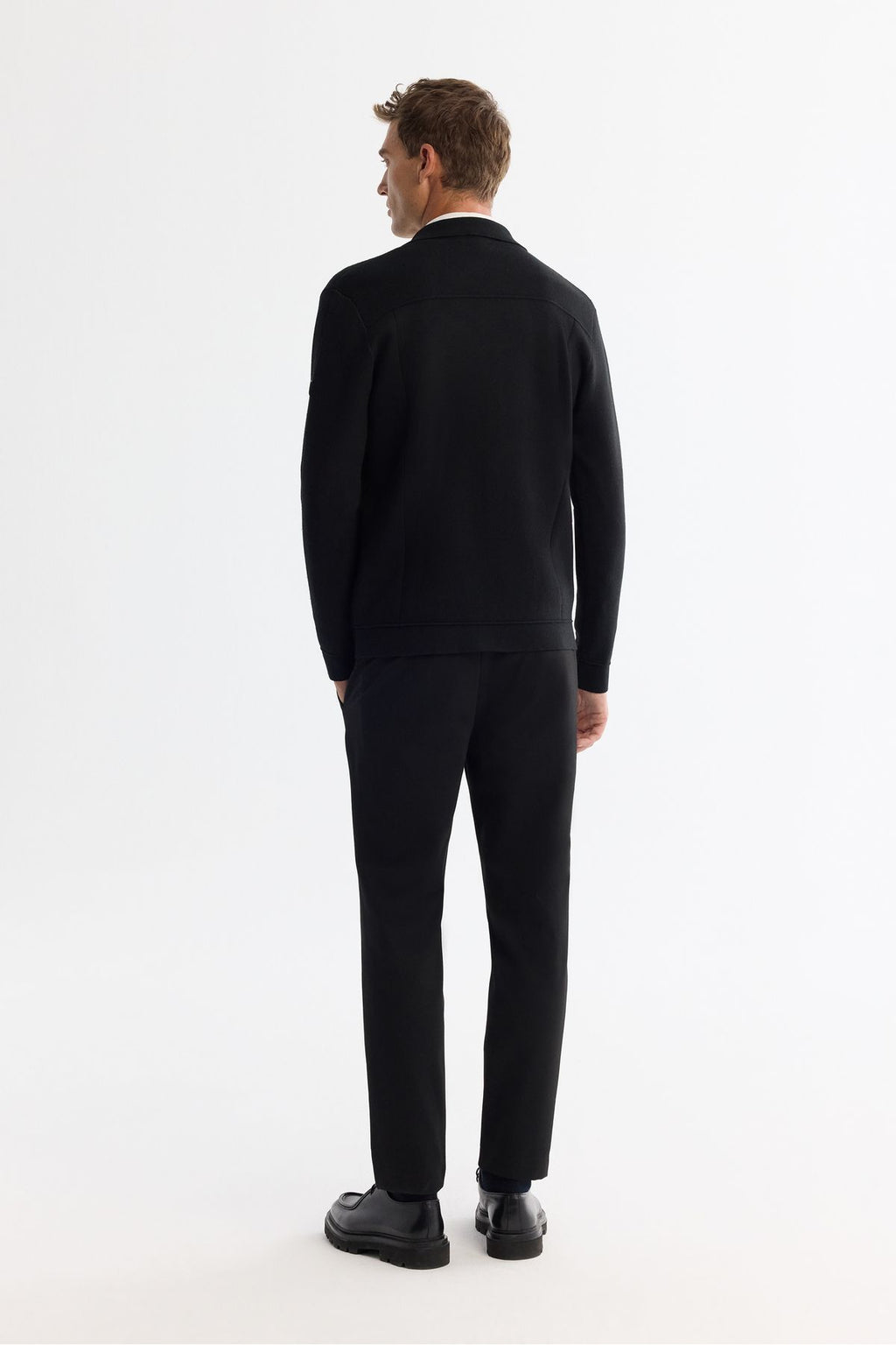 Men's Black Polo Yaka woolen gangbreled knitwear cardigan A42y5141