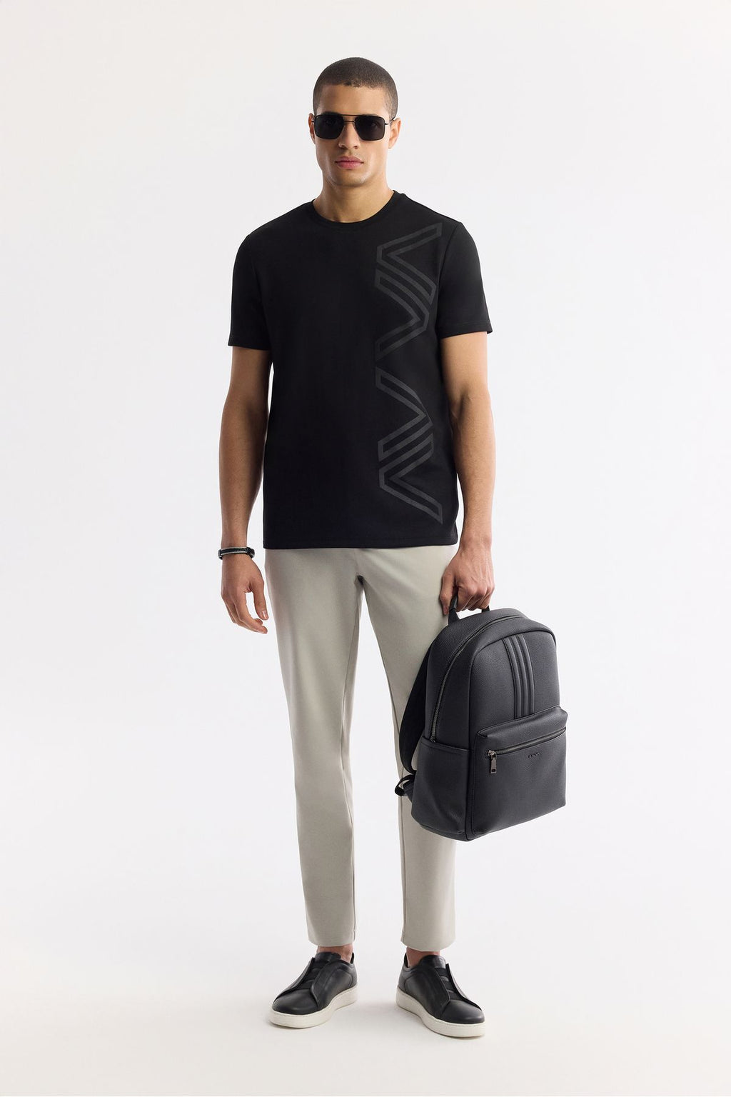 Men's Black Printed Bicycle Collar Interlok T-Shirt A41y1175