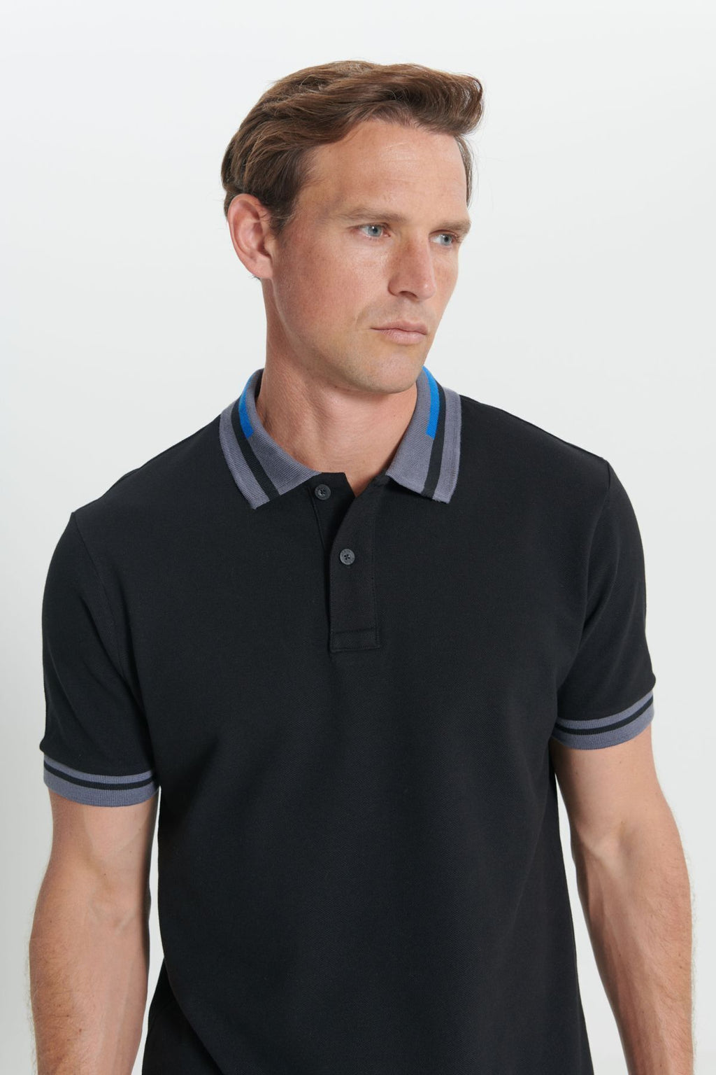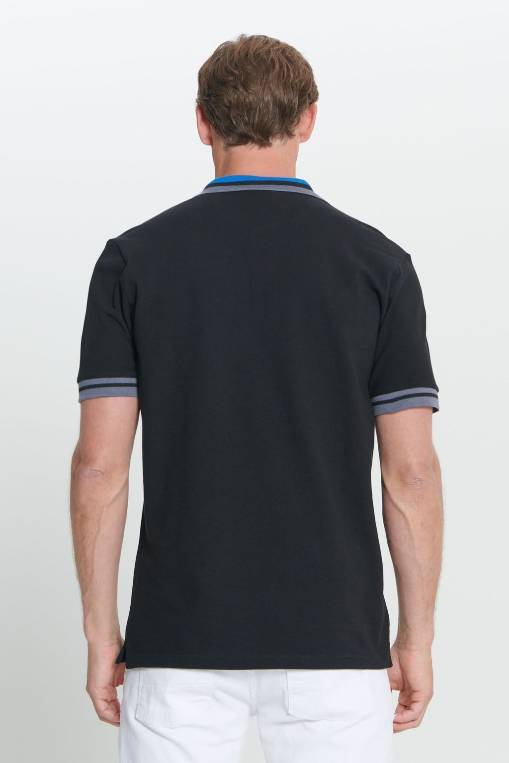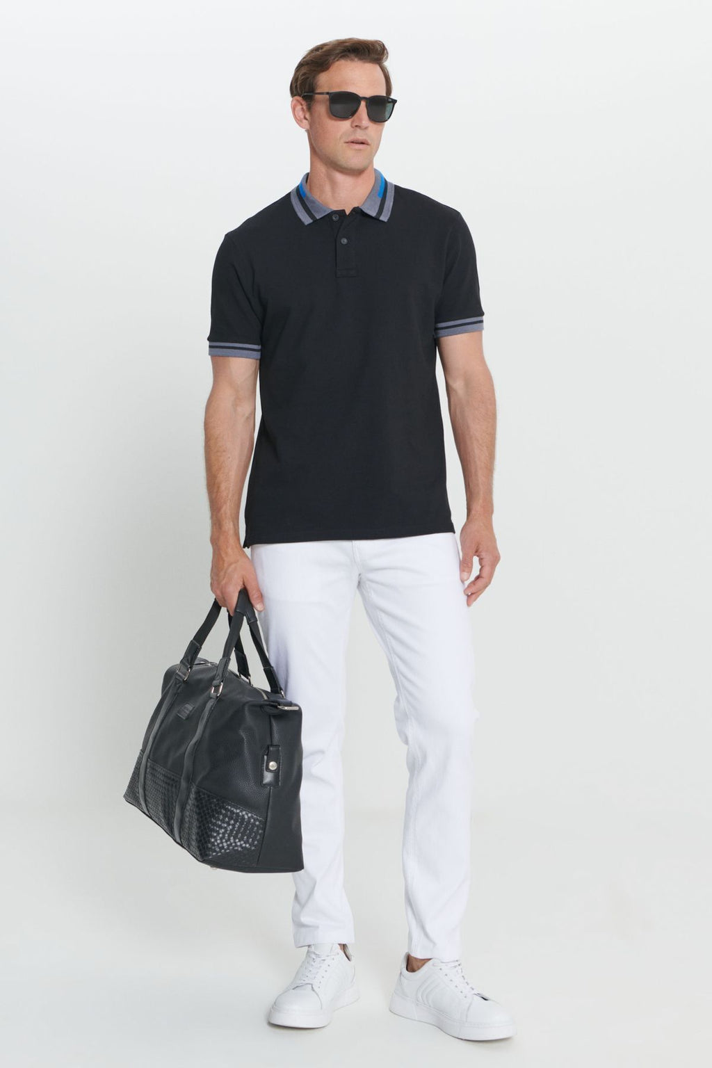 Men's black slim fit narrow cut 100 %cotton Curgered Polo Yaka T -shirt