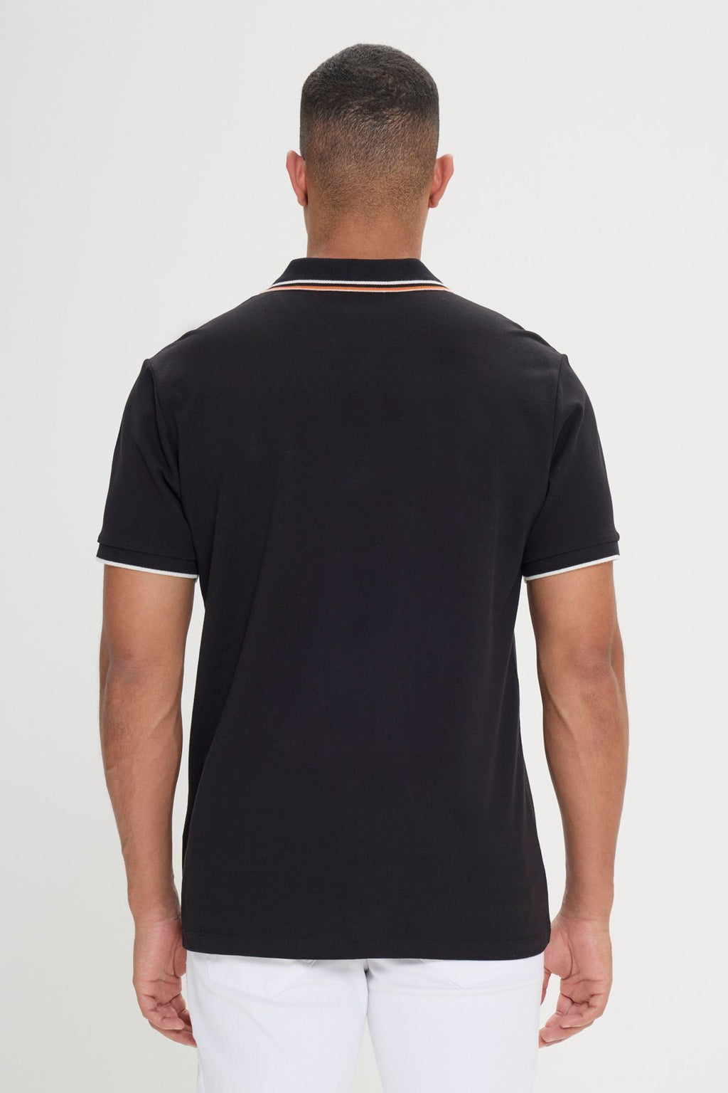 Men's black slim fit narrow cut 100 %cotton Polo collar T -shirt