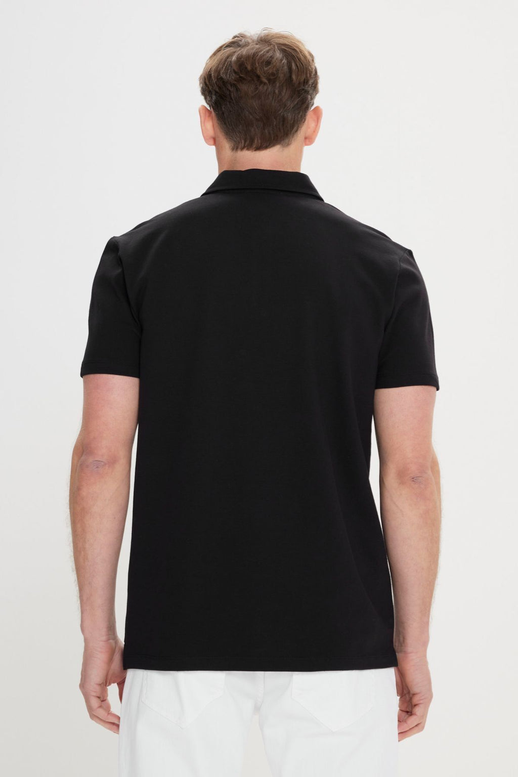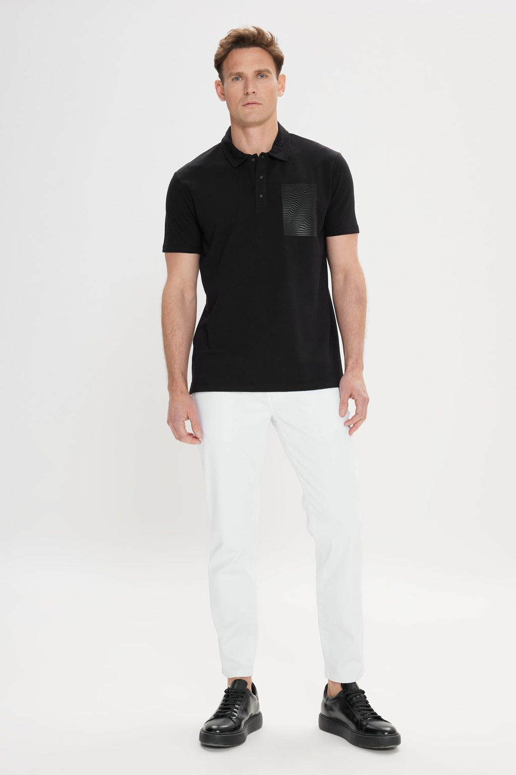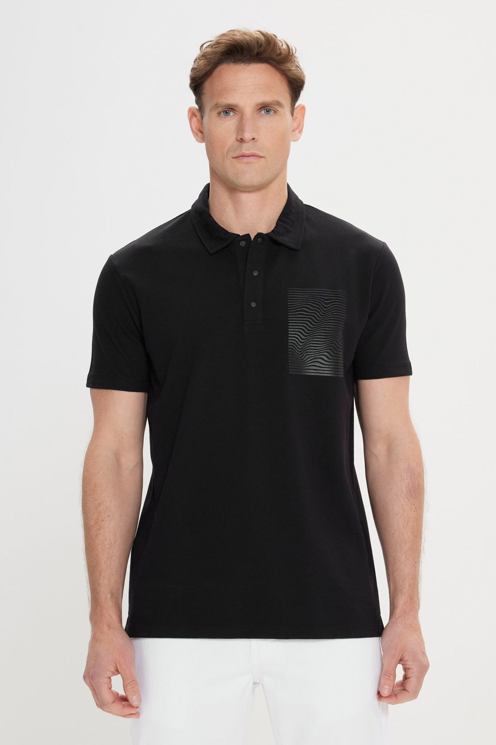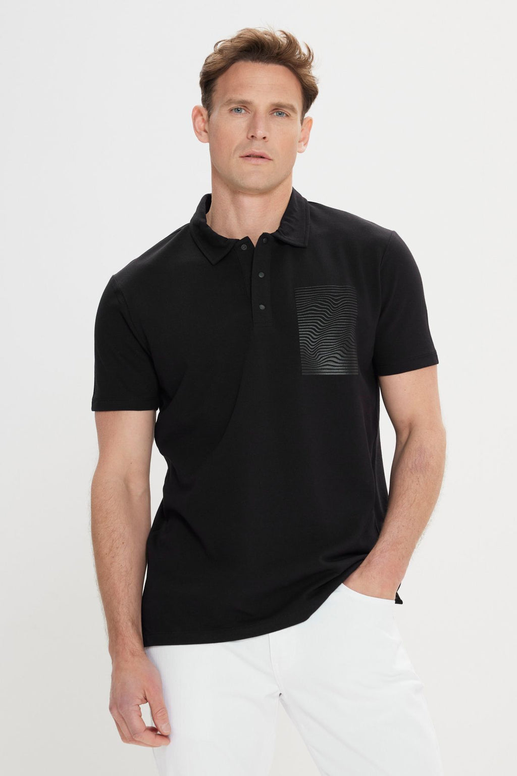 Men's black slim fit narrow cut 100 %cotton printed Polo Yaka T -shirt