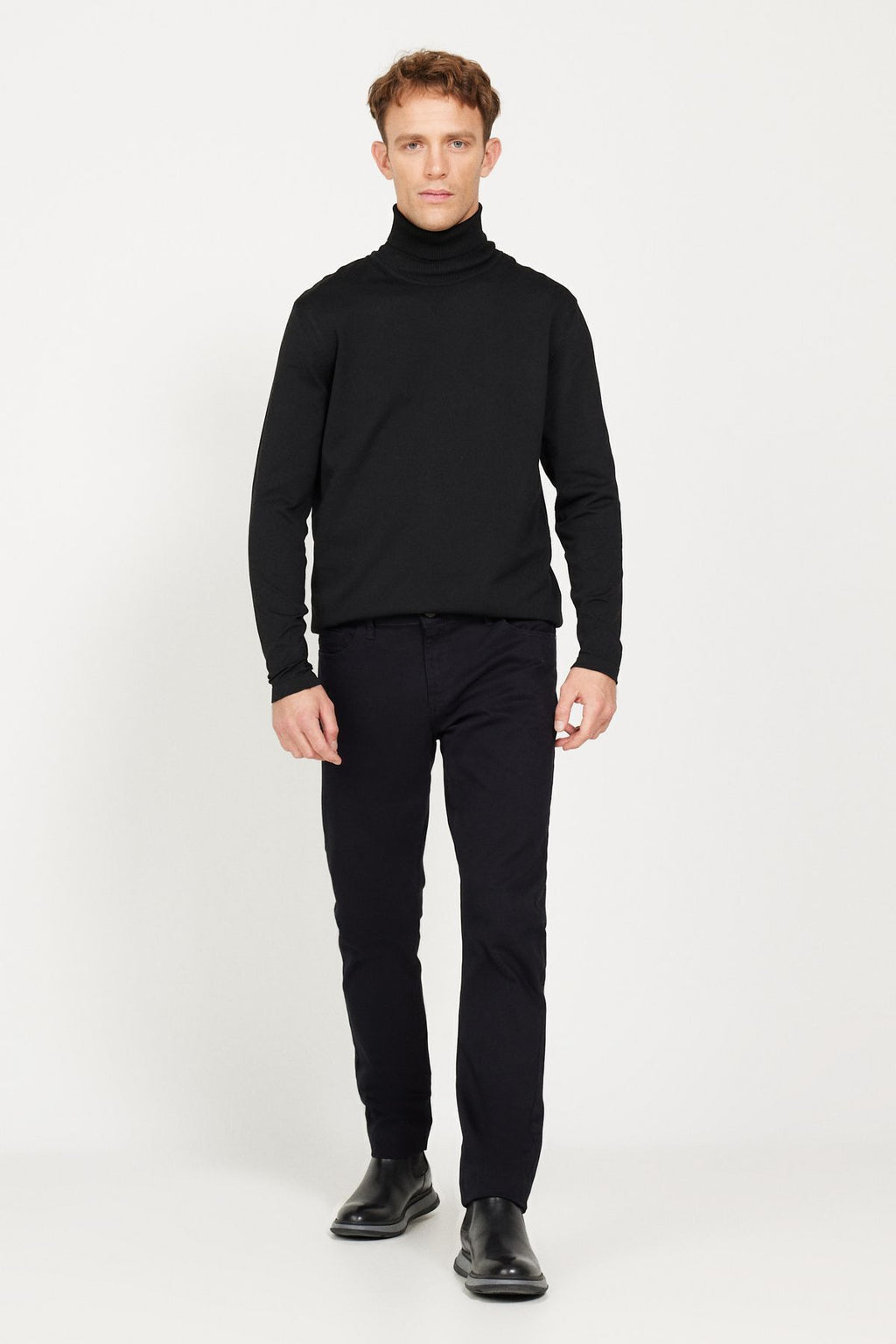 Men's black slim fit narrow cut 5 pocket cotton flexible pants