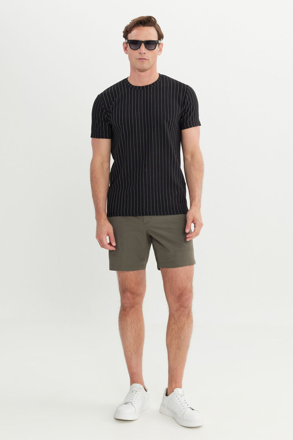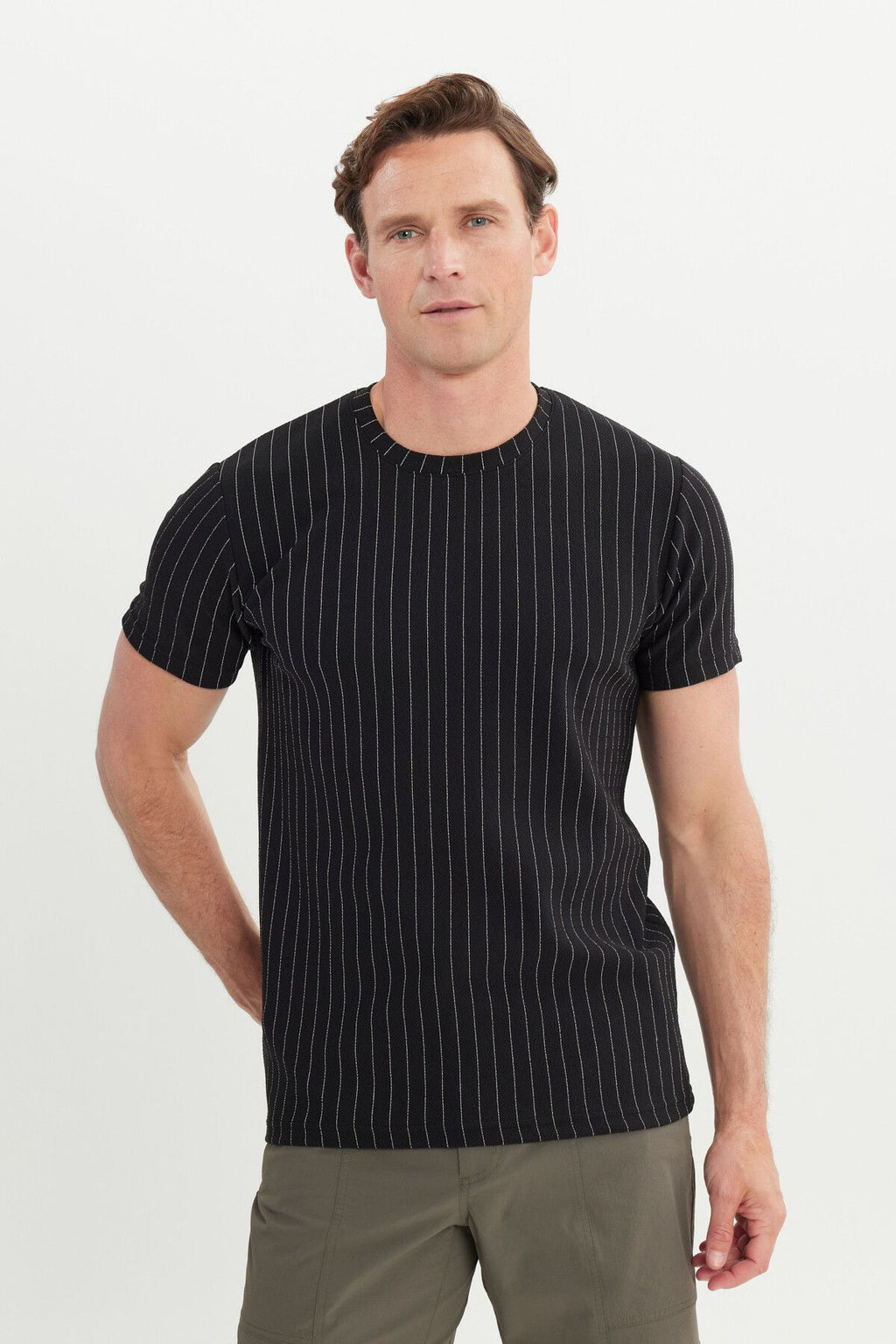 Men's black slim fit narrow cut bicycle collar flexible t -shirt