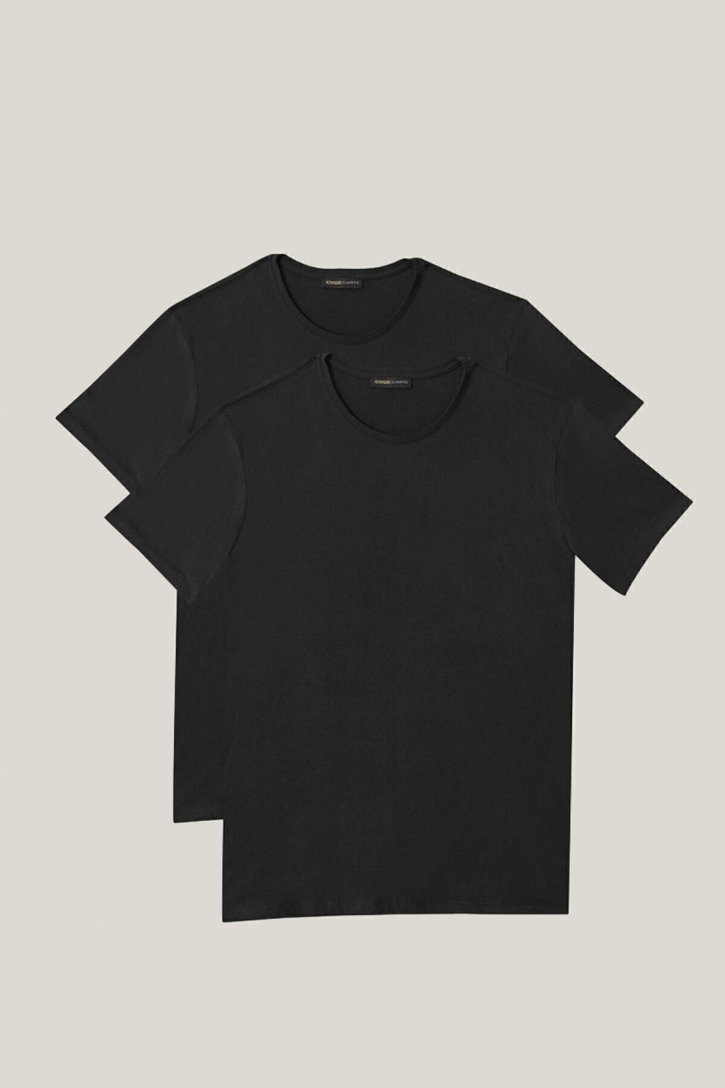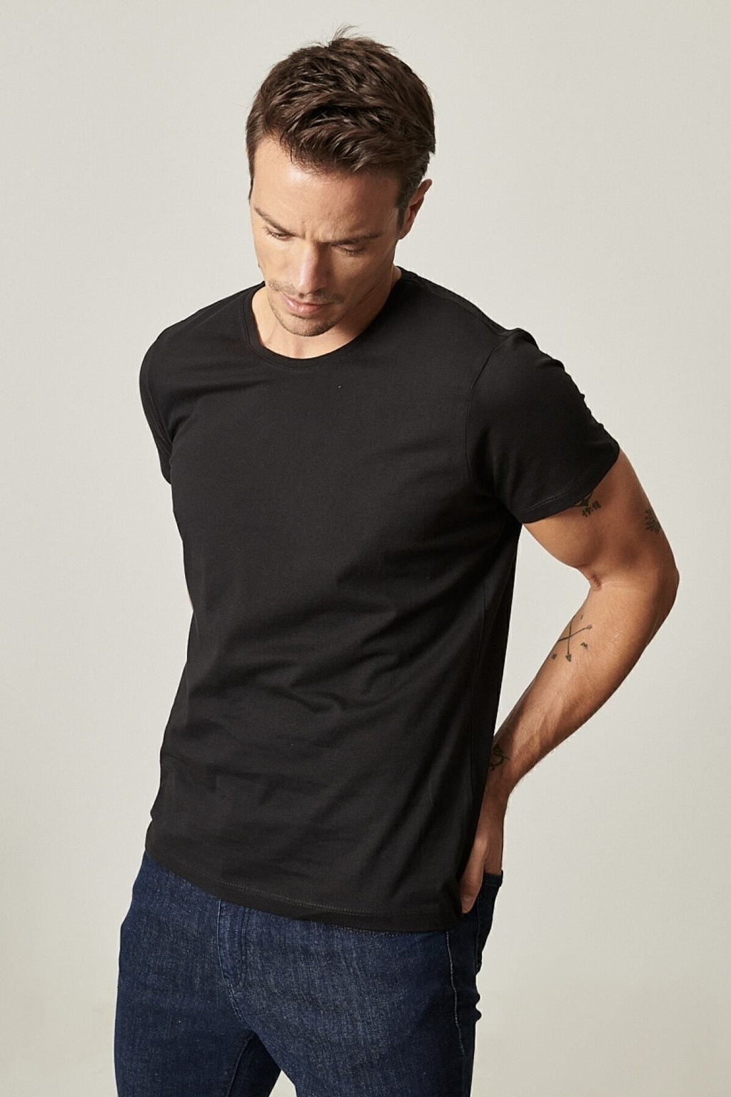 Men's black slim fit narrow cut bike collar 100 %cotton 2 T -shirt package