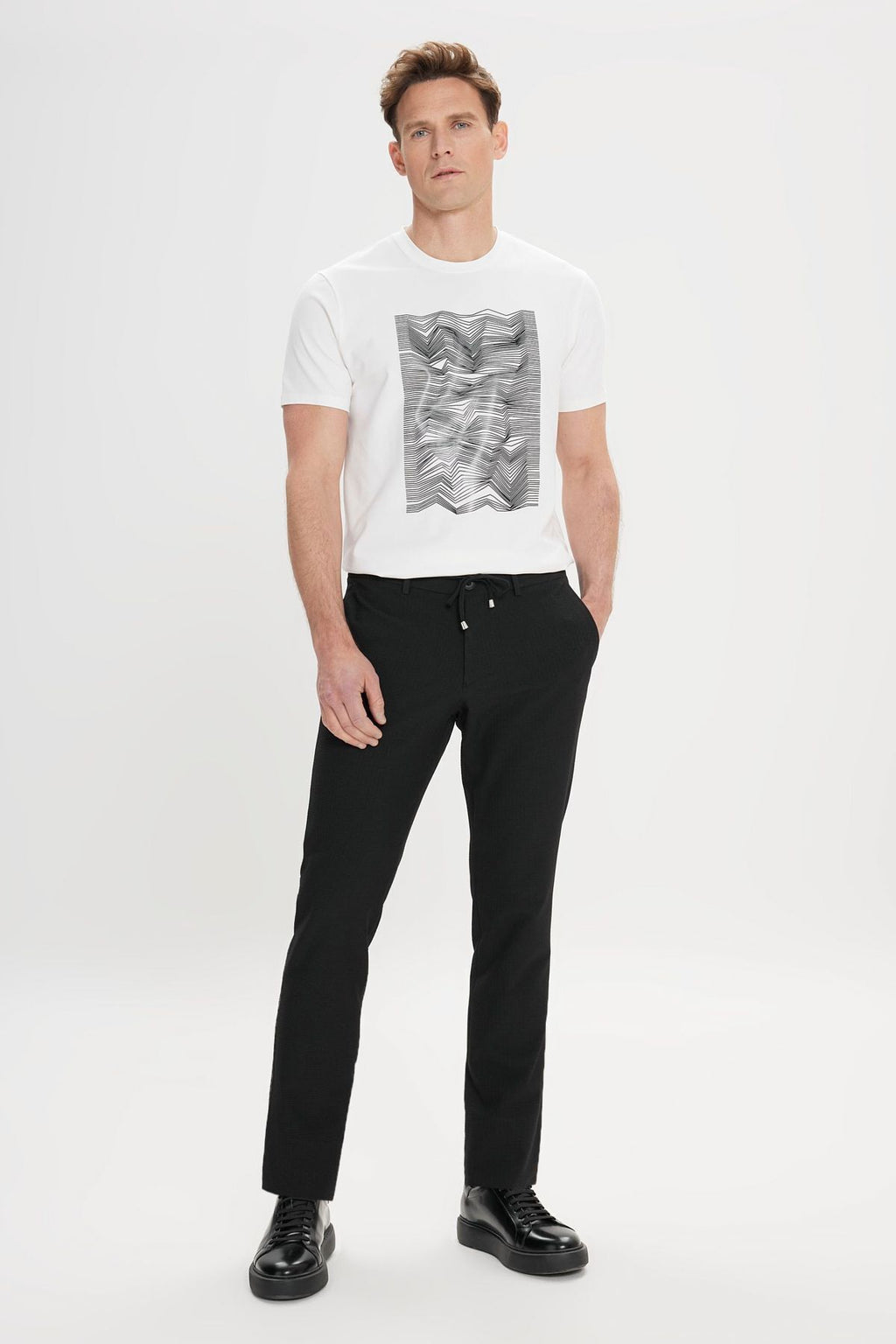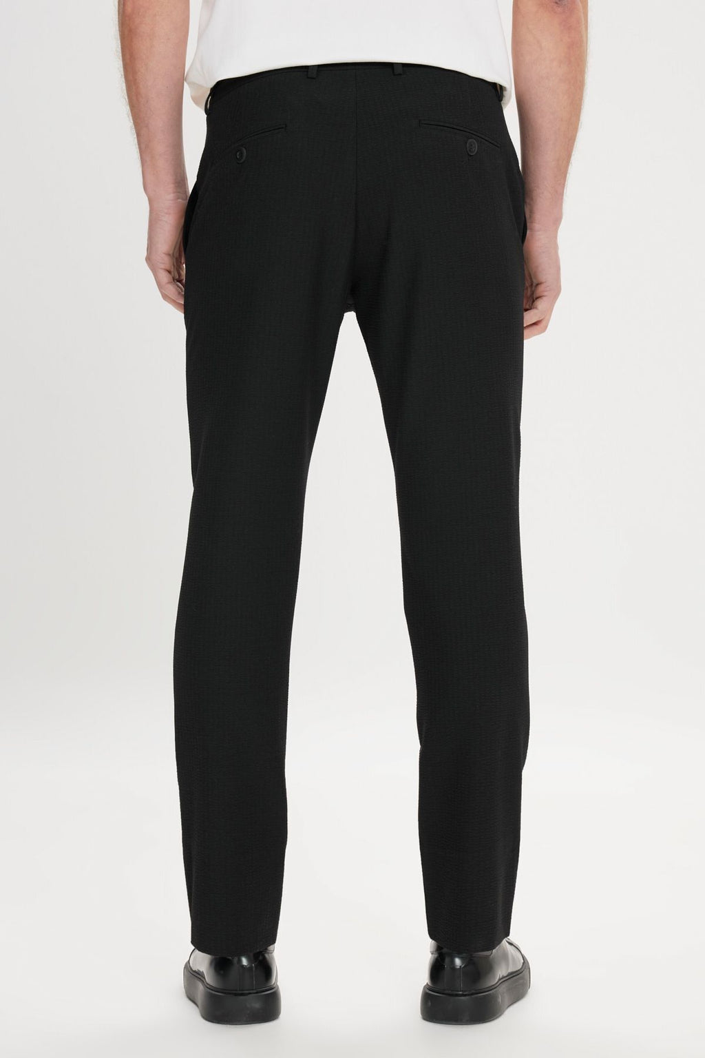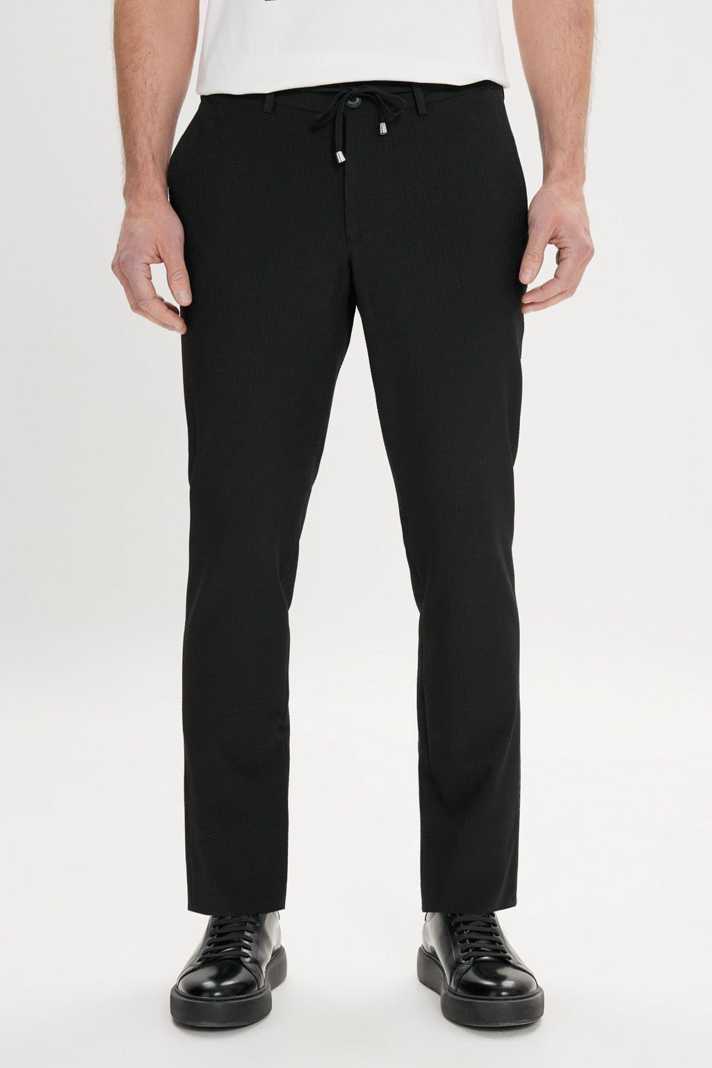 Men's black slim fit narrow -cut waist tied side mobile wafer patterned pants