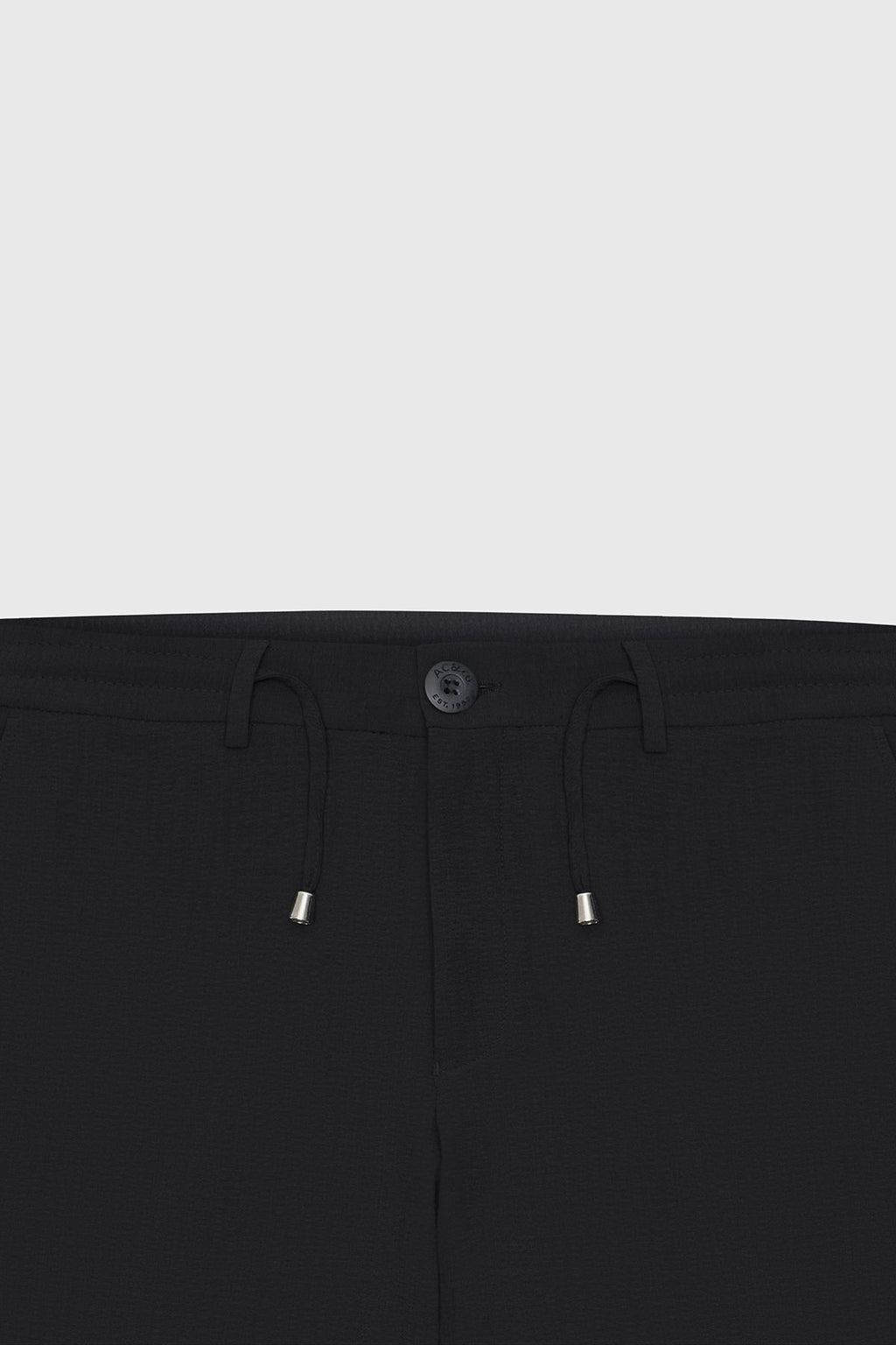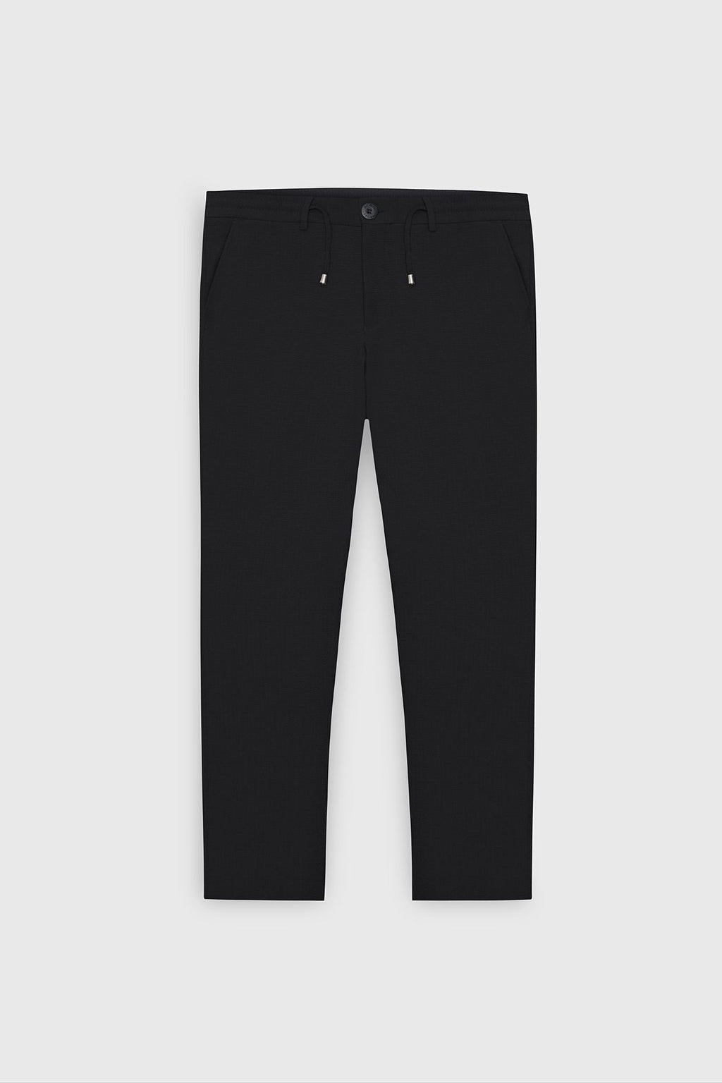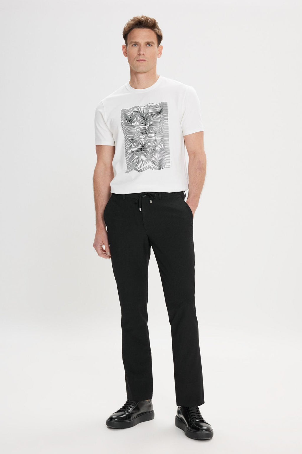 Men's black slim fit narrow -cut waist tied side mobile wafer patterned pants