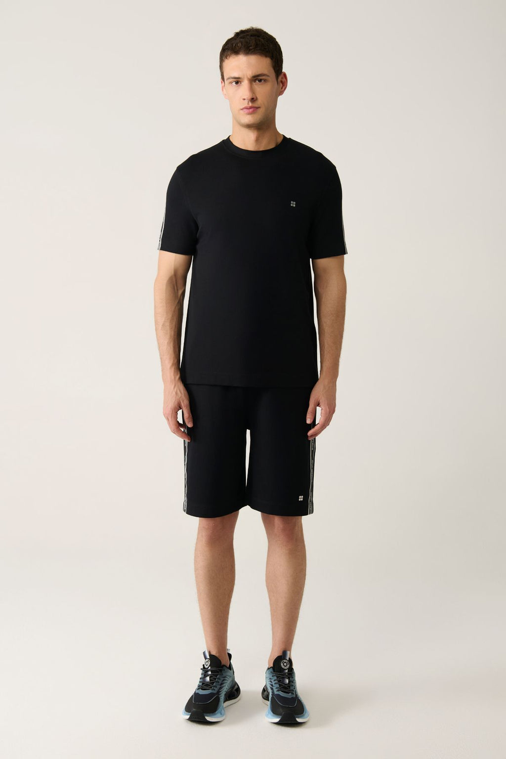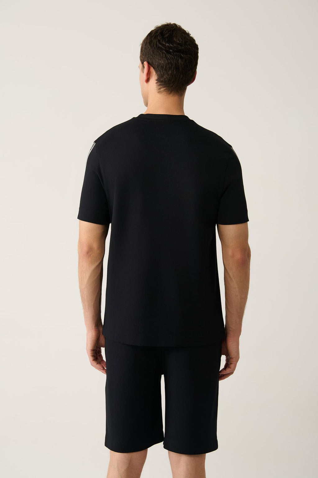 Men's Black Soft Touch Bicycle Collar Printed T-Shirt A41y1327