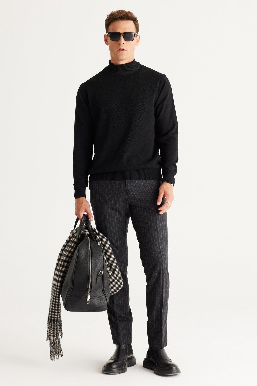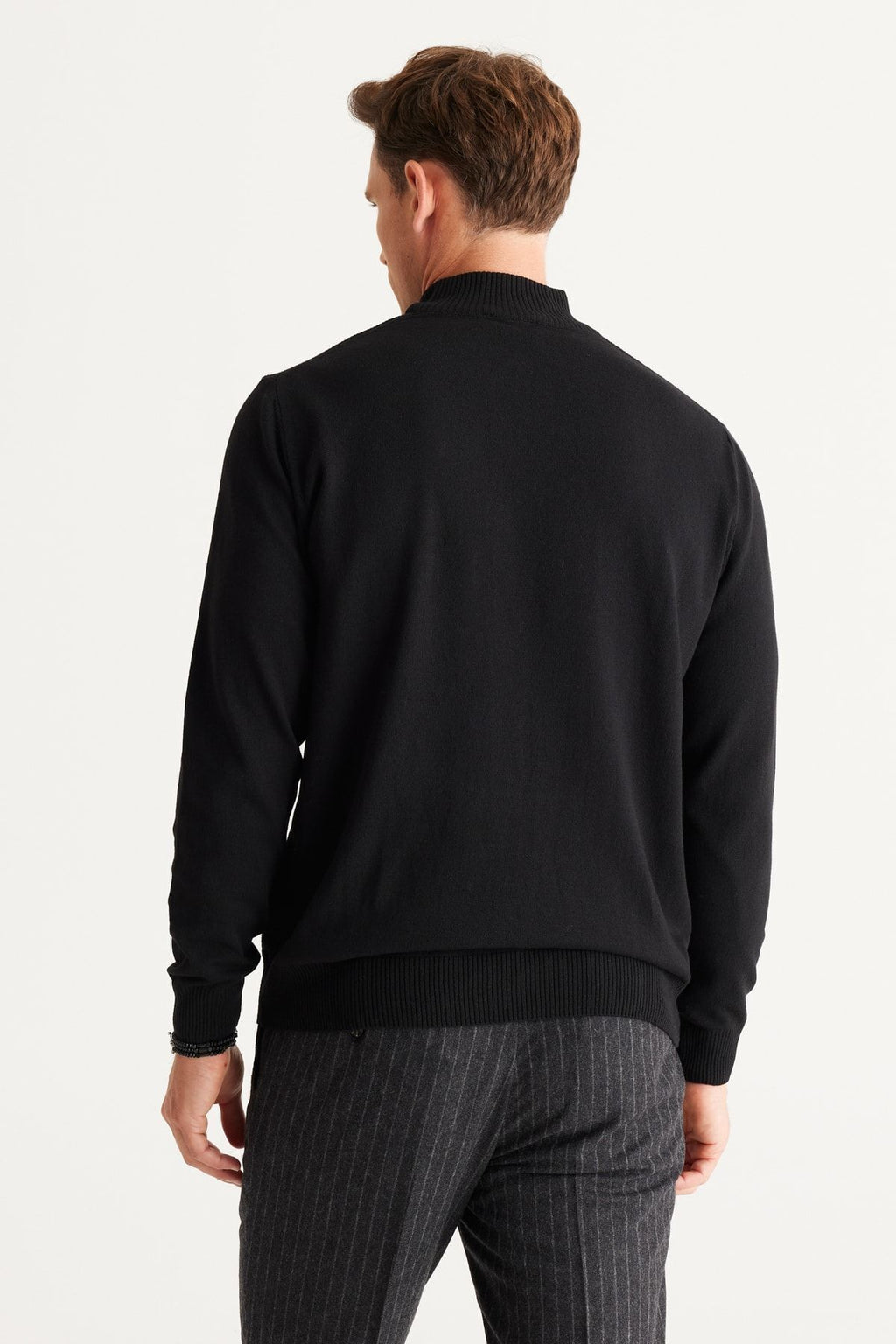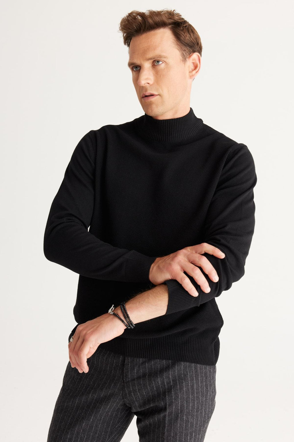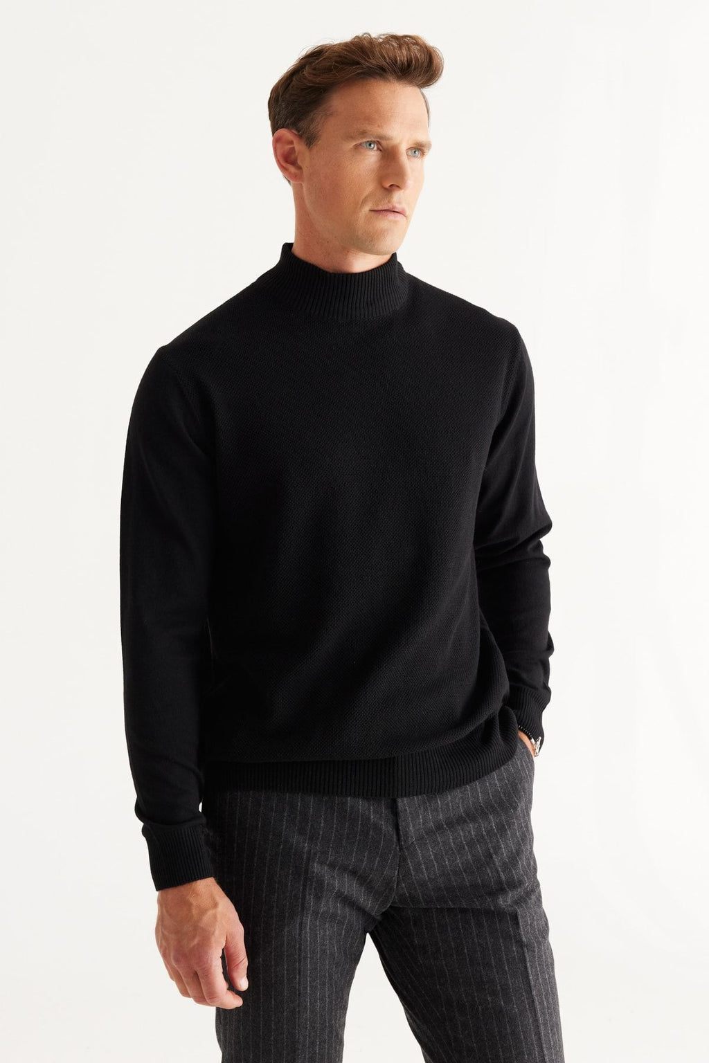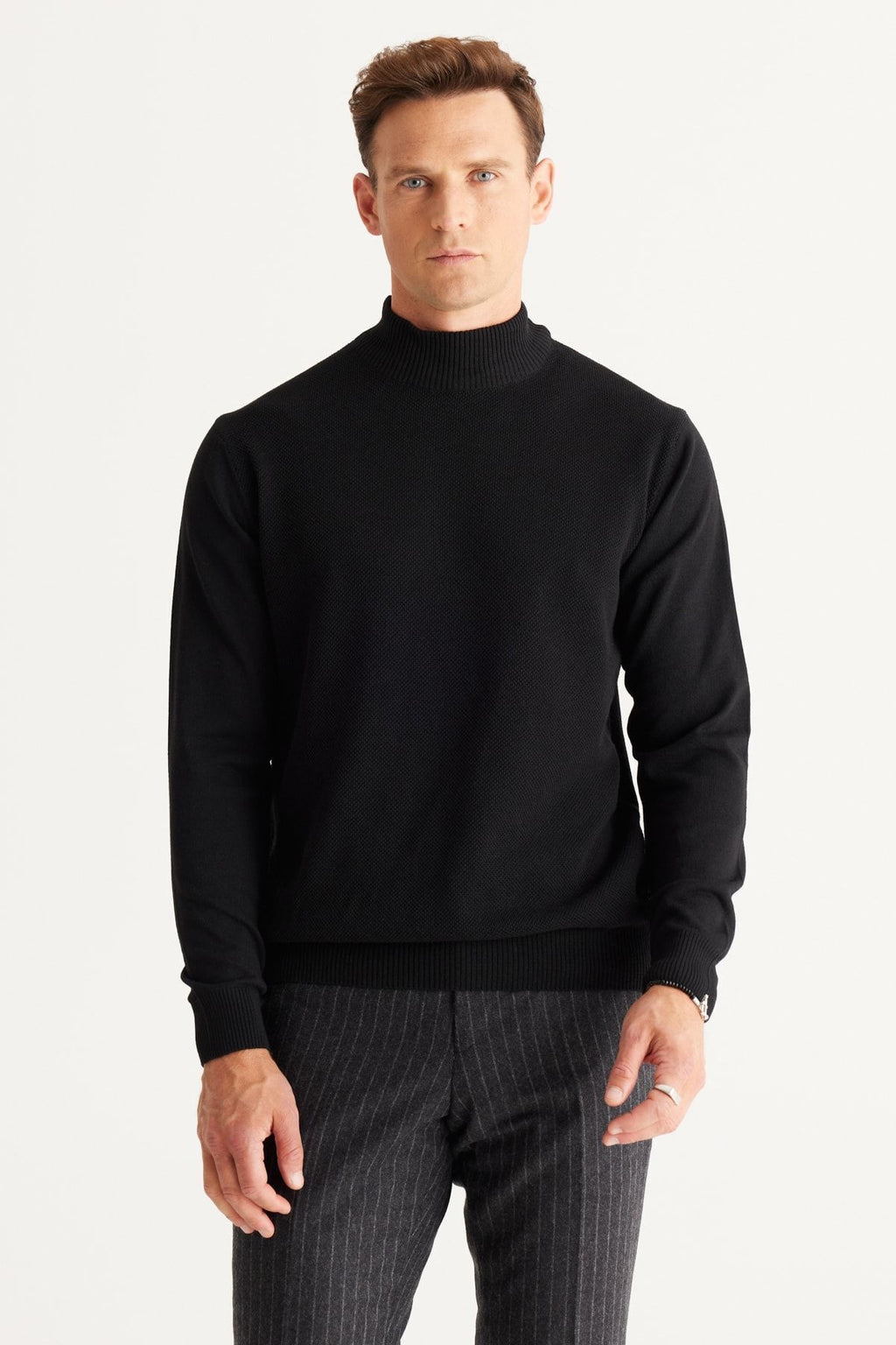Men's Black Standard Fit Normal Cut Half Fisherman Neck Cotton Knitwear Sweater