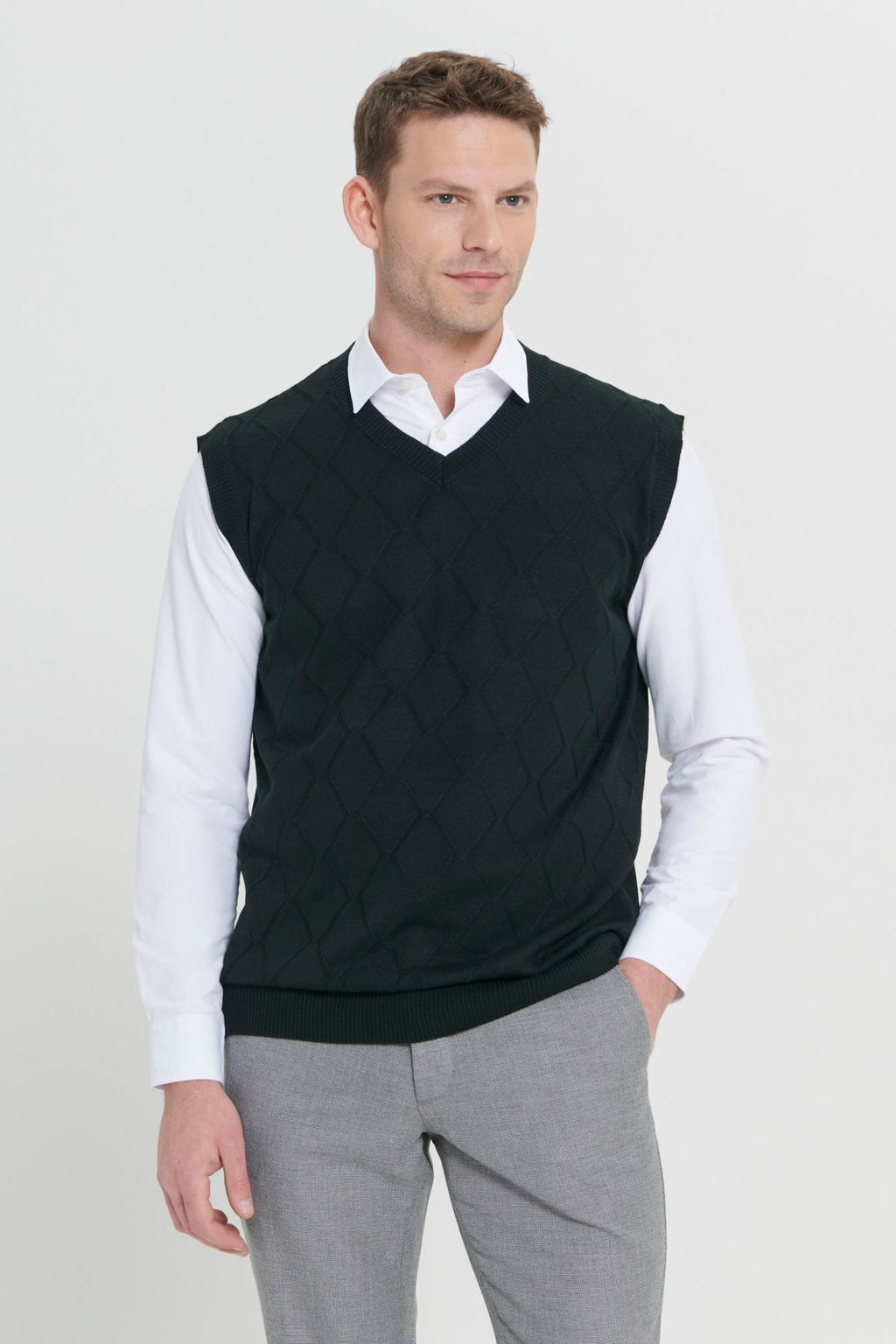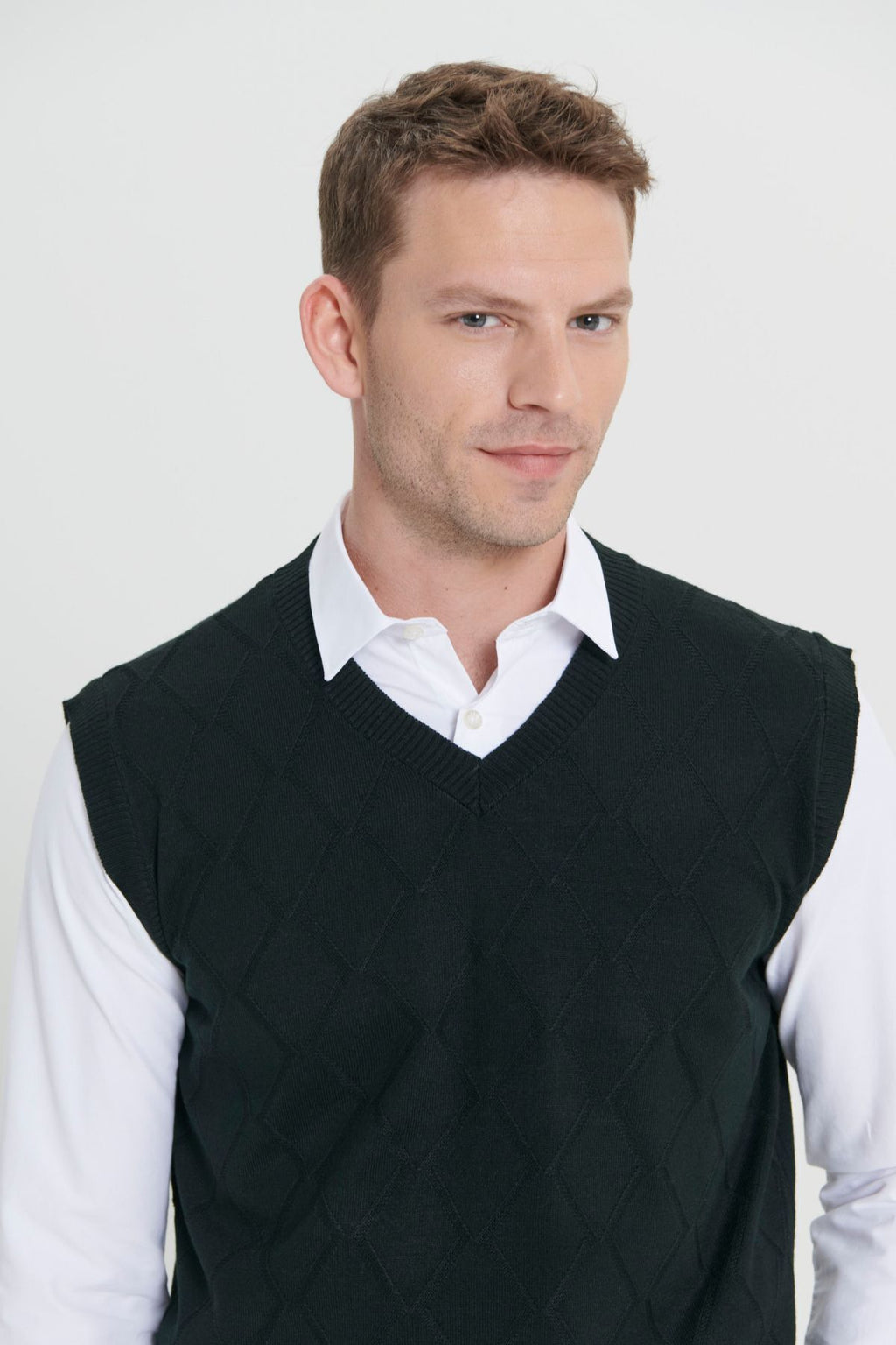 Men's Black Standard Fit Normal Cut V -neck knitwear sweater
