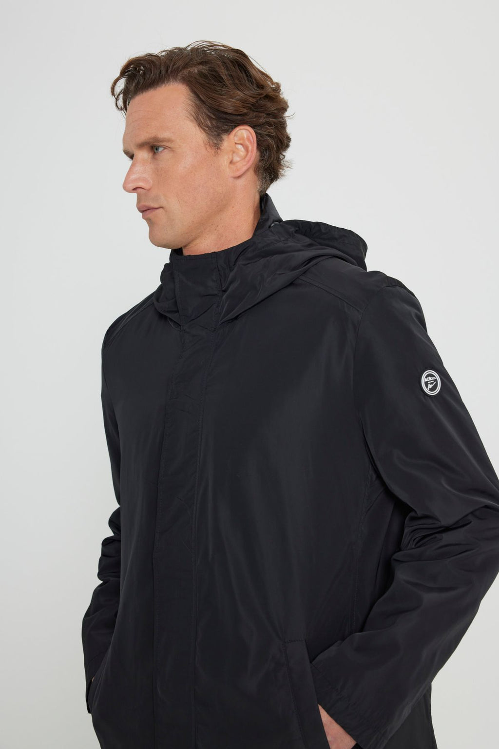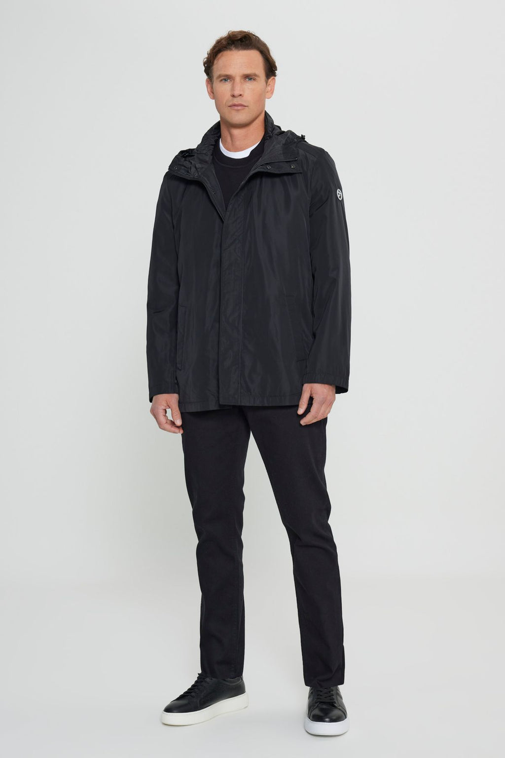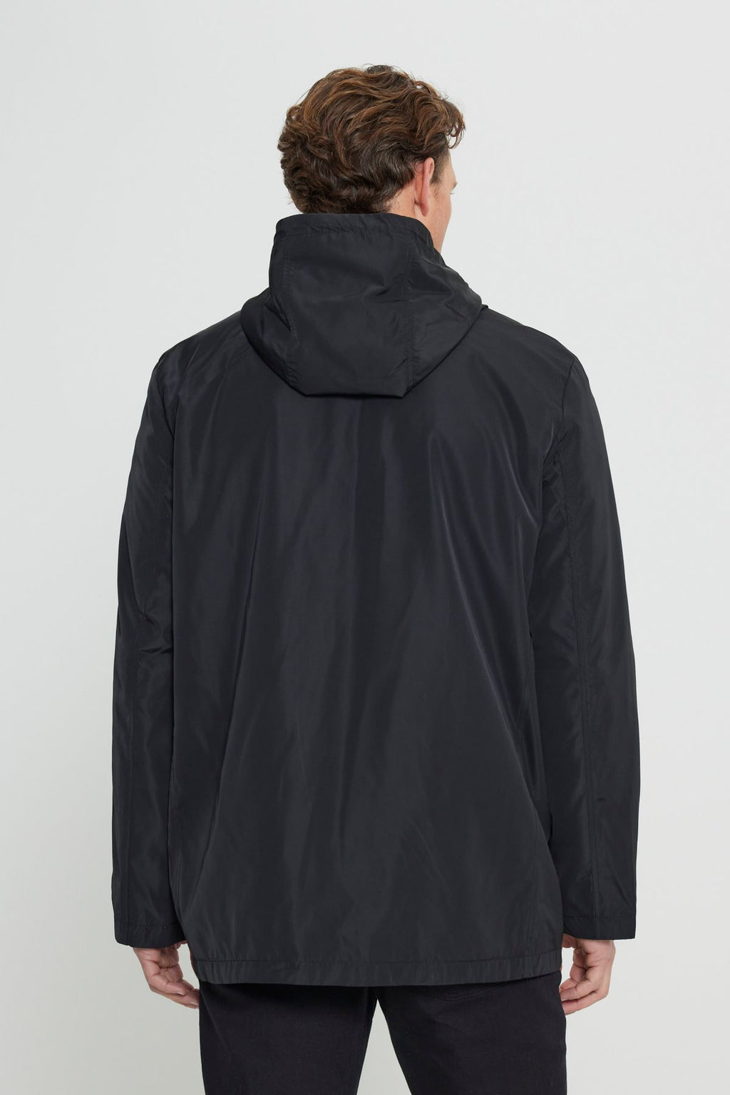 Men's Black Standard Fit Normal Cutter Windproof Hooded Red Neck Coat Trench coat