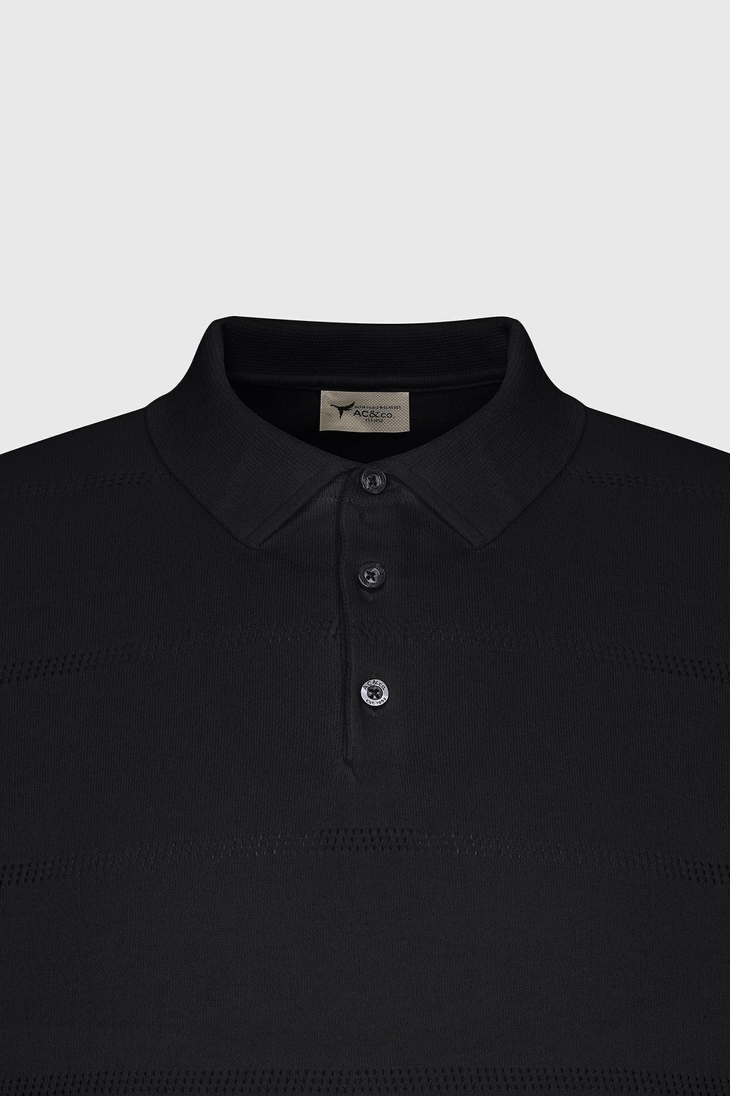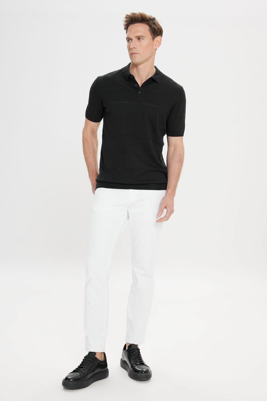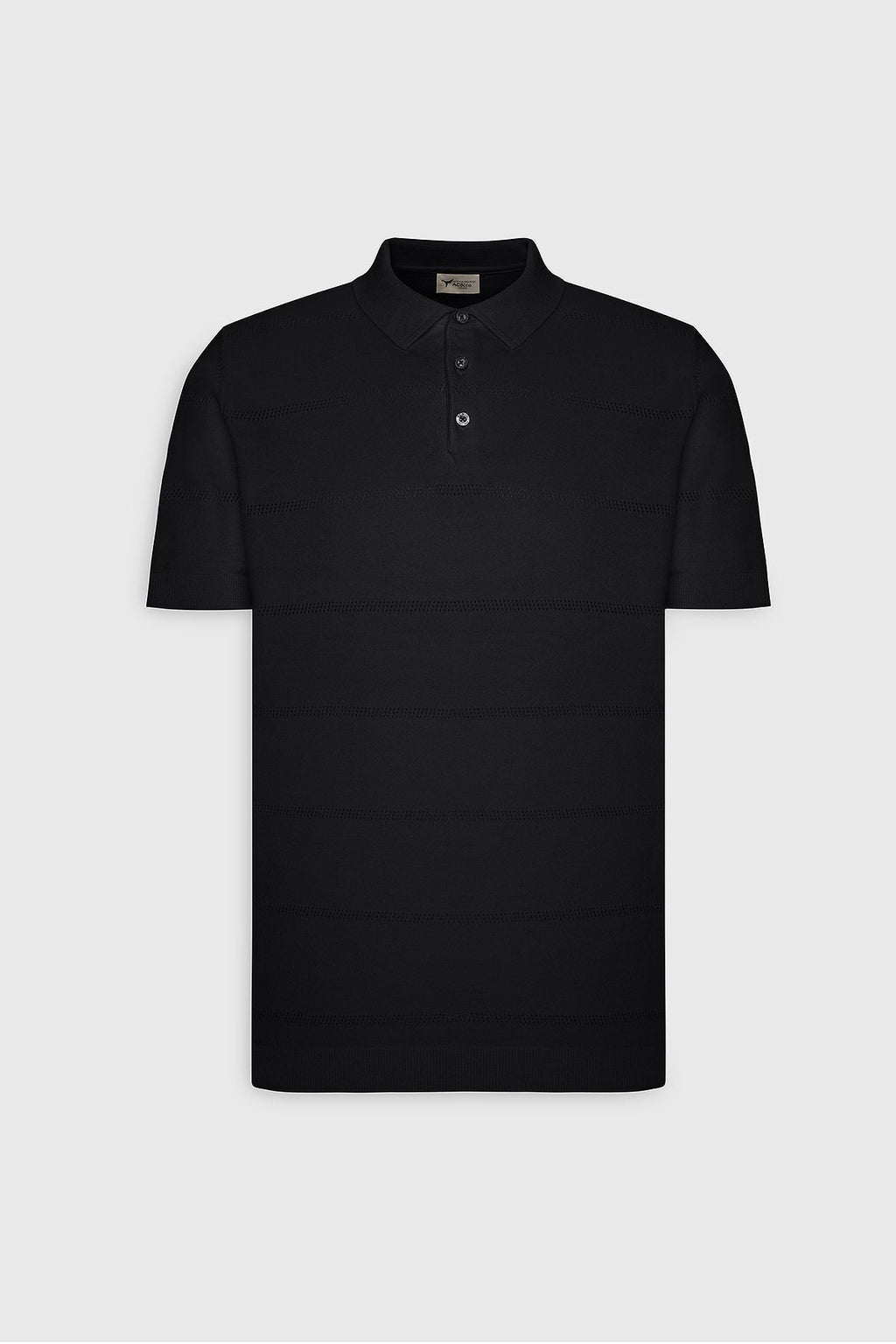 Men's Black Standard Fit Normal Cutting 100 %Cotton Jacquari Polo Yaka Triko T -shirt