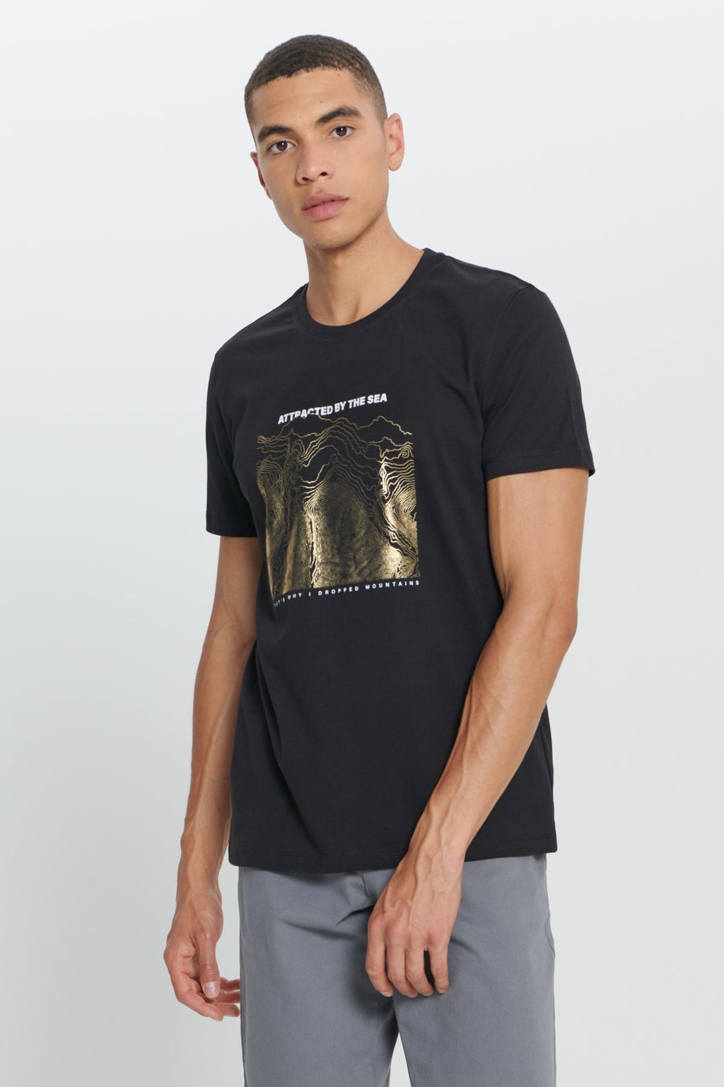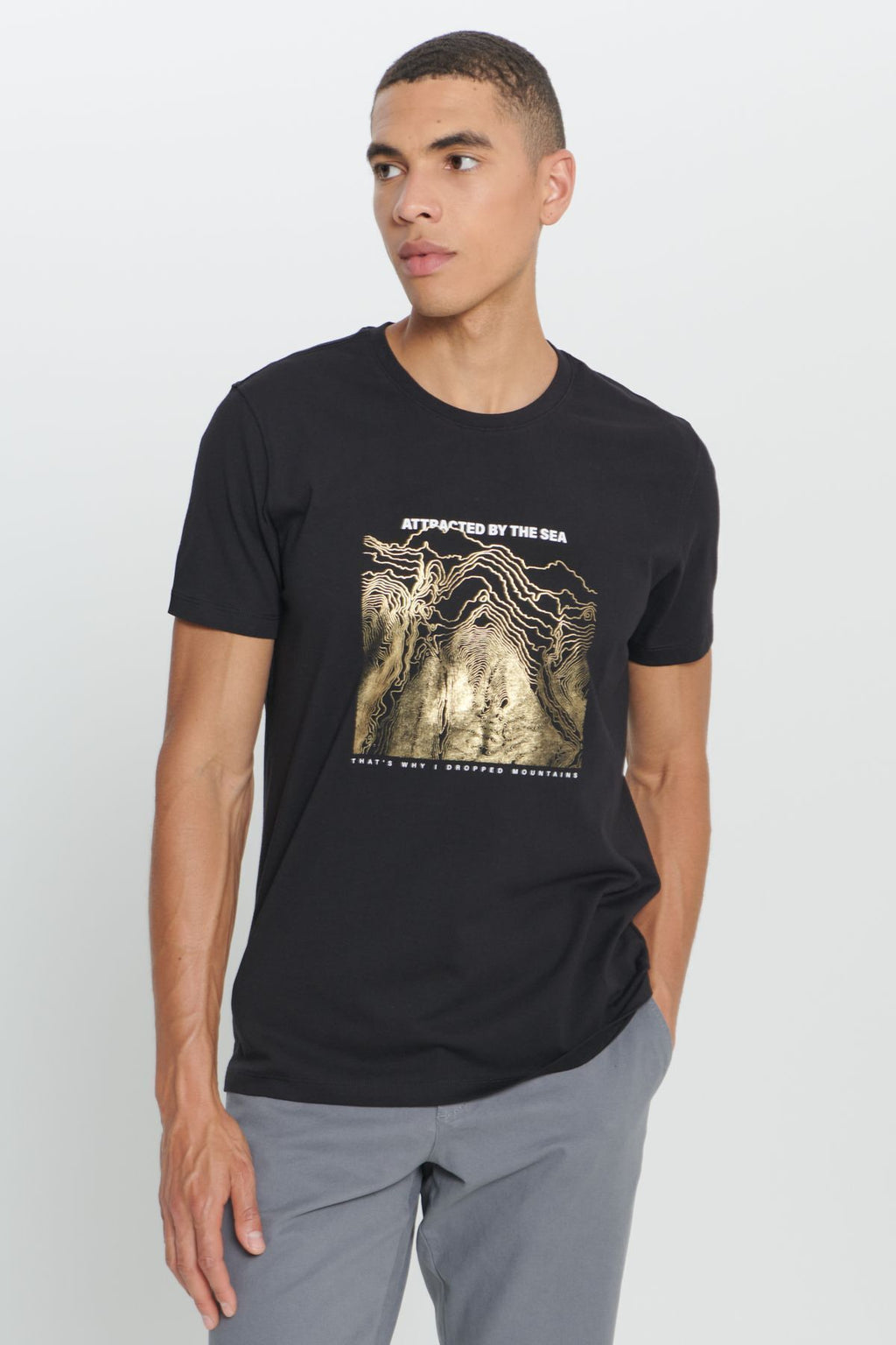 Men's Black Standard Fit Normal Cutting 100 %Cotton Printed Bicycle T -shirt