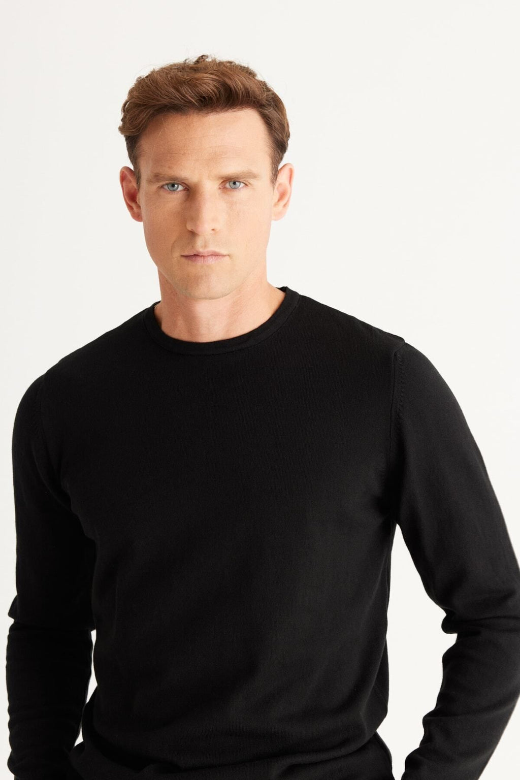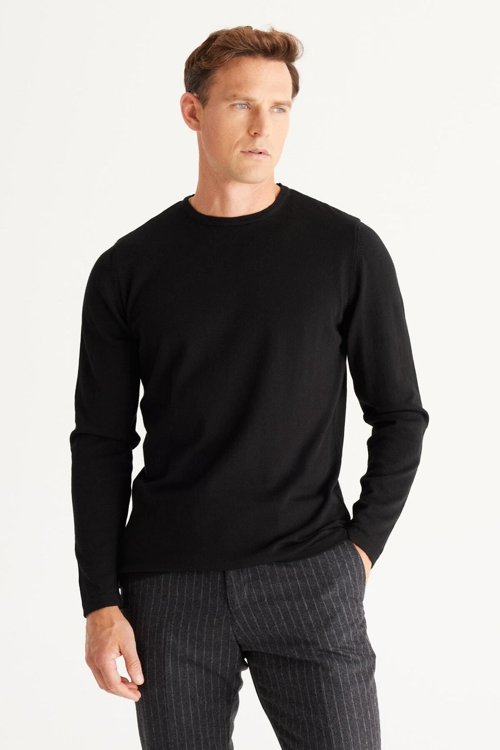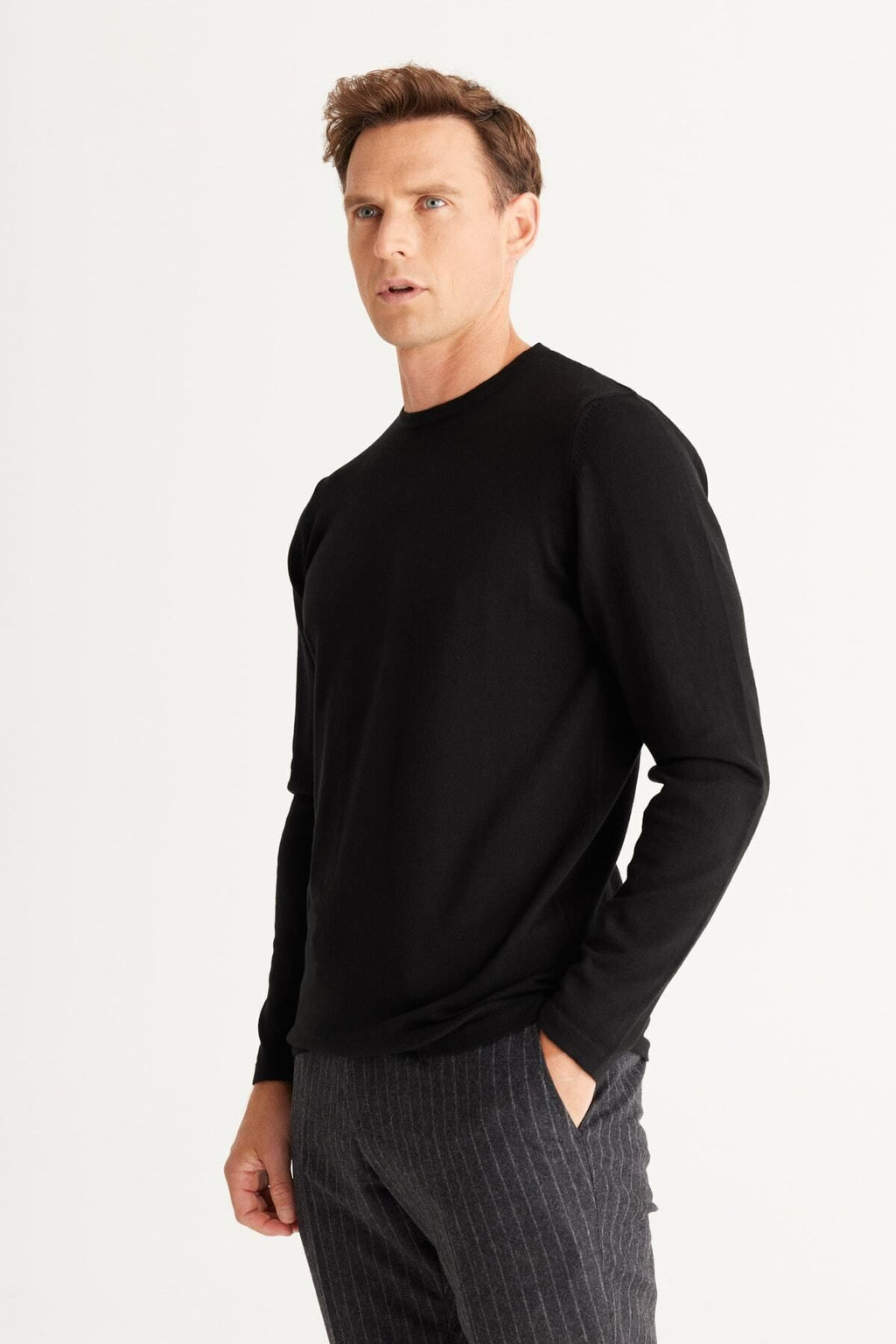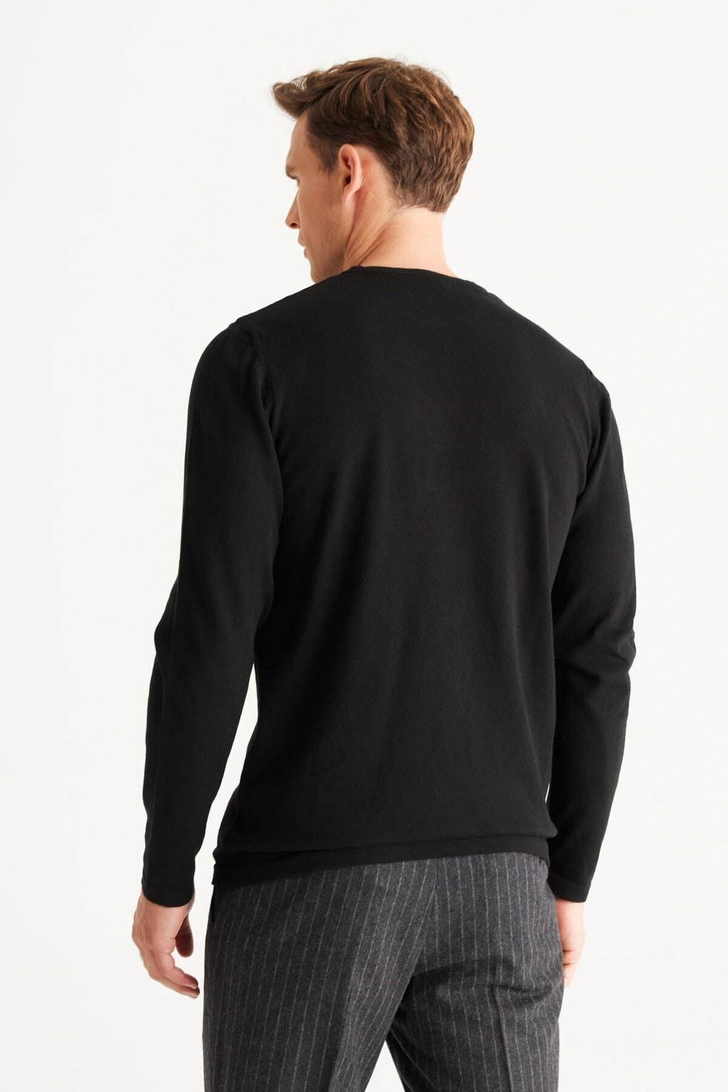 Men's Black Standard Fit Normal Cutting Hot Bike Bike Knitwear Sweater