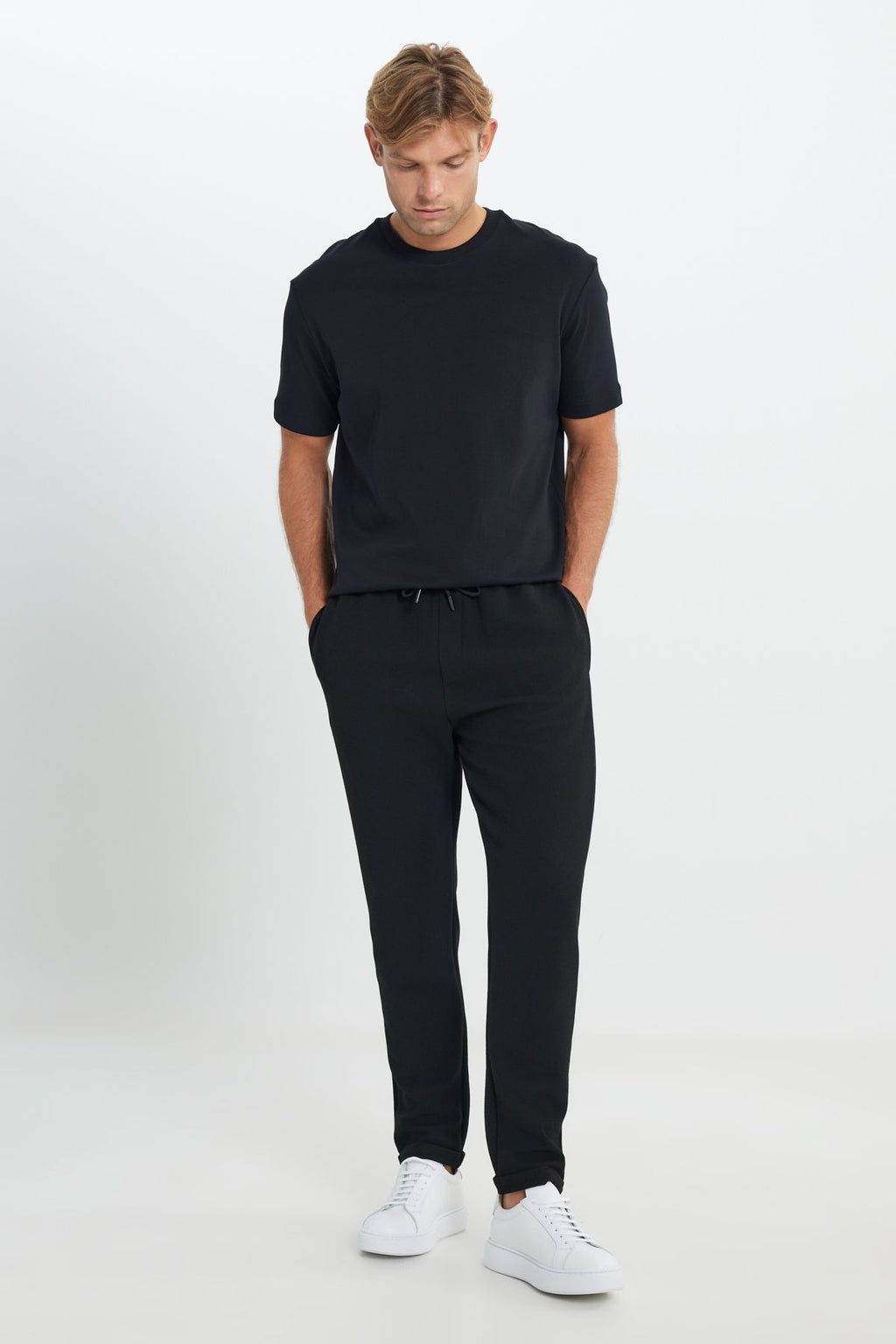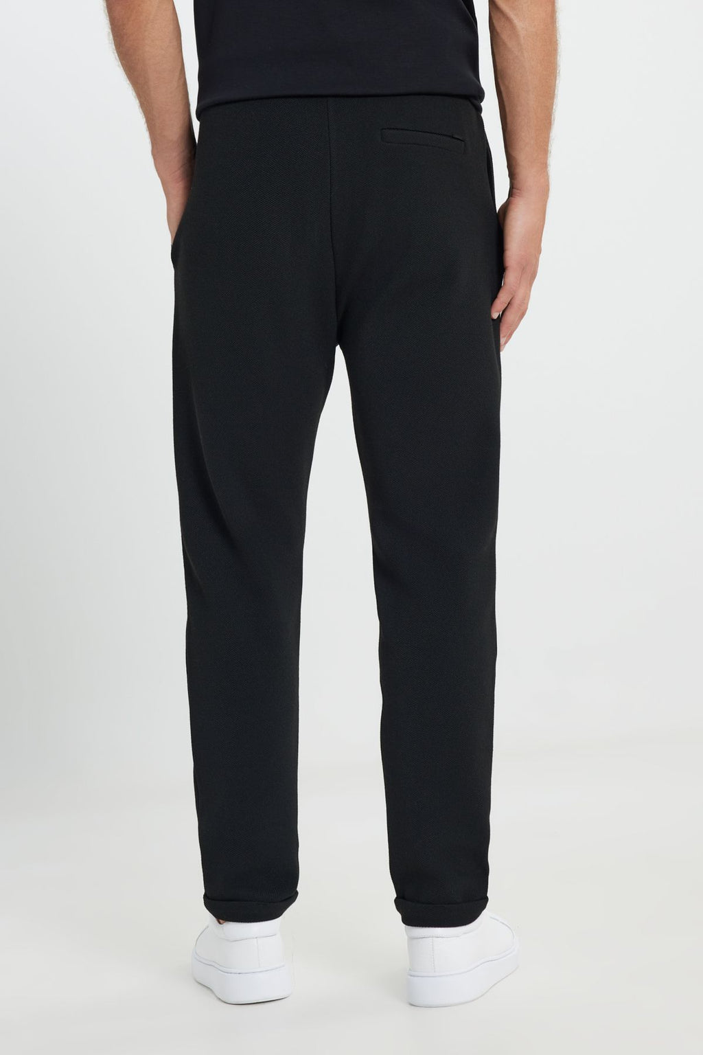 Men's Black Standard Fit Normal Cutting Pocket Flexible Knitting Pants