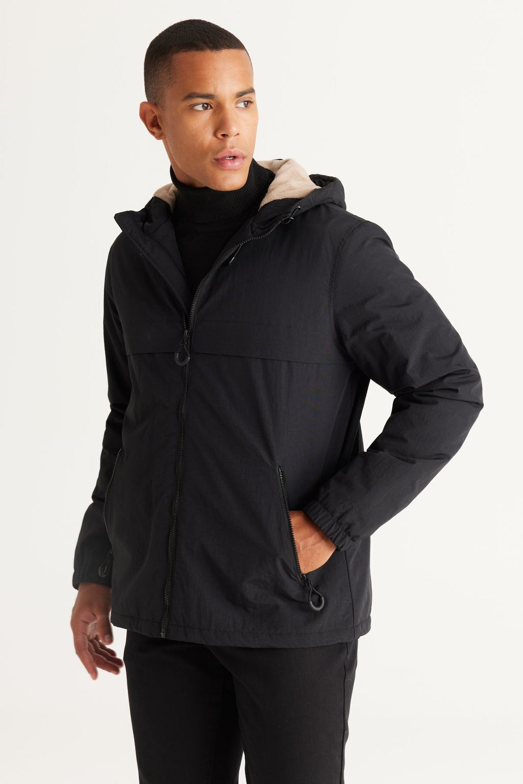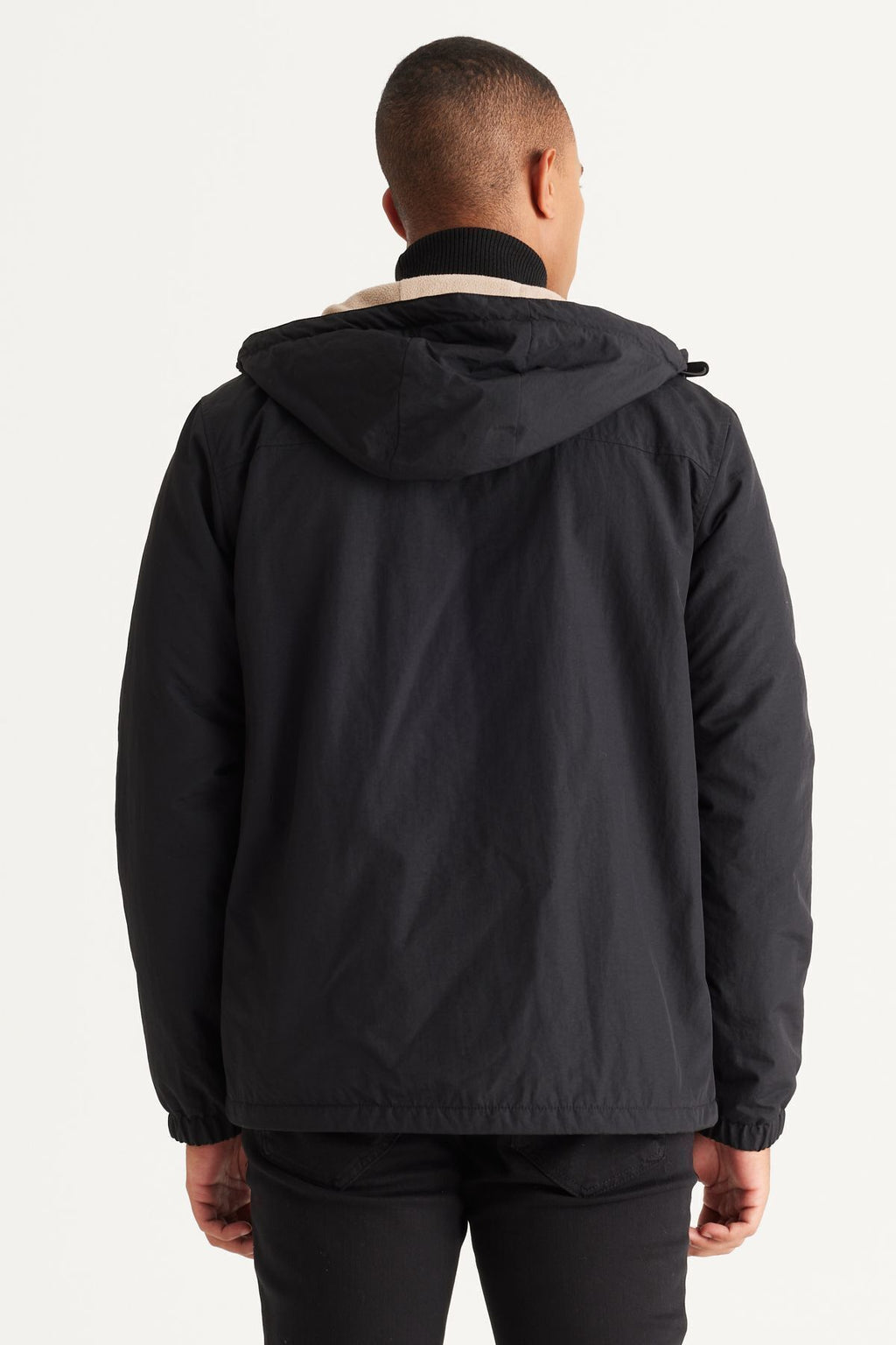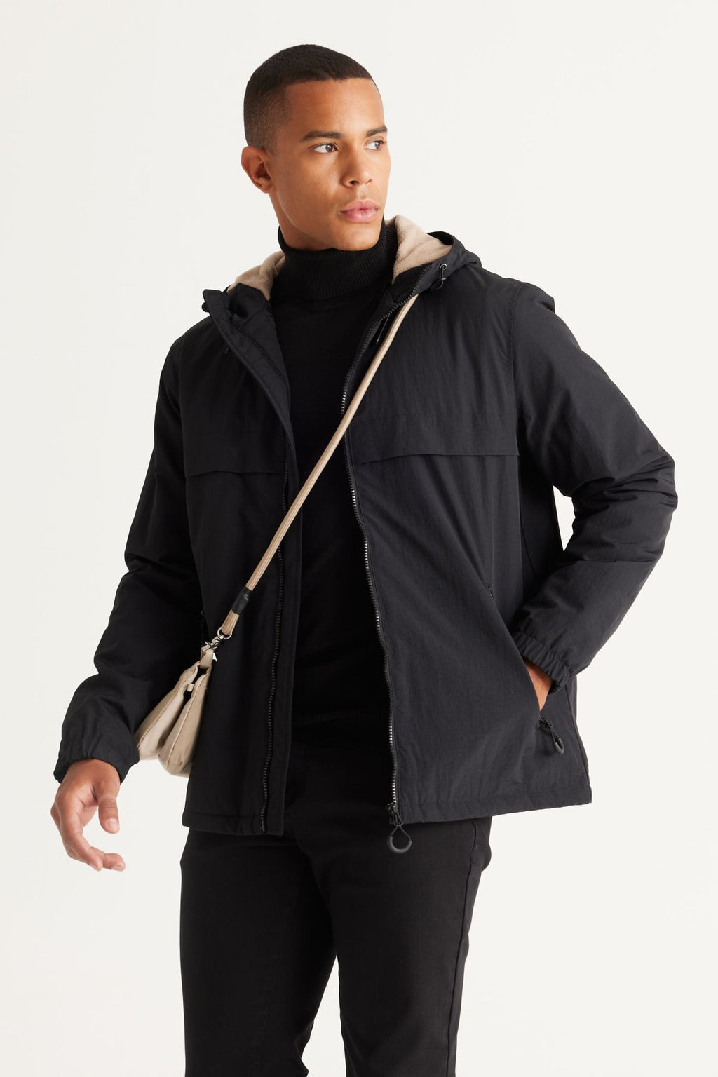 Men's Black Standard Fit Normal Normal Cut Hooded Side Pocket Coat