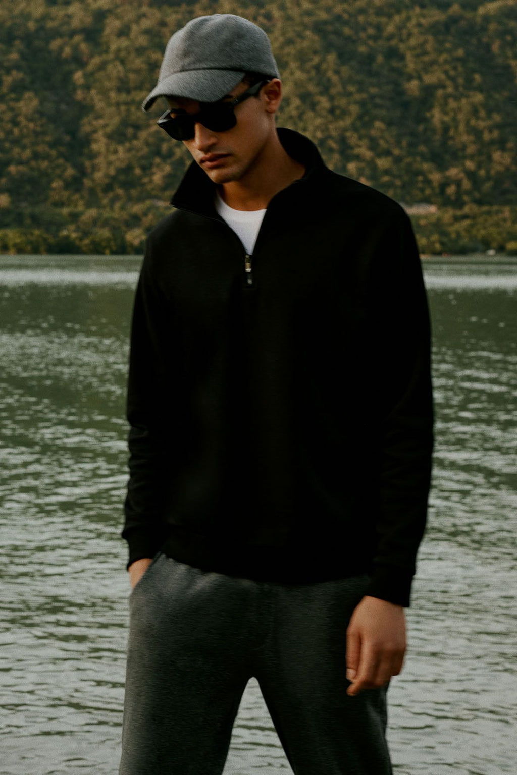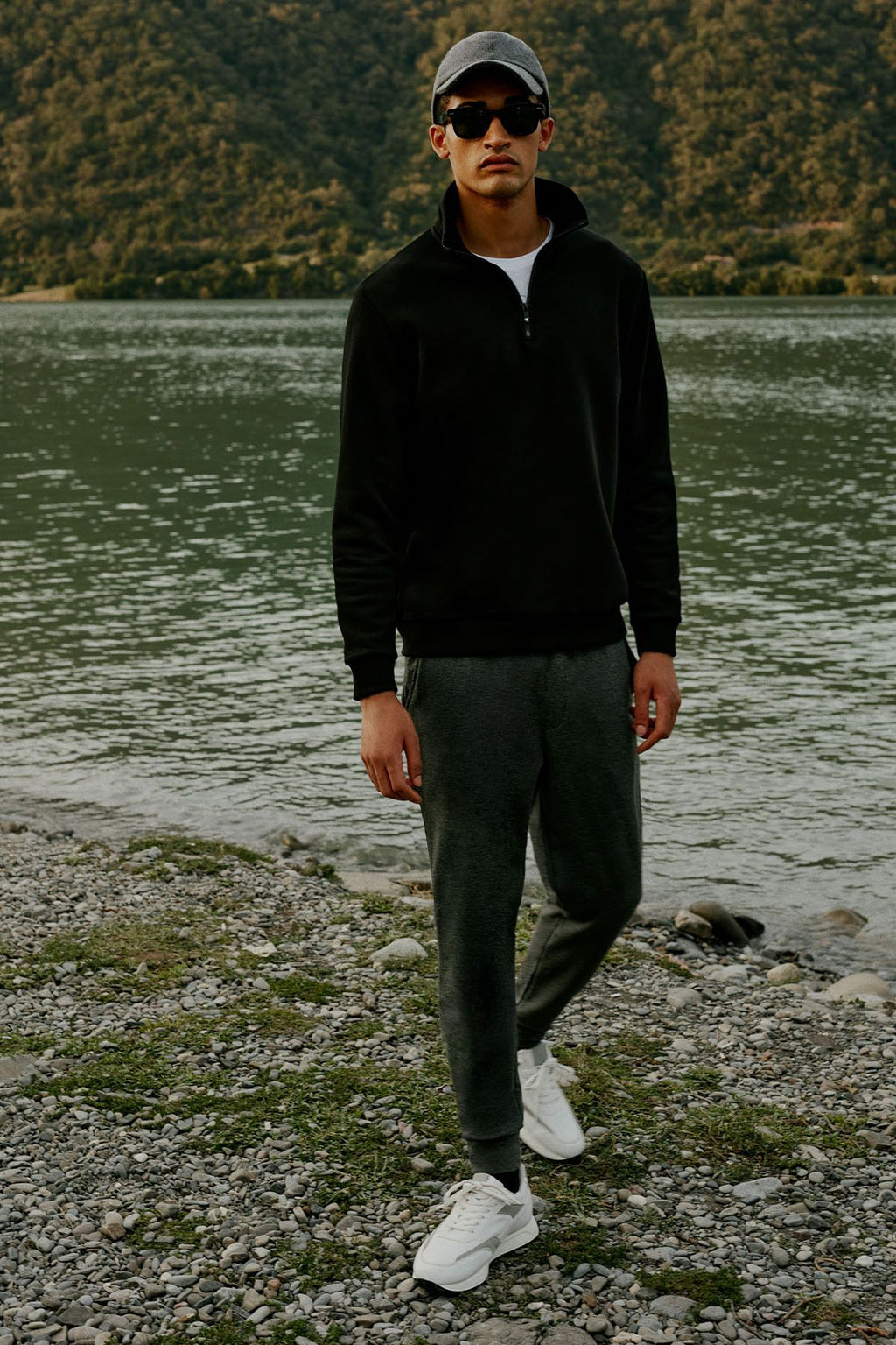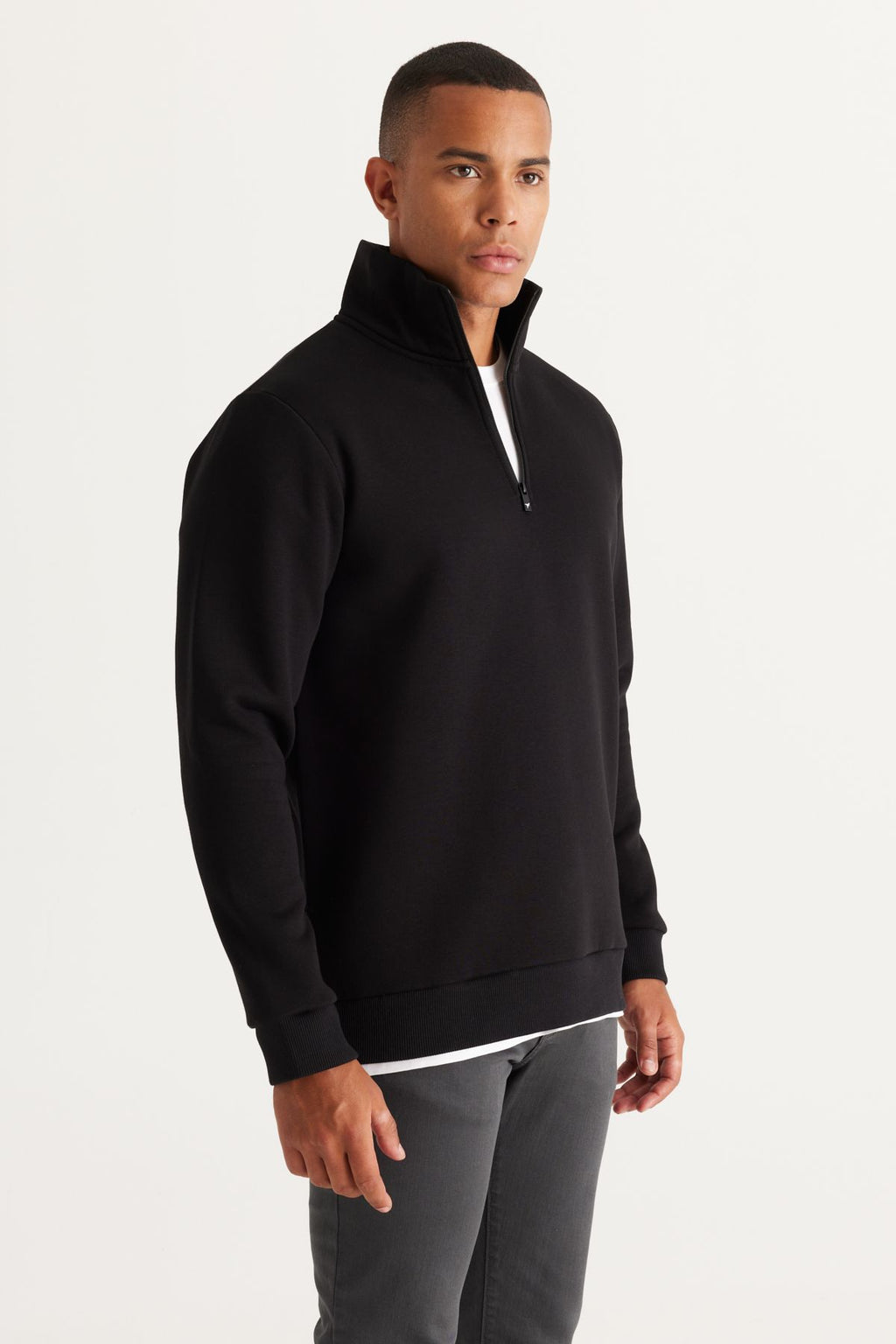 Men's Black Standard Fit Normal Normal Cut Içi Fleeted Bato collar cotton sweatshirt