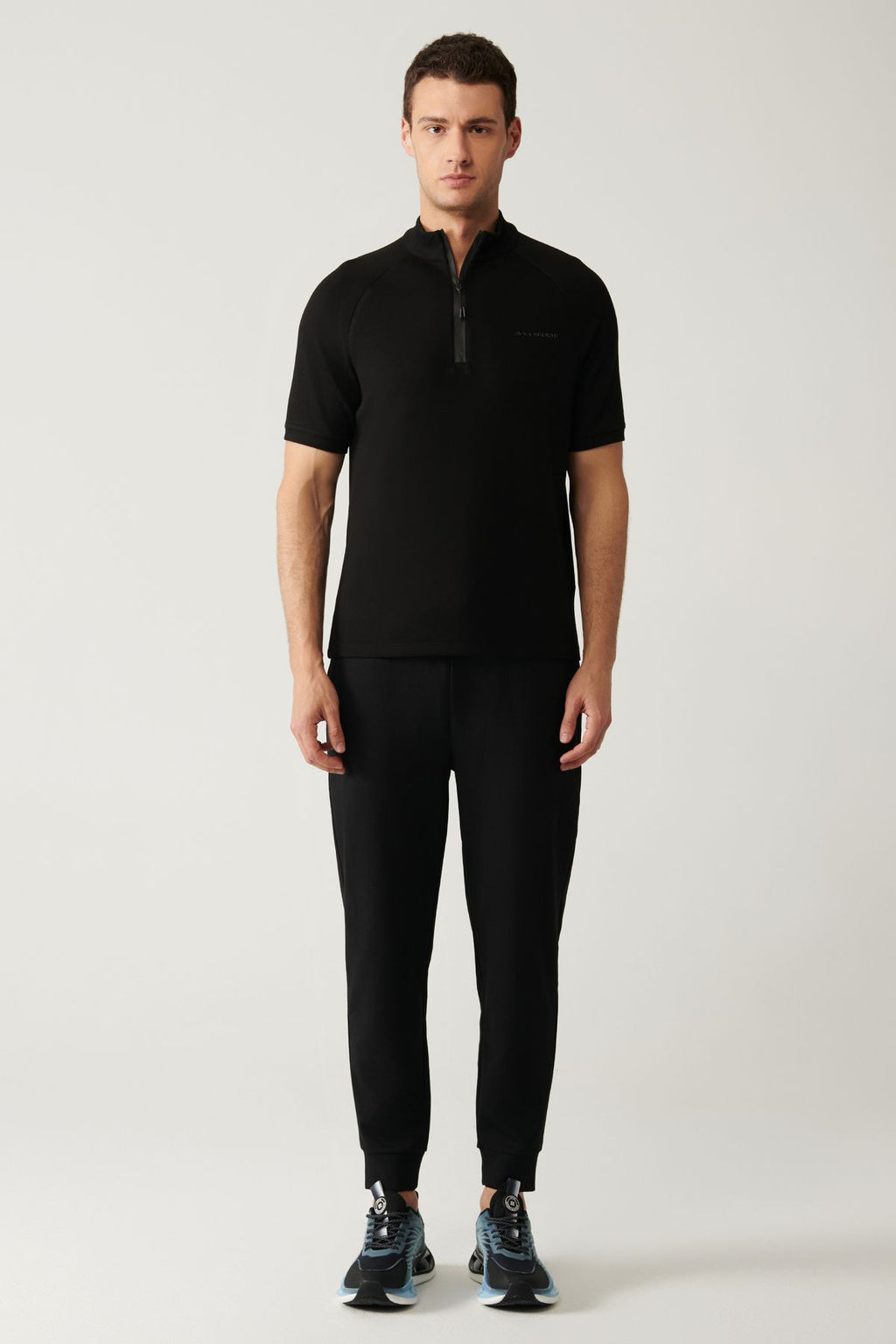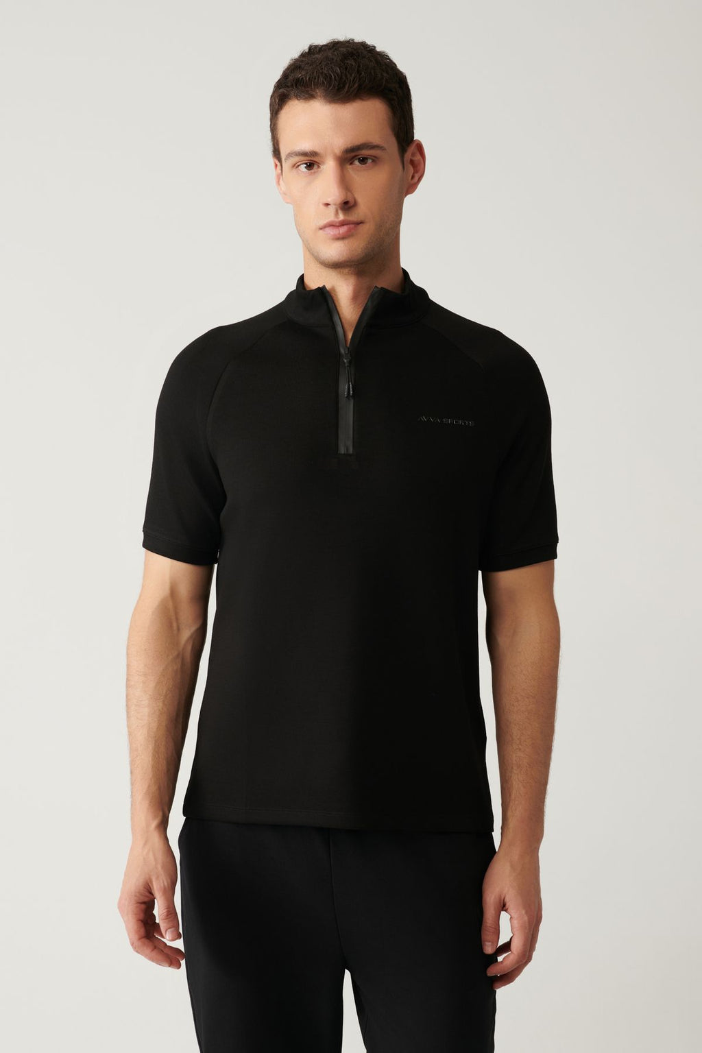 Men's black upright collar half zipper printed T-shirt A41y1312