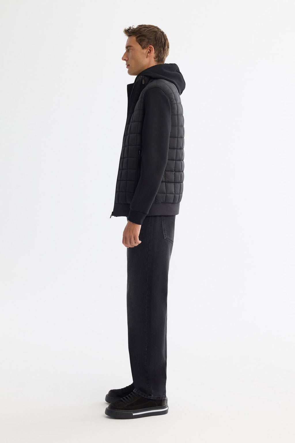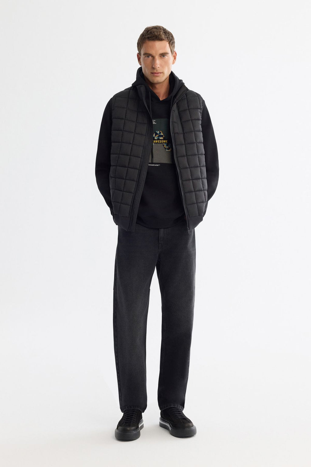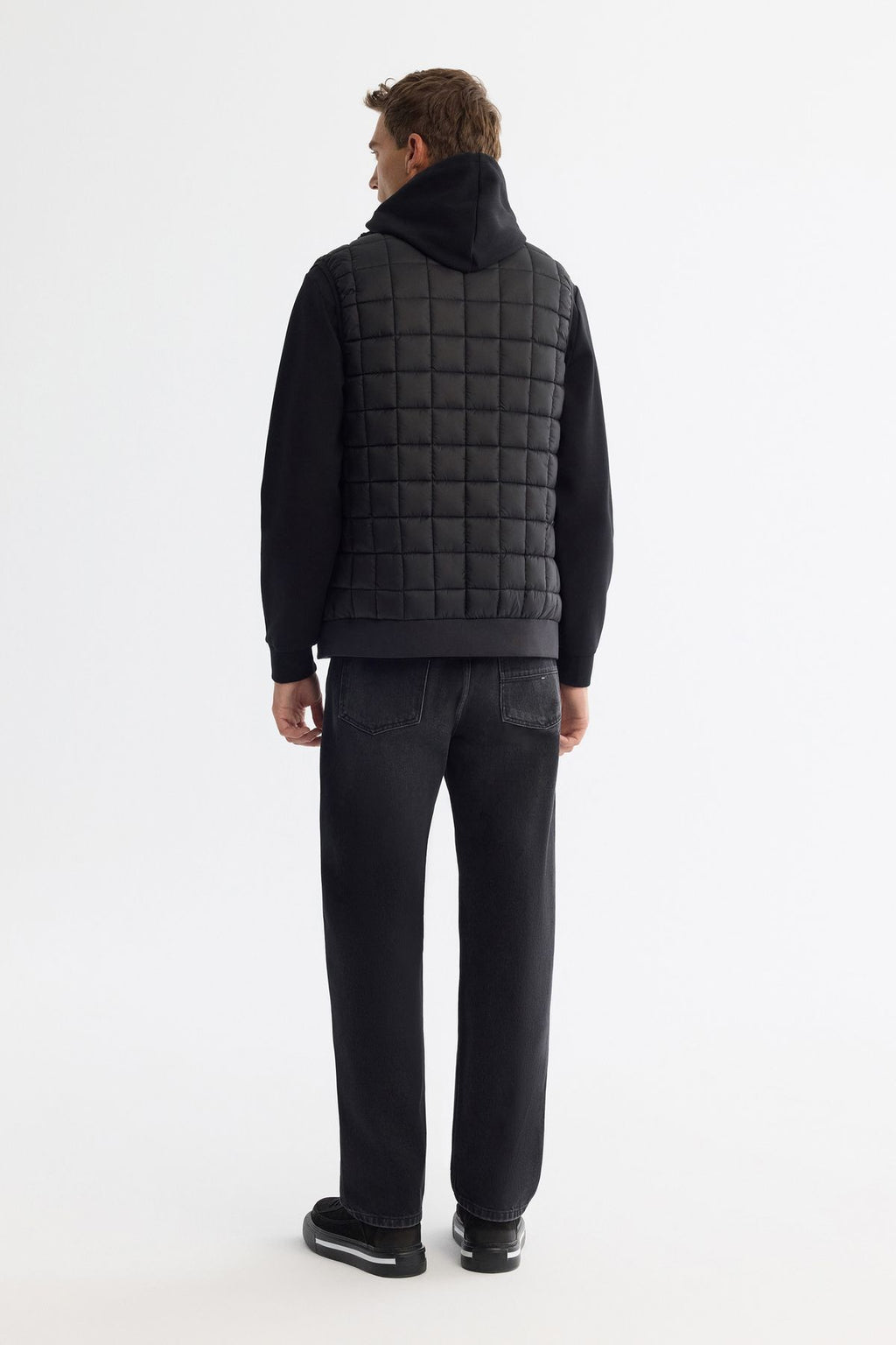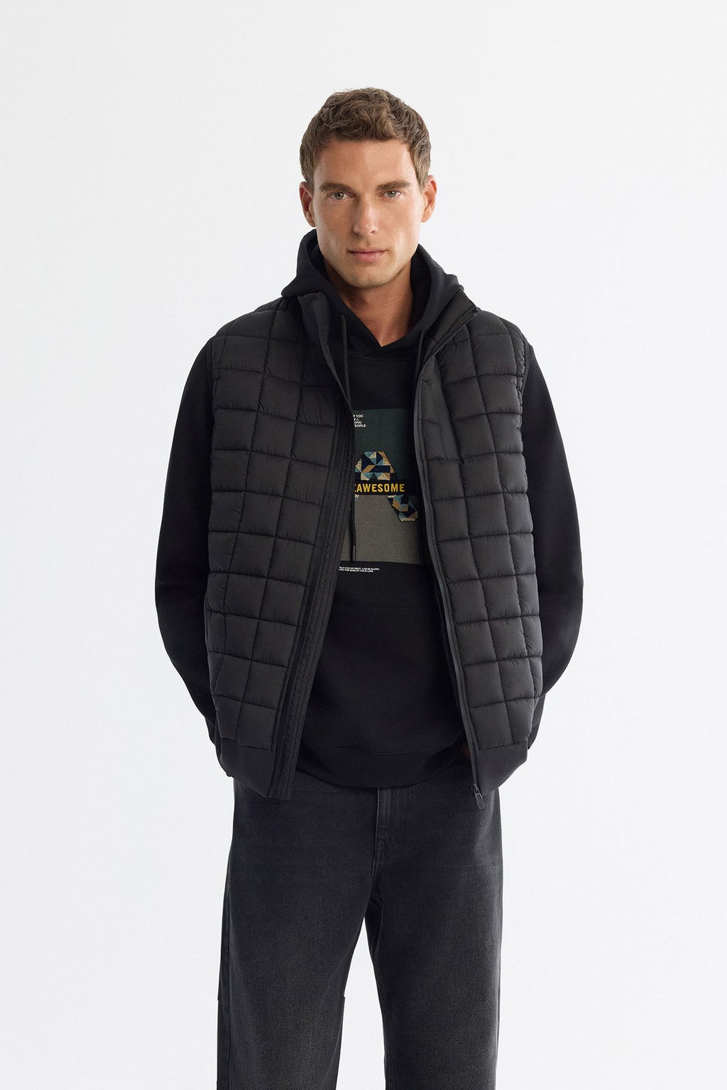Men's black upright collar square quilted thermometer swelling vest a42y6502