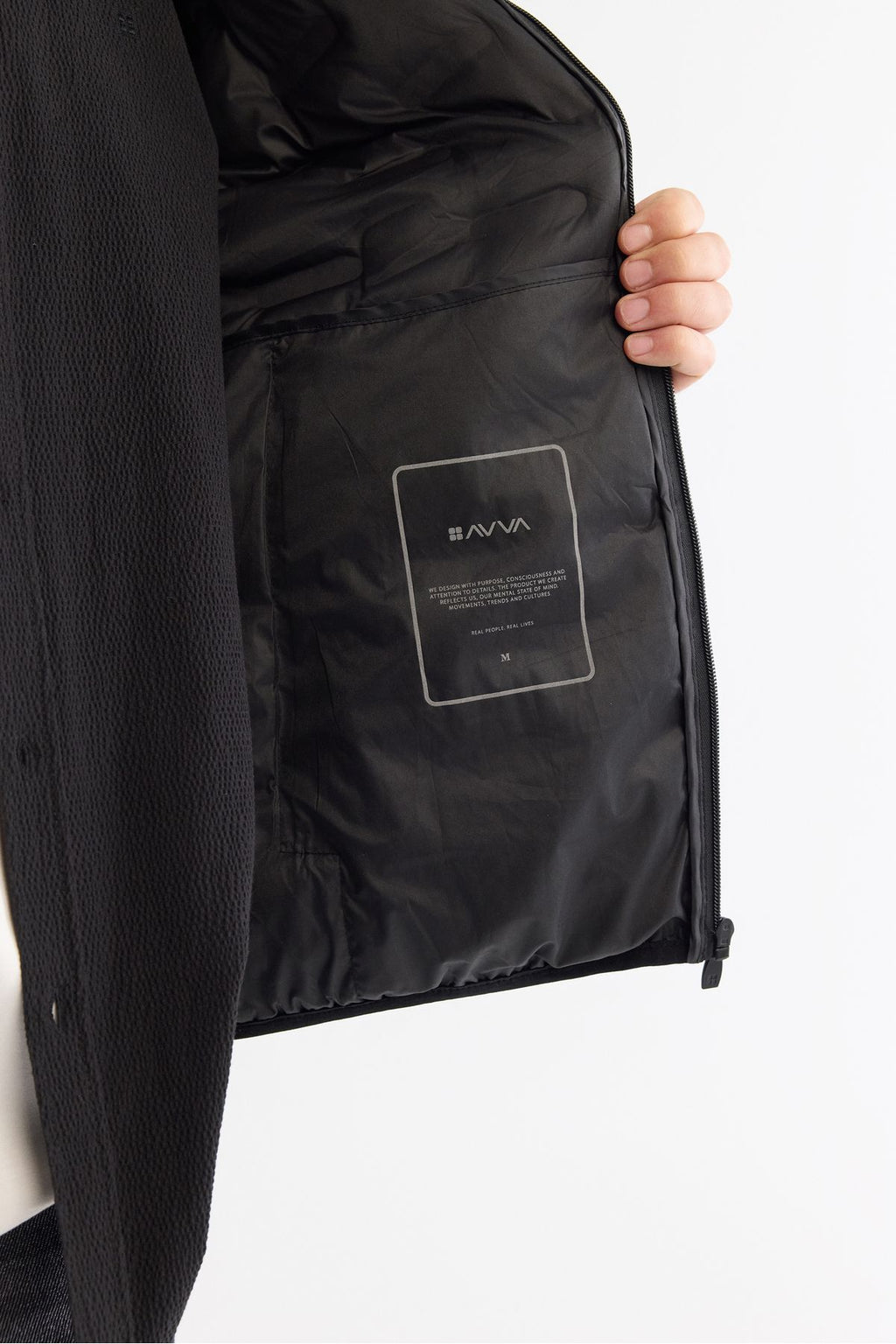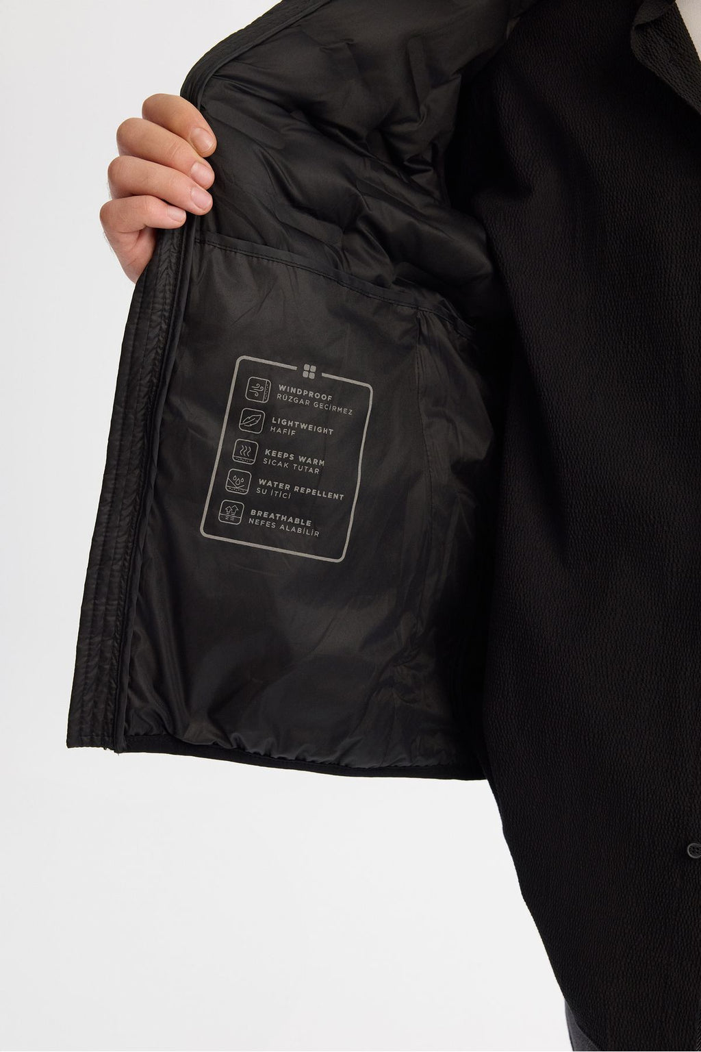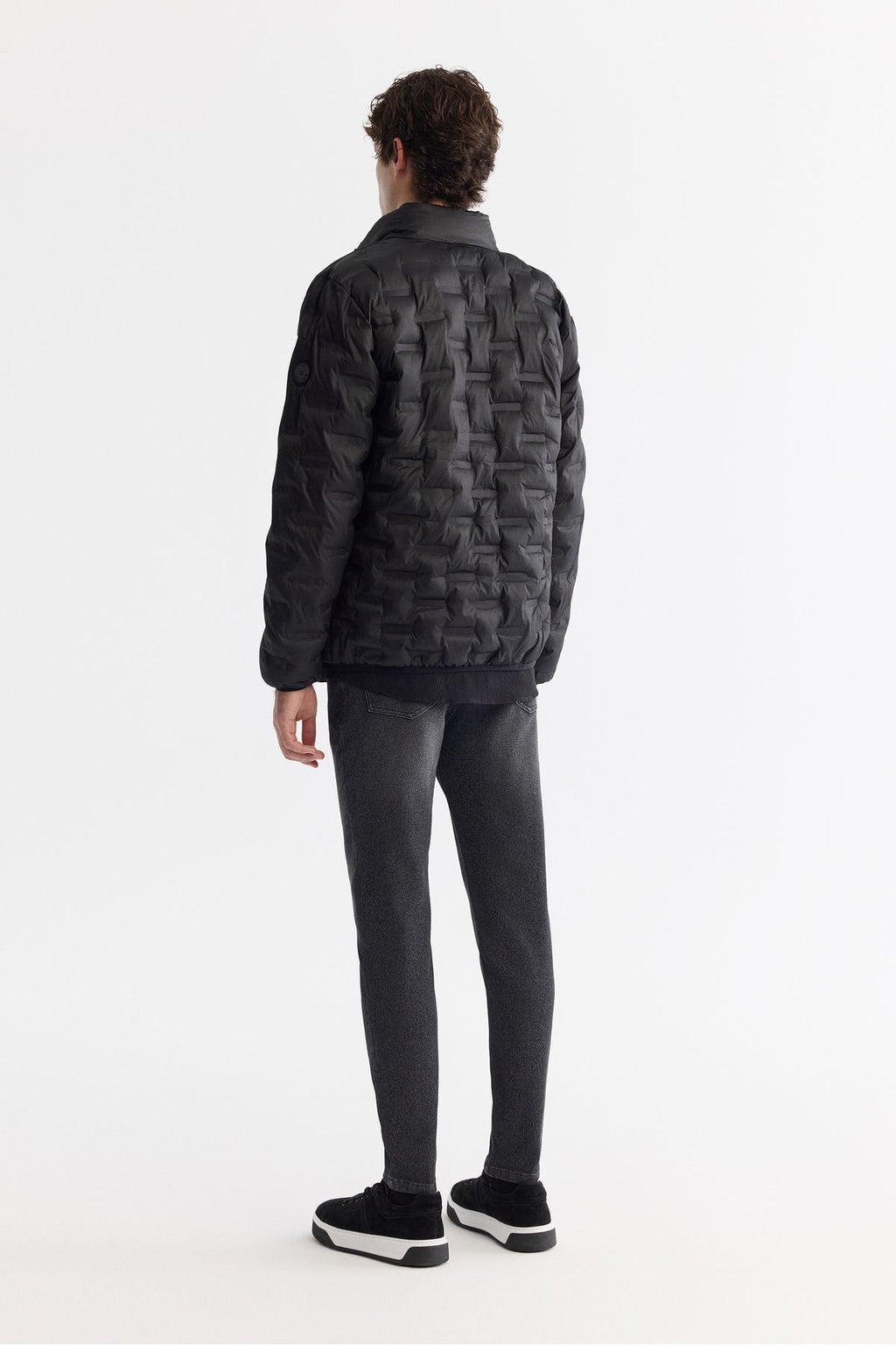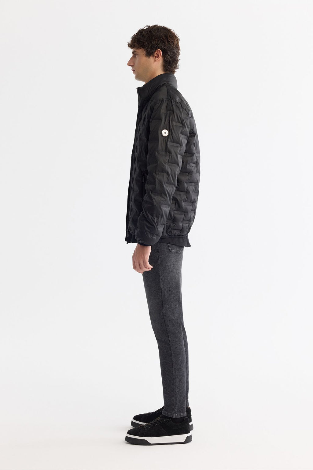 Men's black upright collar water -driven windproof swelling light coat A42y6154