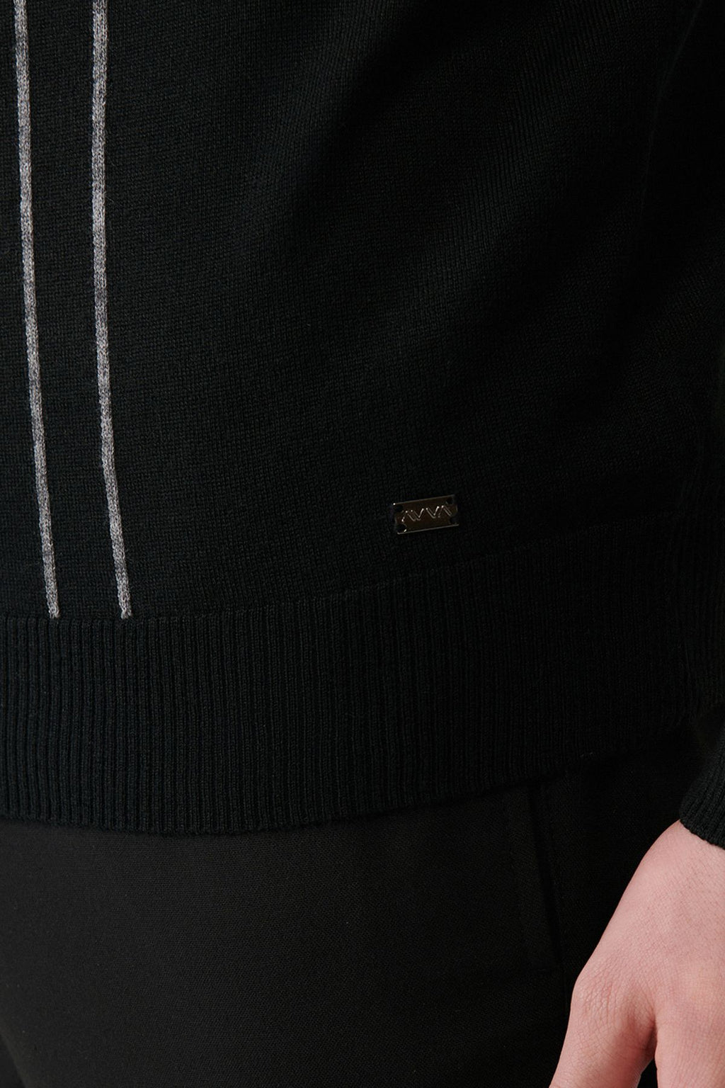Men's black zipper wool mixture striped knitwear sweater A32Y5094