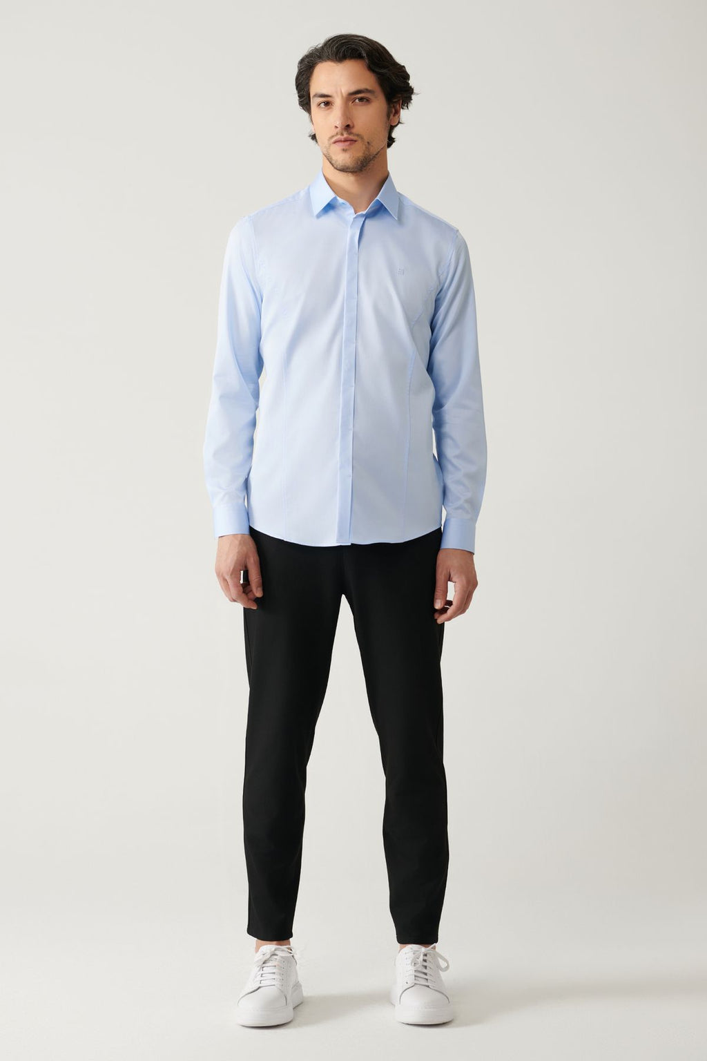 Men's blue 100 %cotton classic collar satin shirt B002002