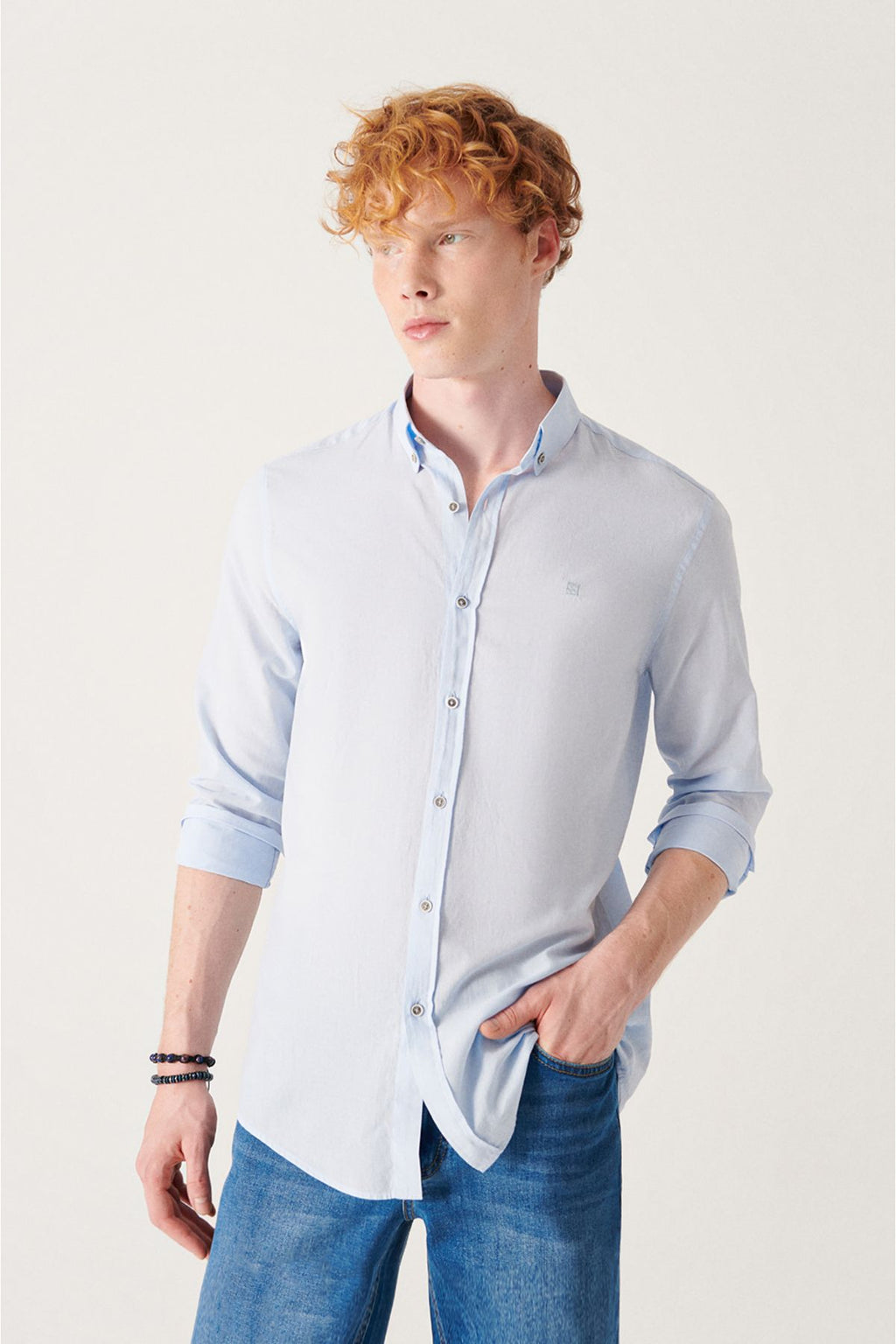 Men's Blue 100 %Cotton Futter Soft key buttoned collar shirt E002206
